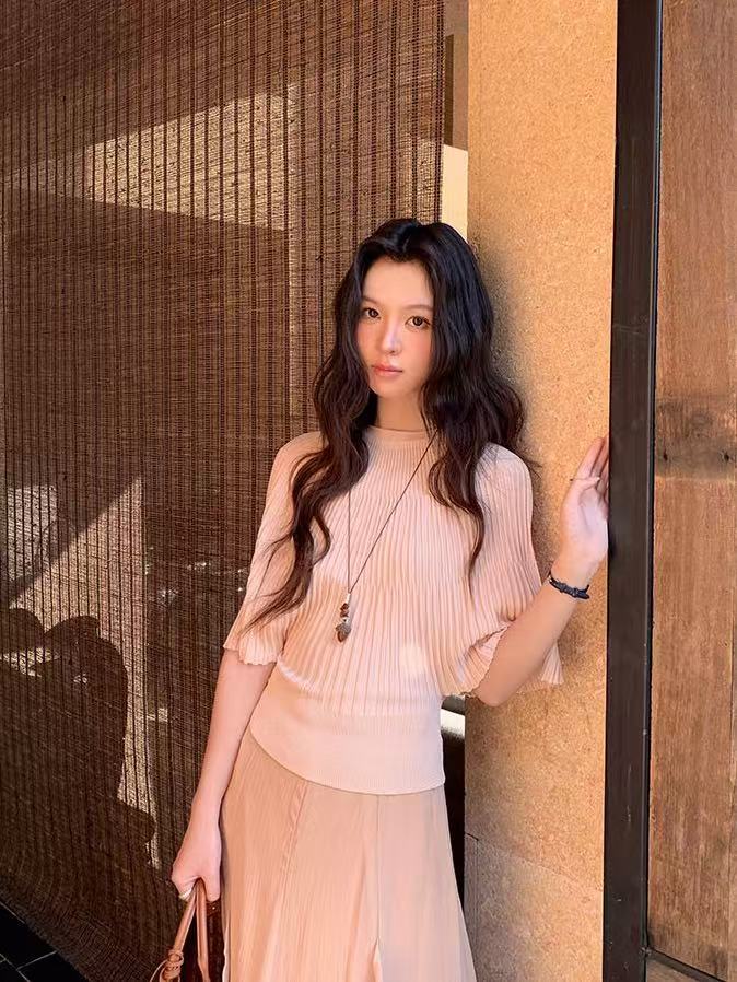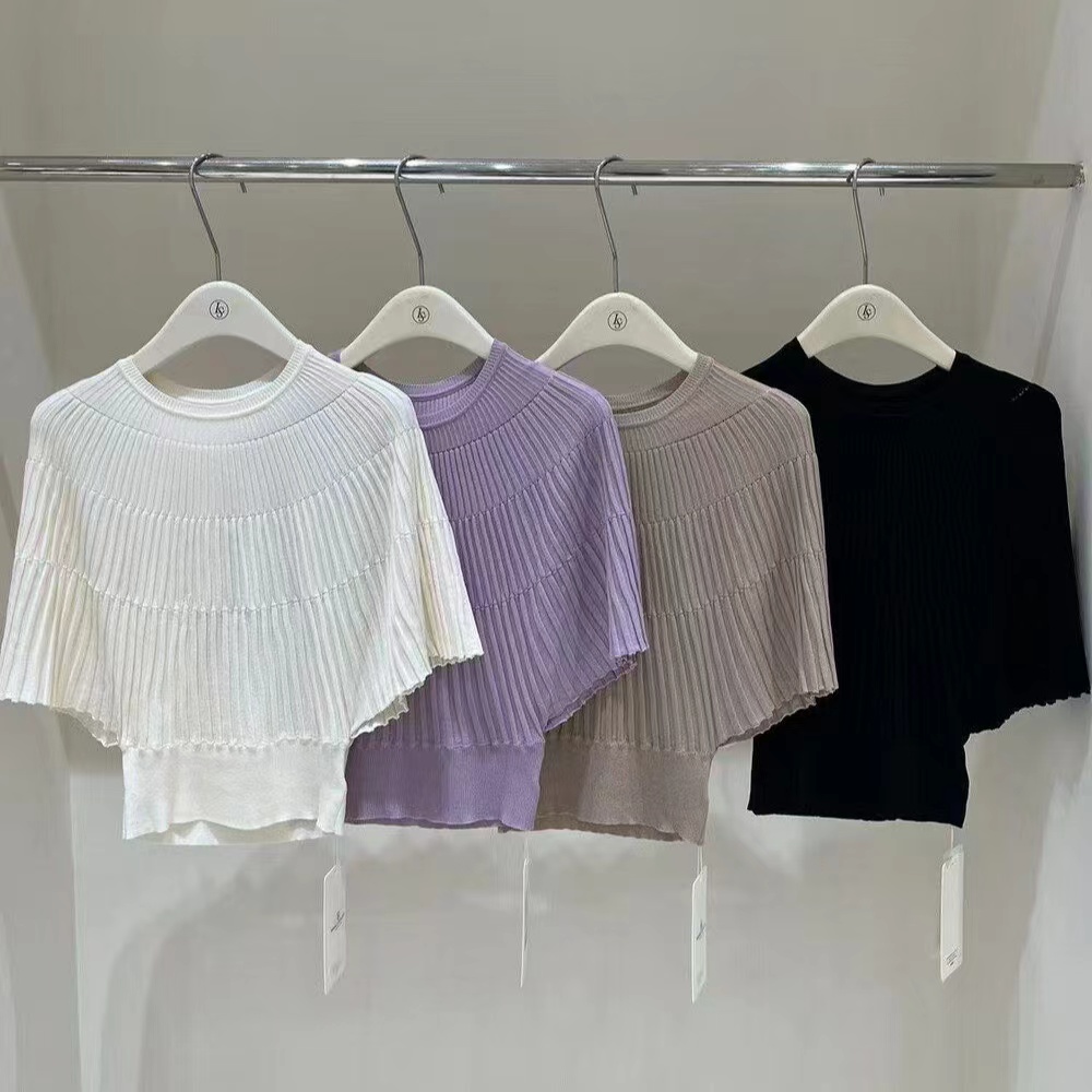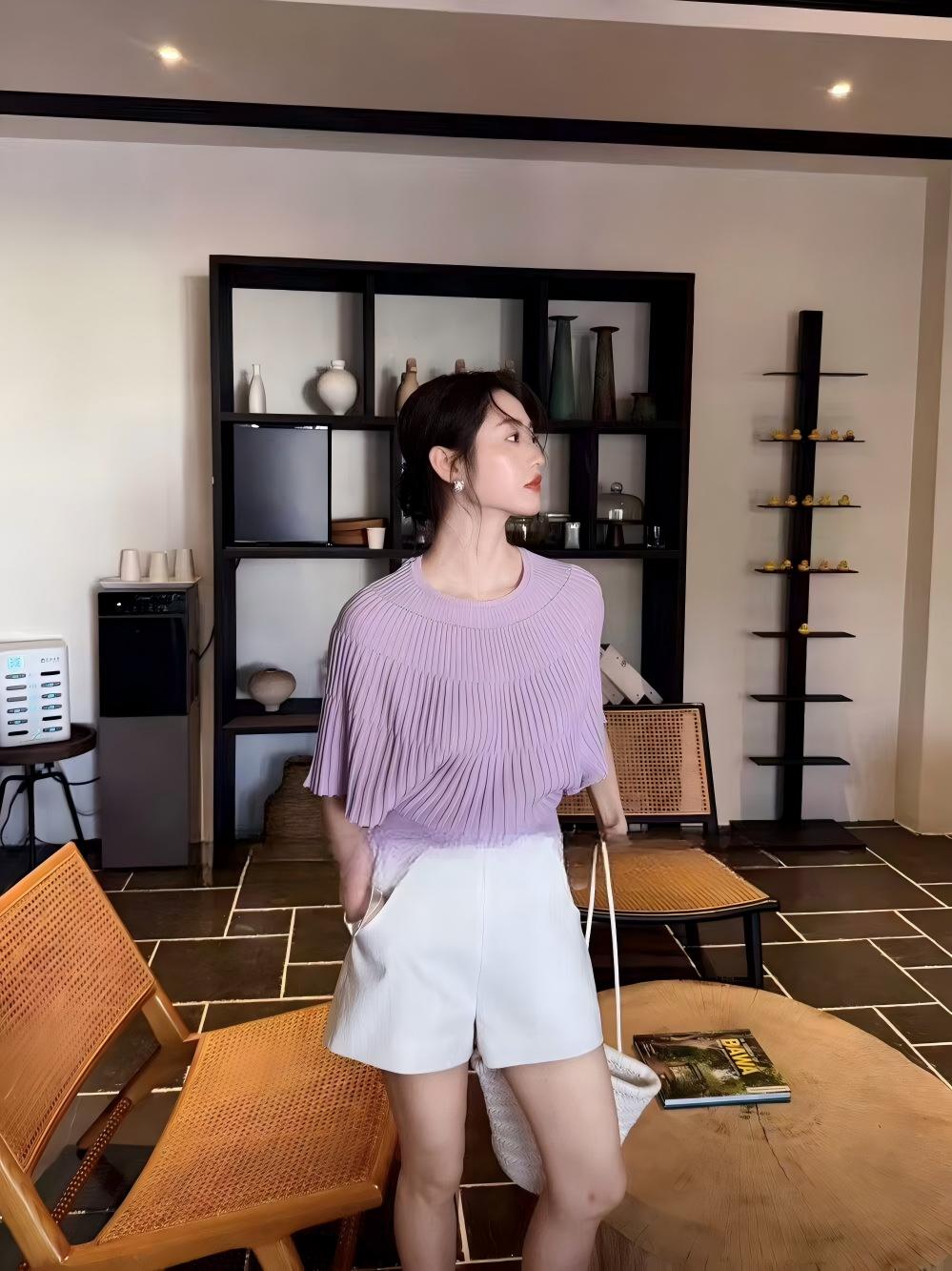 2026 봄 여름 품격 보라색 숄 망토 니트 스웨터 플리츠 슬림해 보이는 배트윙 소매 디자인 센스 작은 대중 맨위
