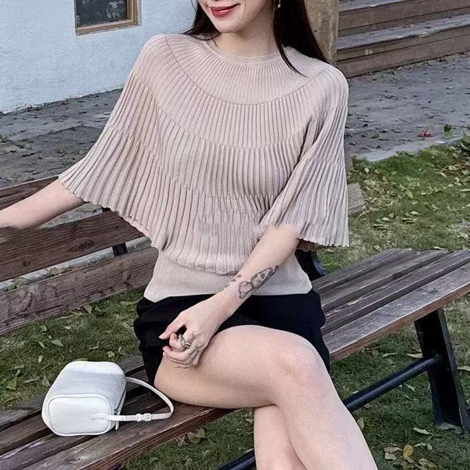 디자인 센스 작은 대중 레트로 니트 스웨터 여성 새로운 여름 반하이넥 반팔 만나는 가을 몸매 가꾸기 쇼트 스타일 맨위 트렌디