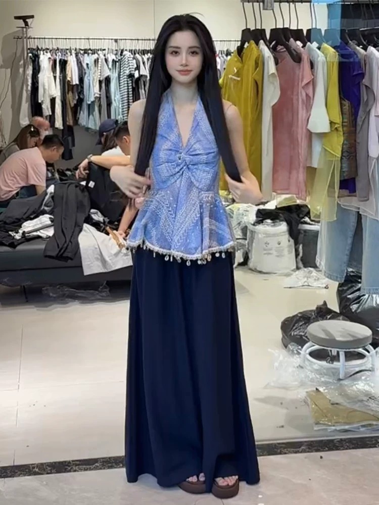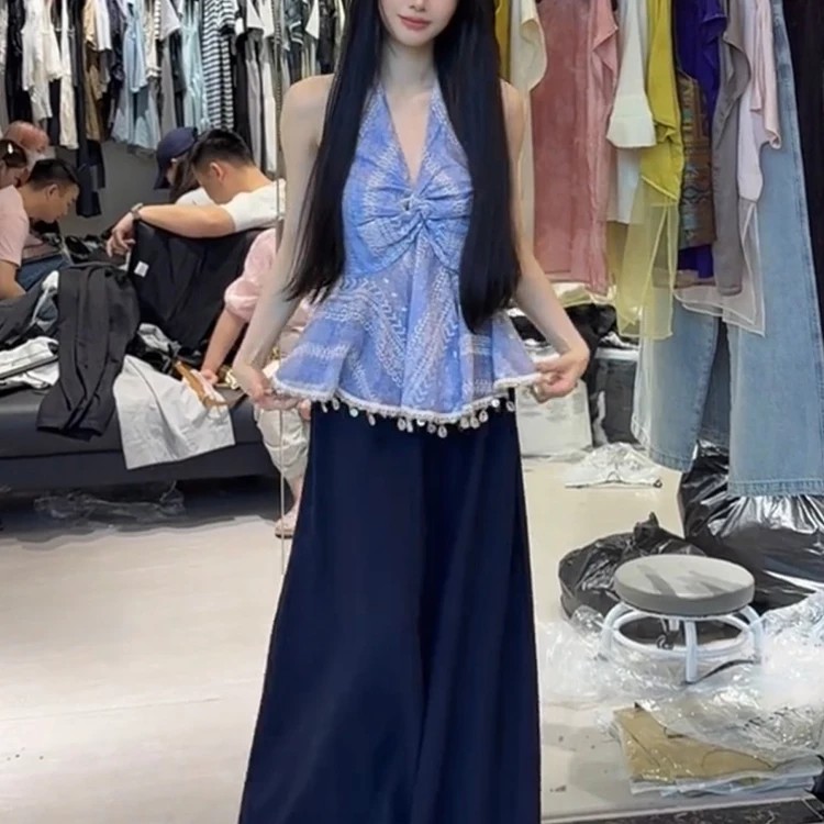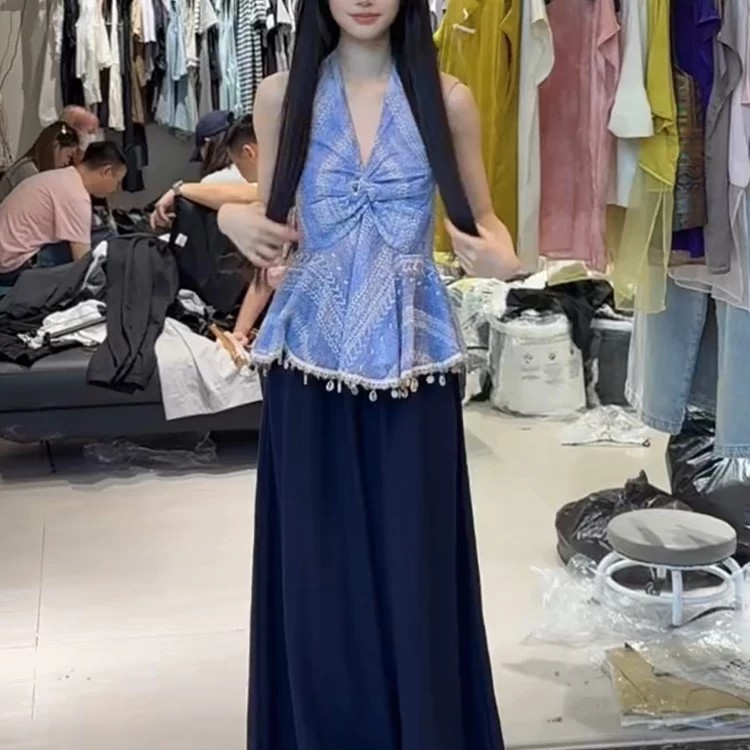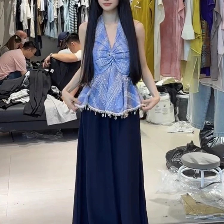 핫걸 V넥 행침 목 비즈 박기 조끼 여성 한 부서 작은 대중 고급 센스 품격 슬림해 보이는 다용도 비틀림 술 맨위