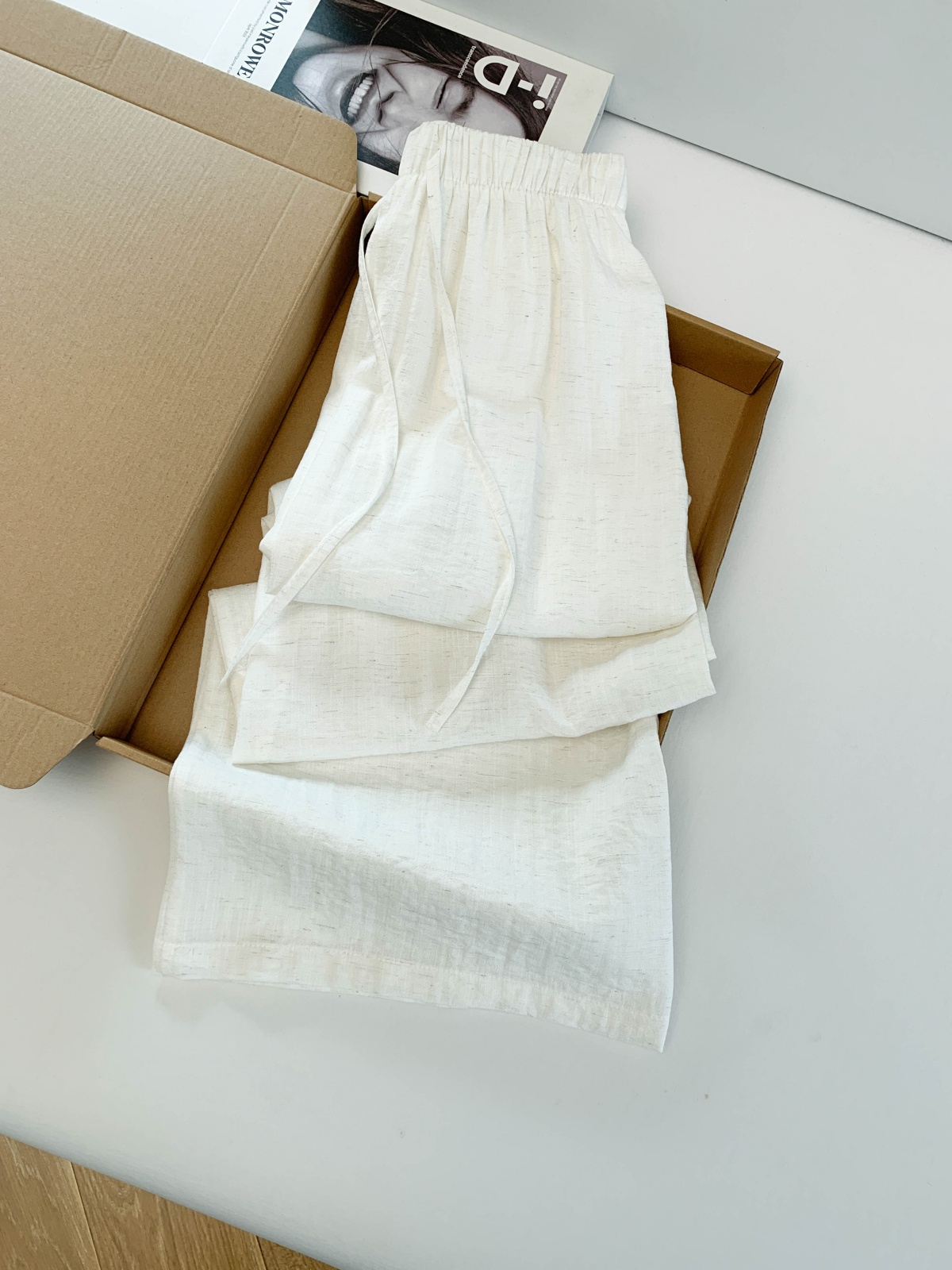 화이트 아마 반바지 여성 여름 2026 새로운 작은 키 루즈핏 슬림해 보이는 허리밴드 한 마디 캐주얼 와이드 레그 팬츠