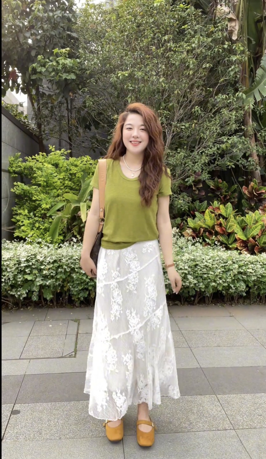 남쪽 萱 디스플레이 화이트 t 플러스 유화 치마 여름 새로운 고급 예술 센스 유화 헤일로 염색 반신 스커트