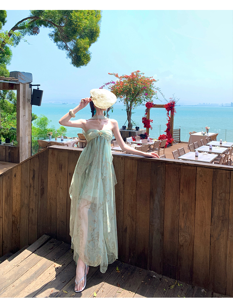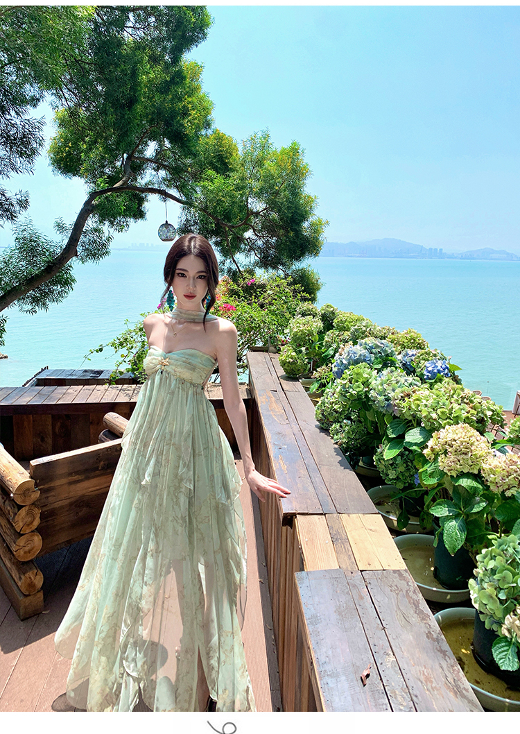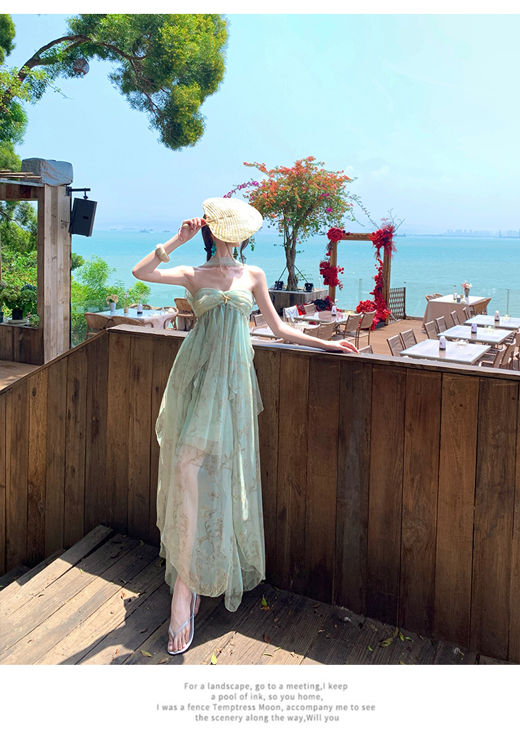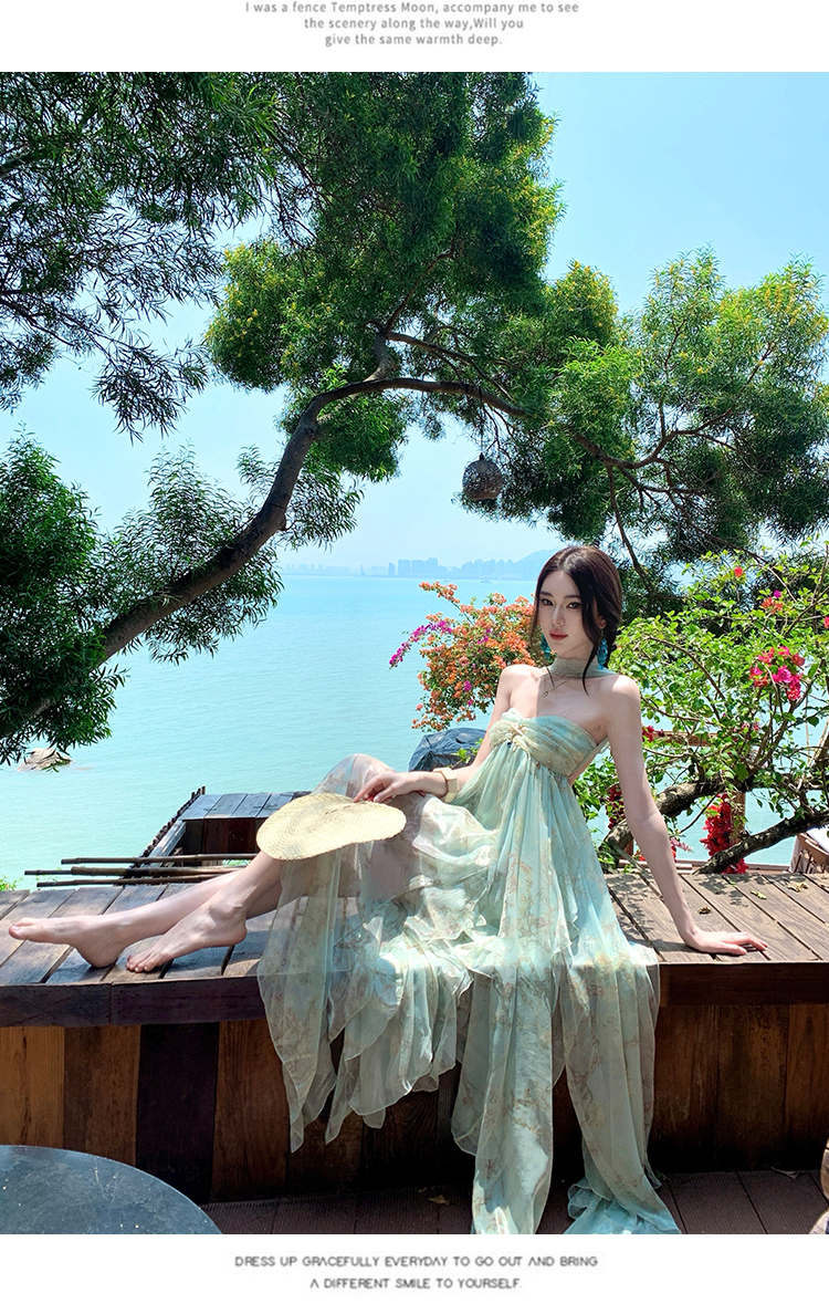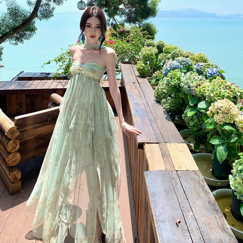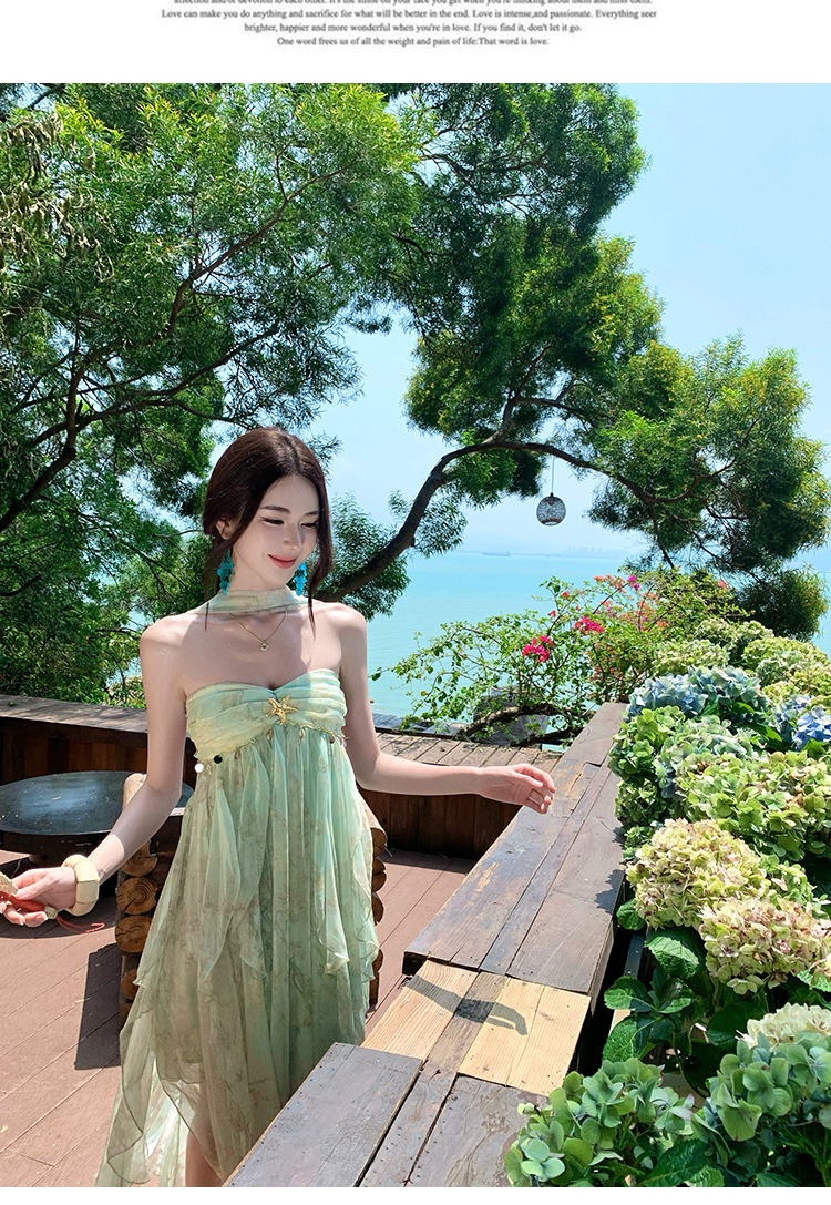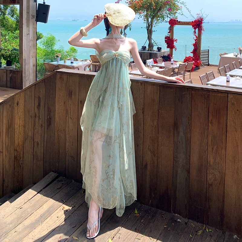 여신 치마 여름 슈퍼 잘 생긴 ~ 중 휴가 바람 프릴 튜브탑 여성 드레스 명문 여성 바람 고급 센스 예복 치마