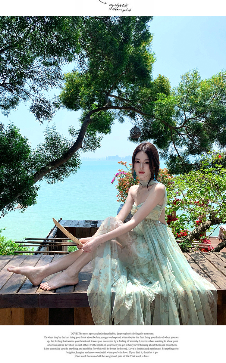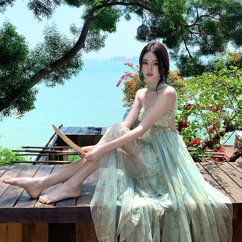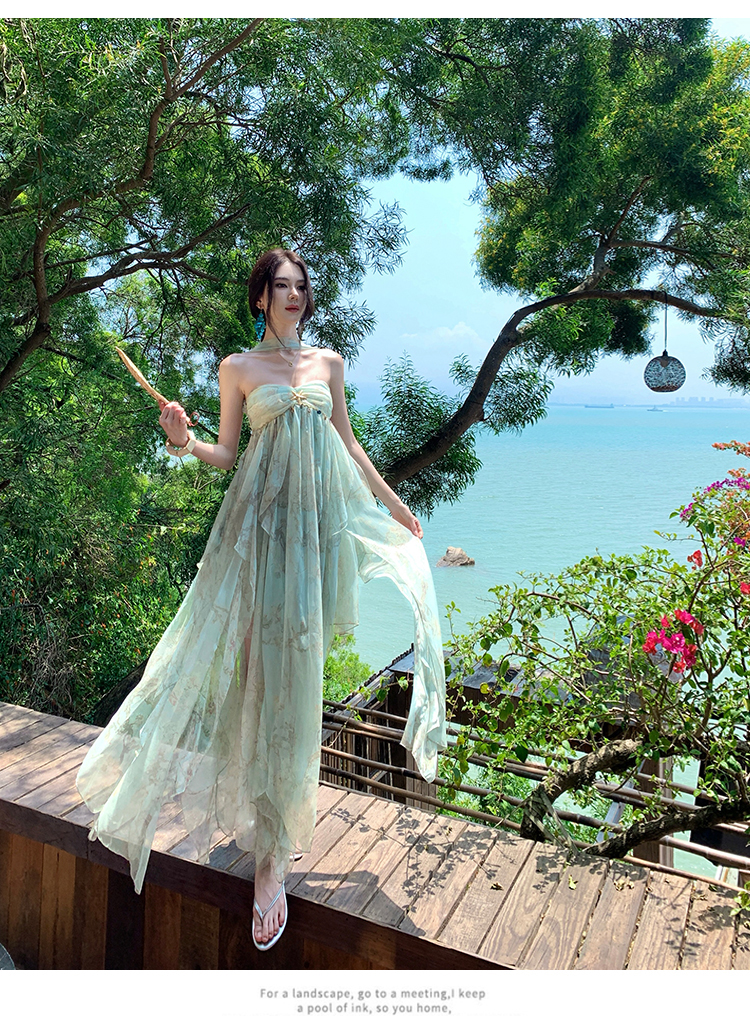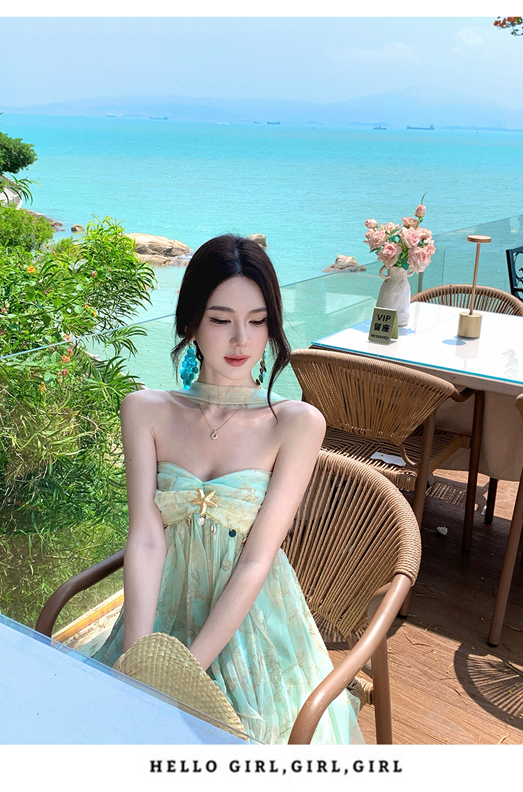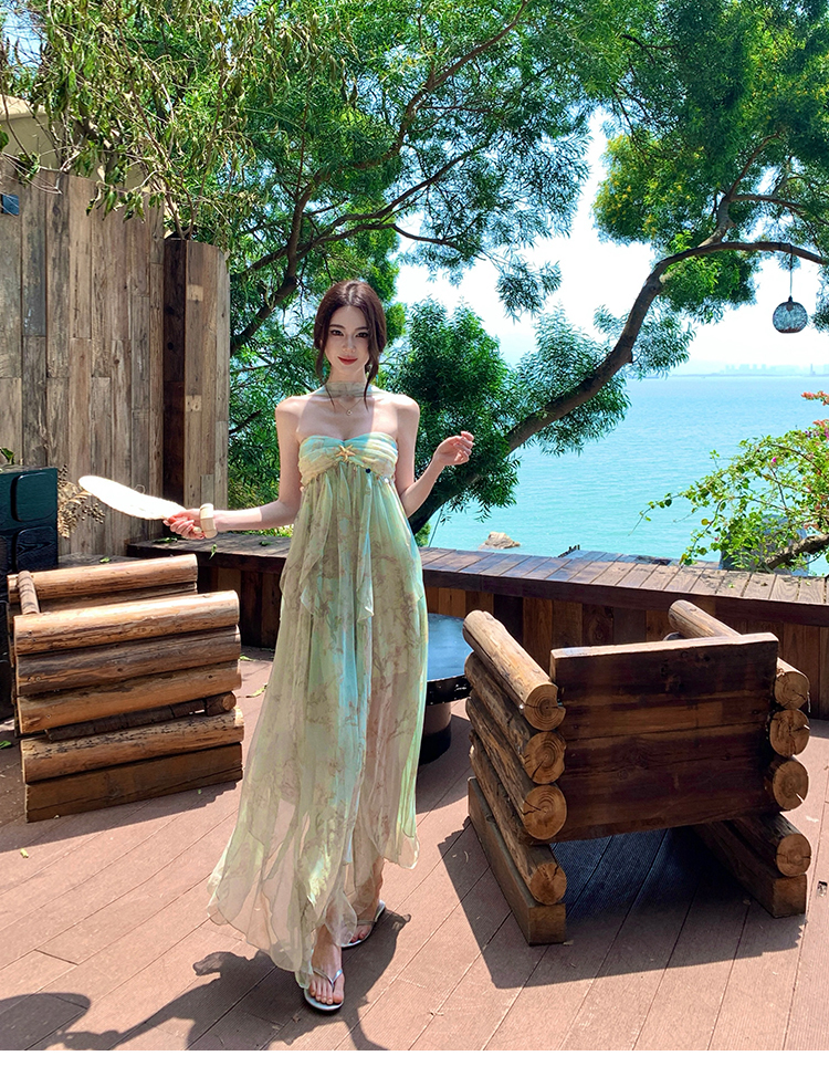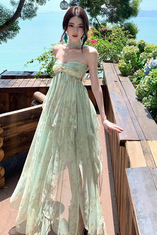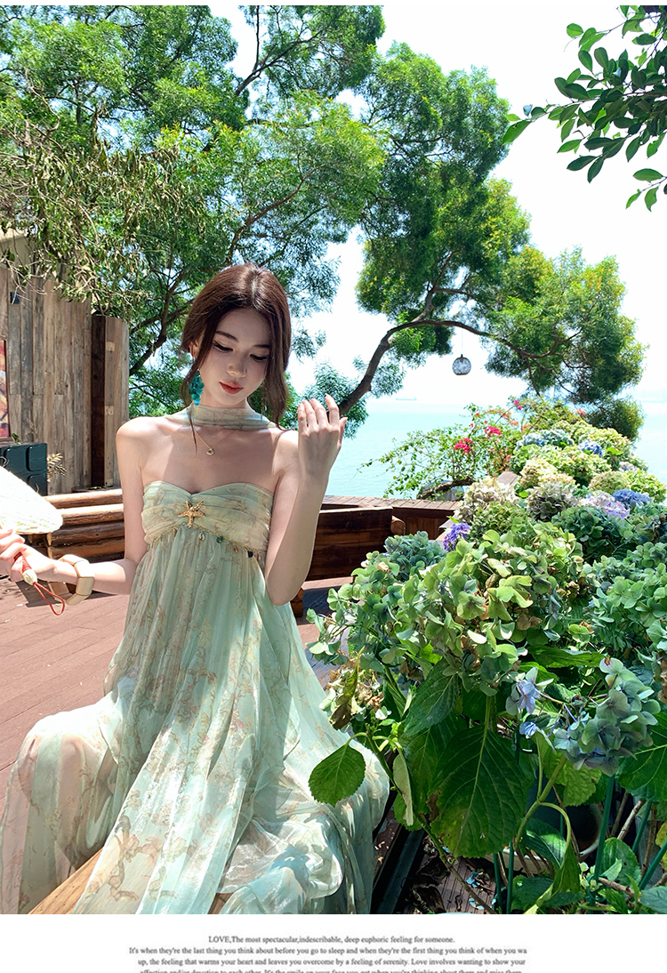 여신 치마 여름 슈퍼 잘 생긴 ~ 중 휴가 바람 프릴 튜브탑 여성 드레스 명문 여성 바람 고급 센스 예복 치마