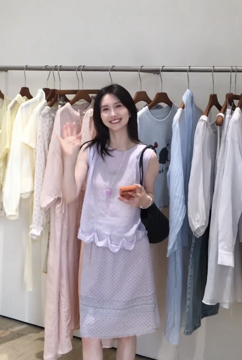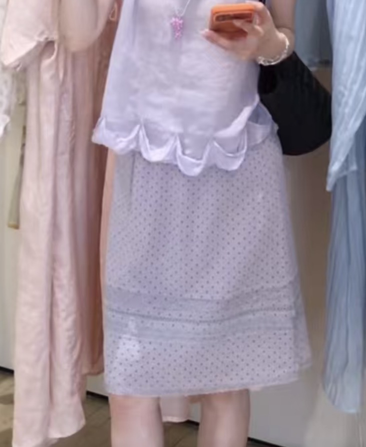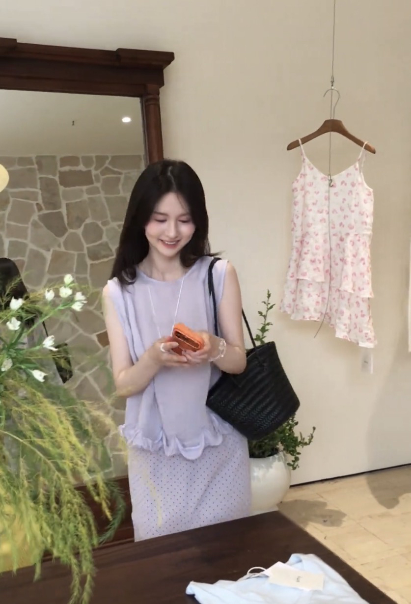 A 꿈 그래. 한 여성 민소매 분위기 센스 꽃잎 맨위 도트 무늬 중간 스커트 세트