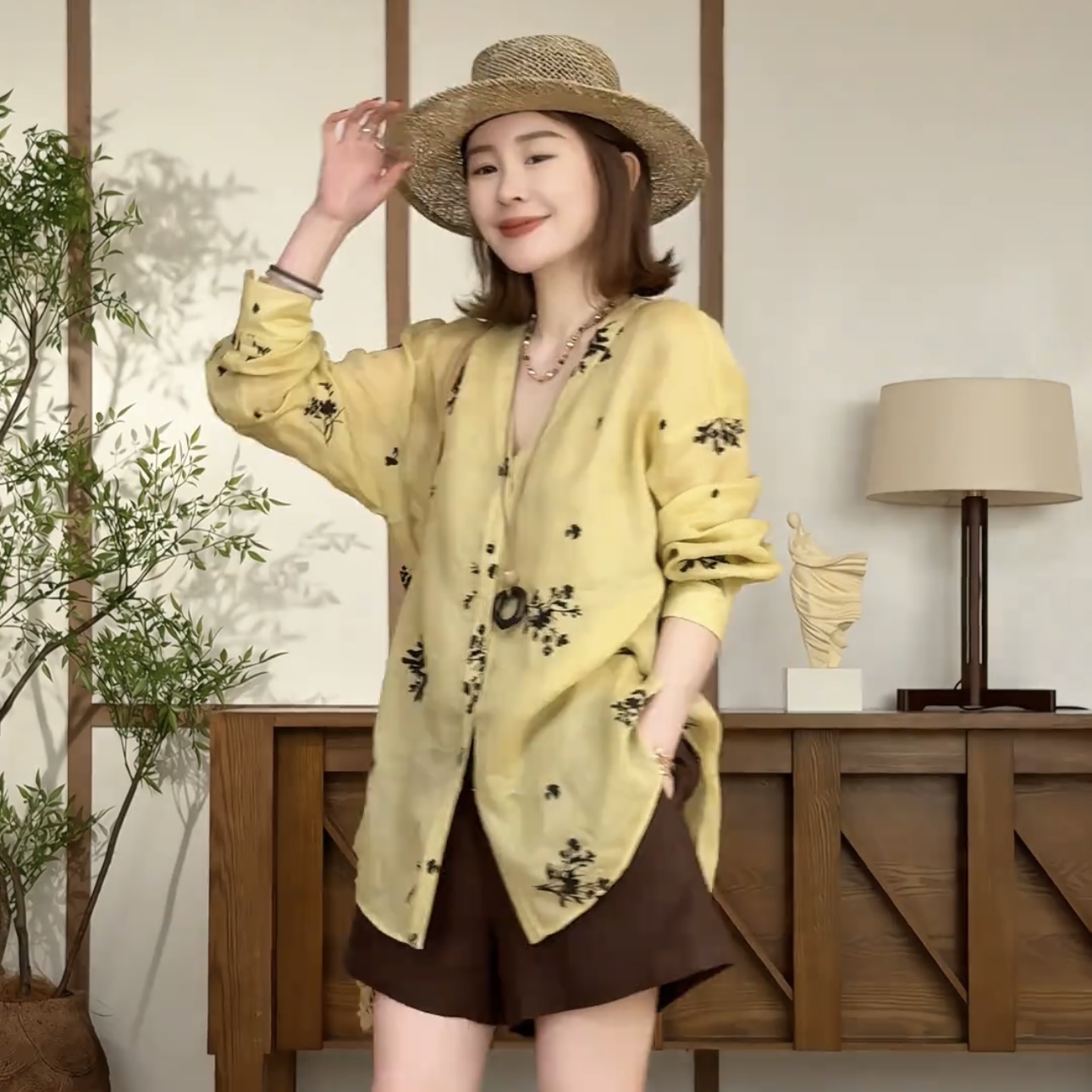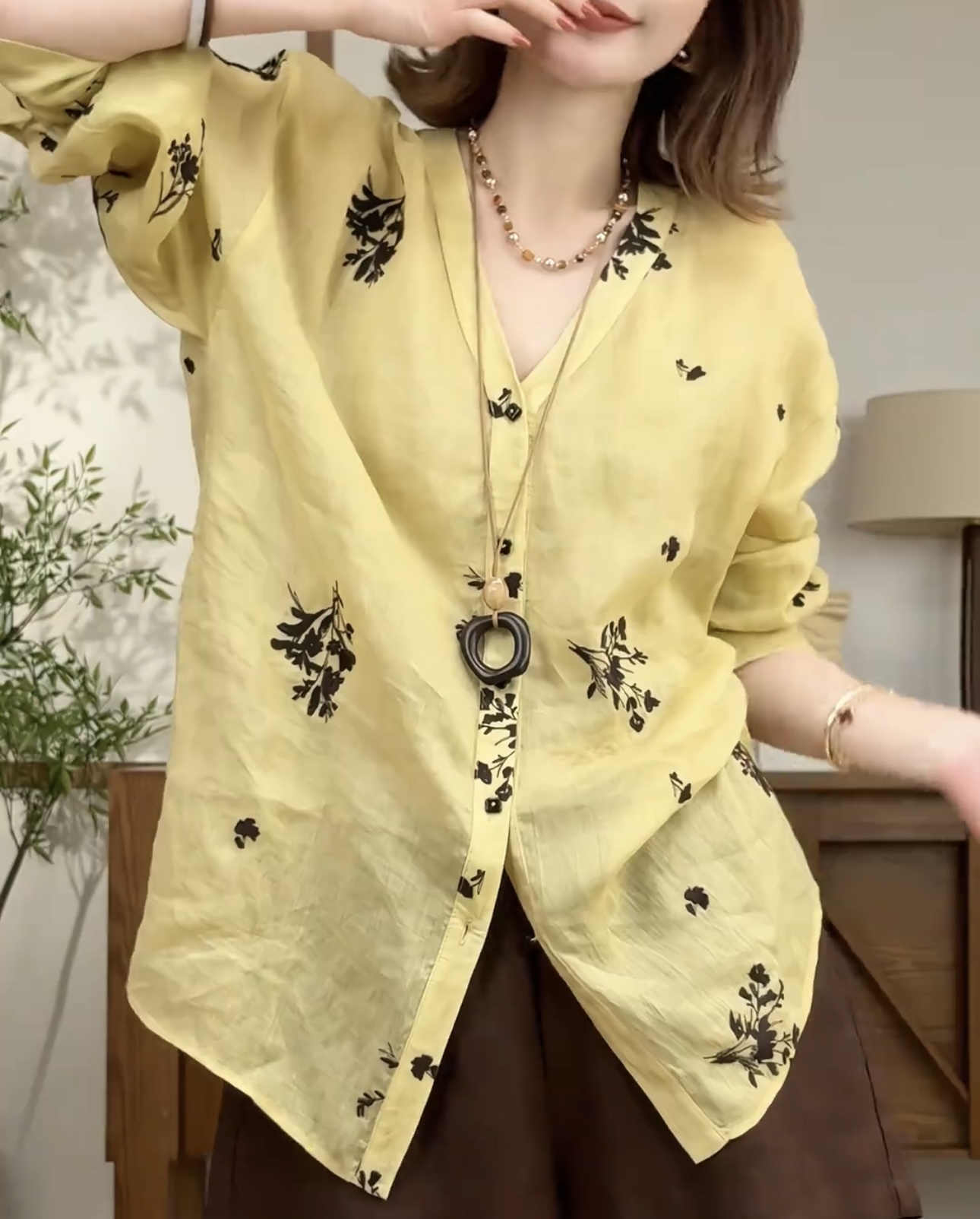 2026 년 봄 여름 새로운 작은 대중 디자인 익스트림 제인 다용도 루즈핏 라미 긴팔 여성 셔츠
