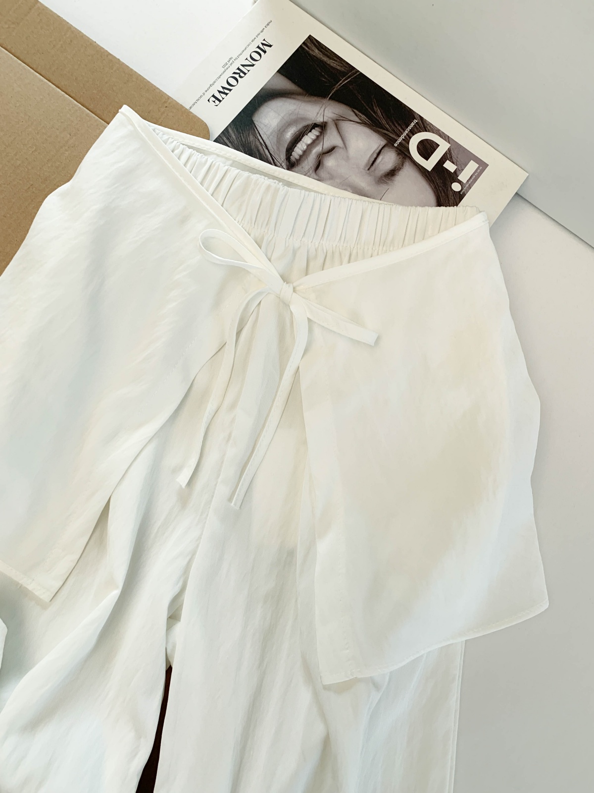 화이트 아마 반바지 여성 여름 2026 새로운 작은 키 루즈핏 슬림해 보이는 허리밴드 한 마디 캐주얼 와이드 레그 팬츠