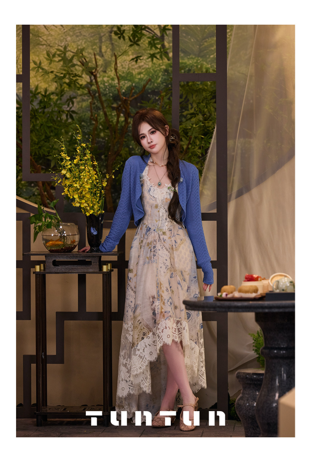 poet wong 바람 올린 사람 : 끝없는 여름 요정 제품 doe n 무거운 작업 다중 레이어 복잡한 레이스 드레스 게으른 치마