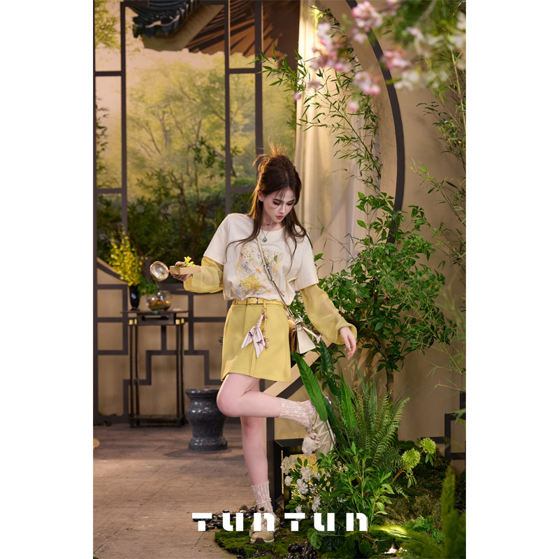 삼키기 tunt 봄 여름 游园 작은 말 절묘한 레트로 하이웨이스트 딱딱한 한 마디 스카프 행침 가을 벨트 미니 스커트