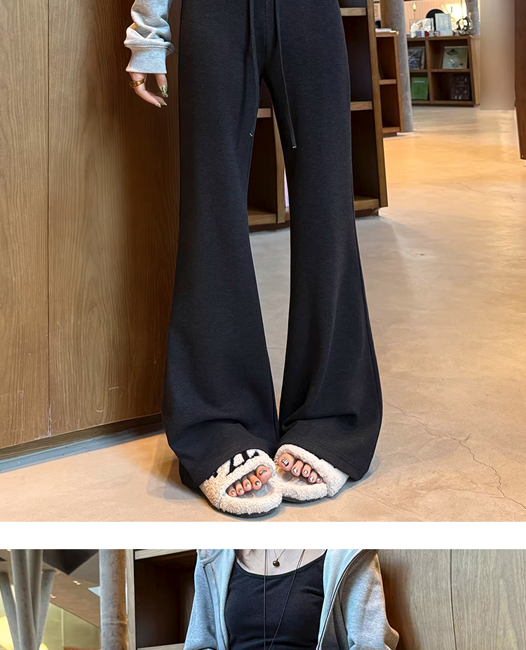두 바지 길다 아메리칸 양모 임산부 부츠컷 바지 봄 도루 센스 신축성 슬림해 보이는 외출용 나팔 바지 와이드 레그 팬츠