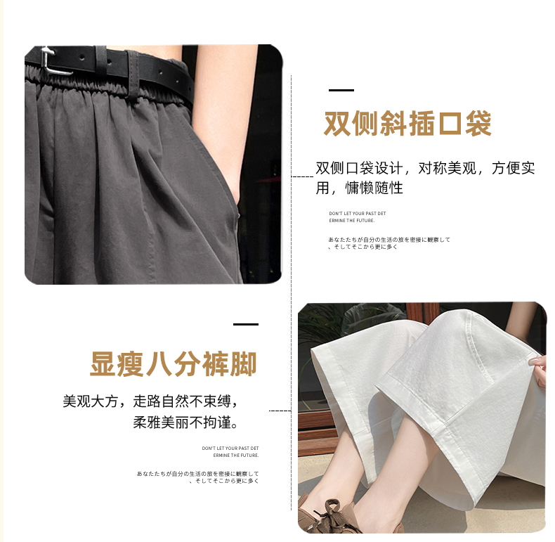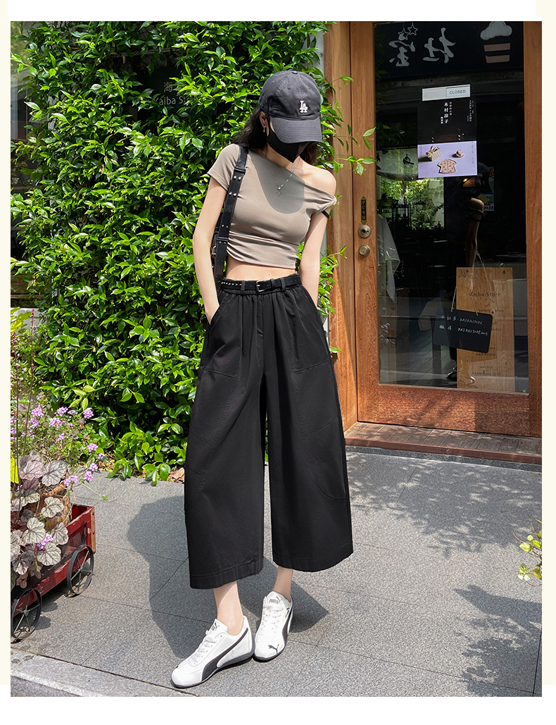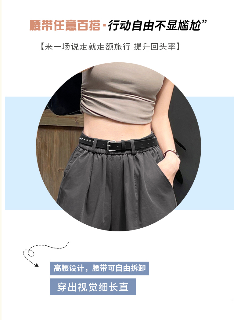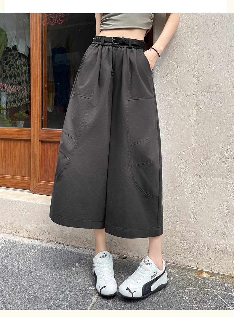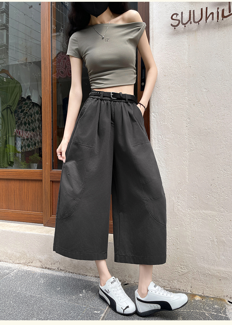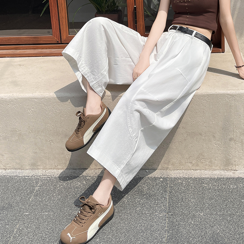 2026 여름 워시 물 면 캐주얼 바지 루즈핏 슬림해 보이는 8 점 바지 패션 다용도 여성 모통이 칼 바지 벨트 포함