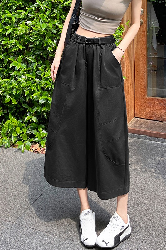 얇고 가벼운 호흡 센스 큰 진자 금액 펌프 로프 핀치 Pleat 넓은 다리 치마바지 캐주얼 바지