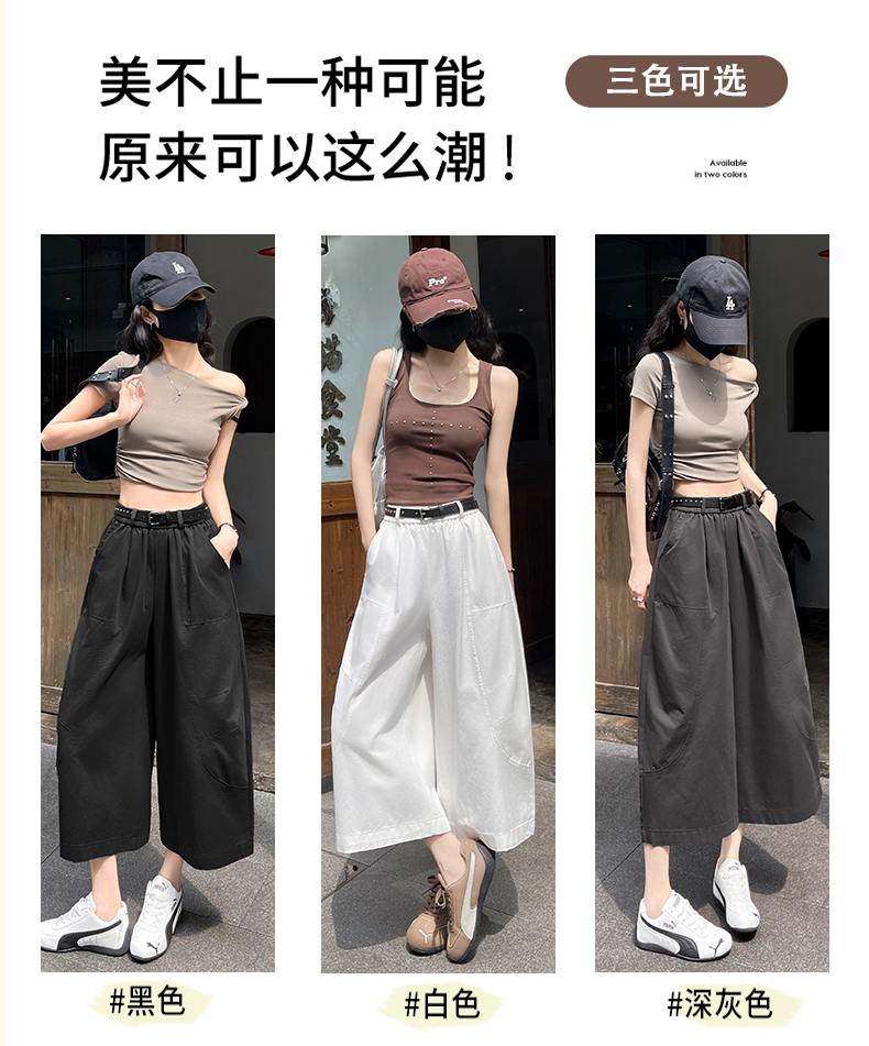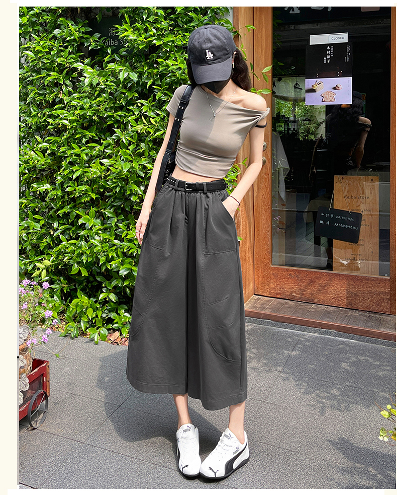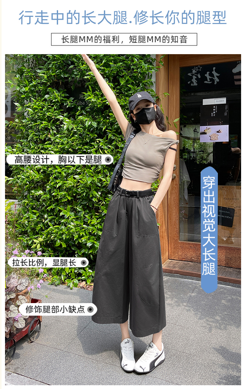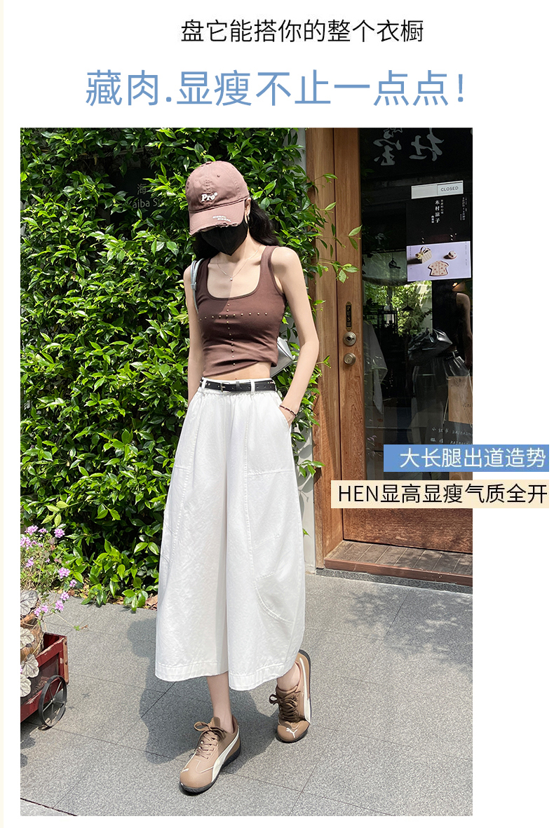 실사 여름 새로운 세븐 8 점 와이드 레깅스 바지 여름 작은 키 슬림해 보이는 다용도 도루 센스 루즈핏 스트레이트 팬츠