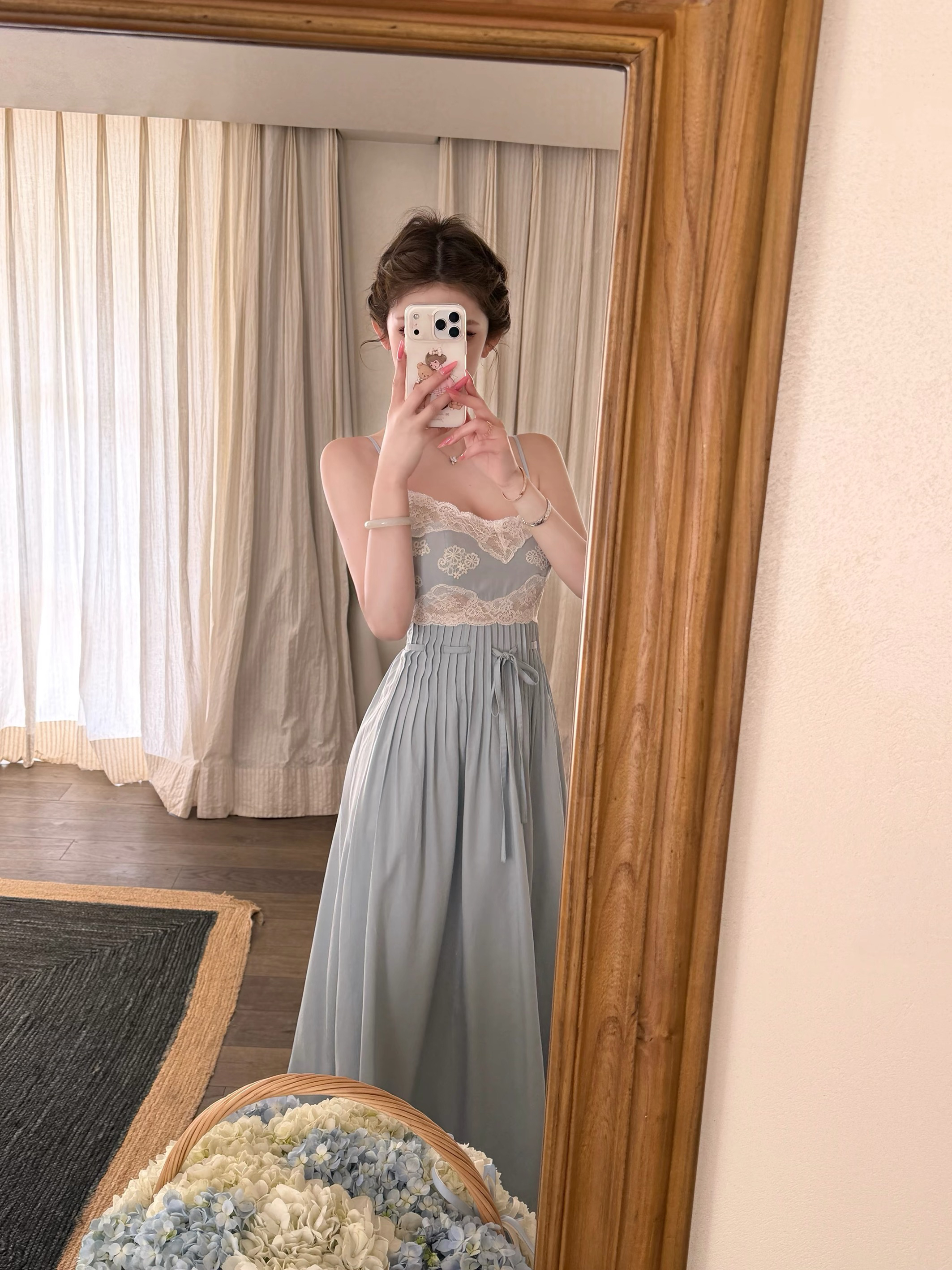 04 28 jmshopfoloria 매너 레이스 조각 슬립 여성 드레스 허리 수축 슬림해 보이는 롱 스커트
