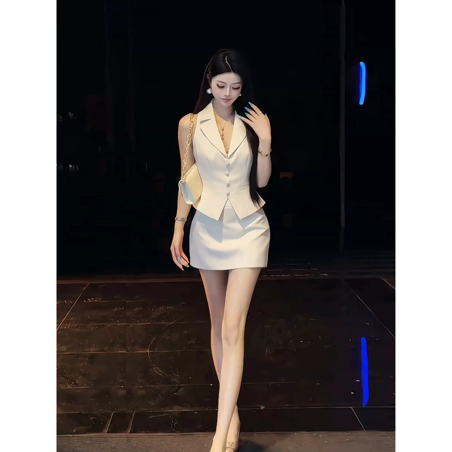 패션 품격 출퇴근 바람 허리 수축 슬림해 보이는 베스트 재킷 하이웨이스트 쇼트 스타일 타이트 스커트 여성 여름 새로운 투피스 세트