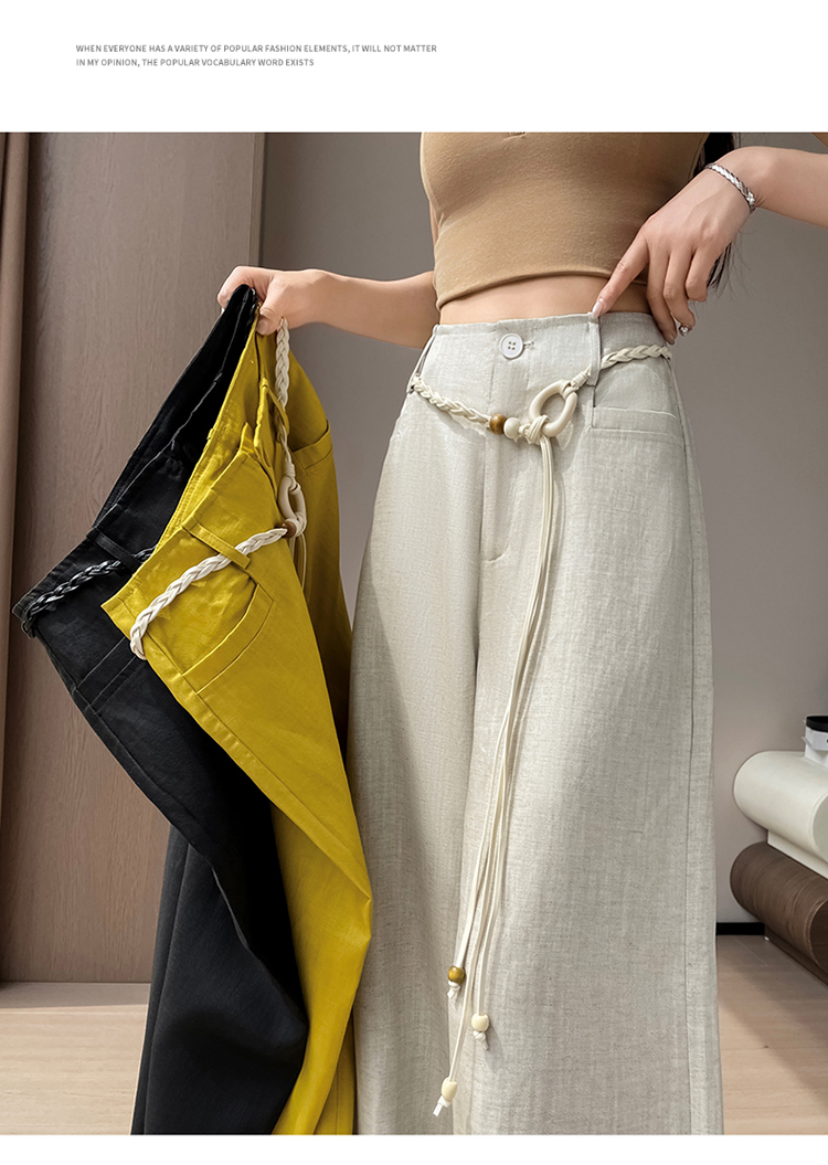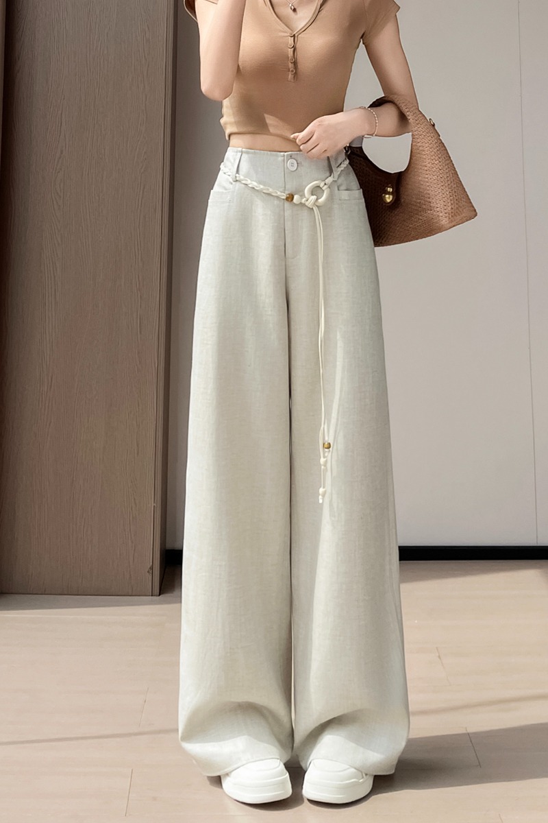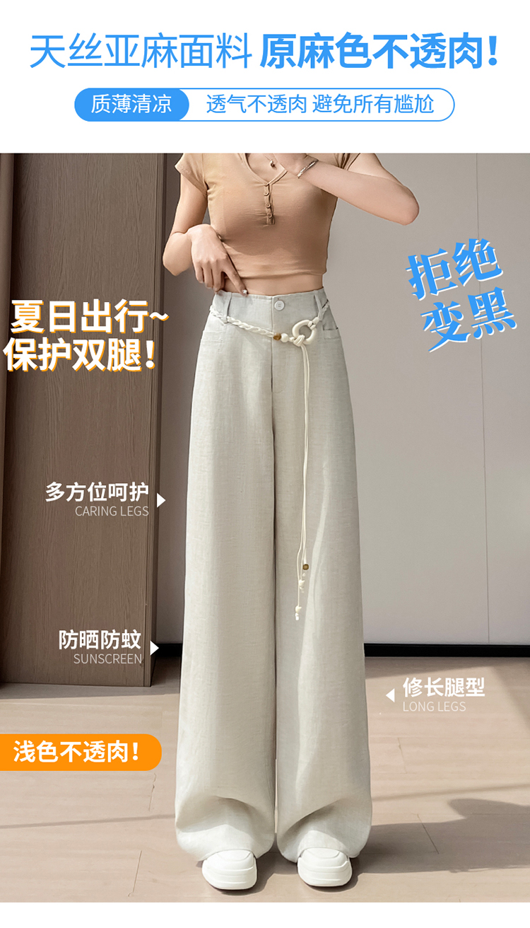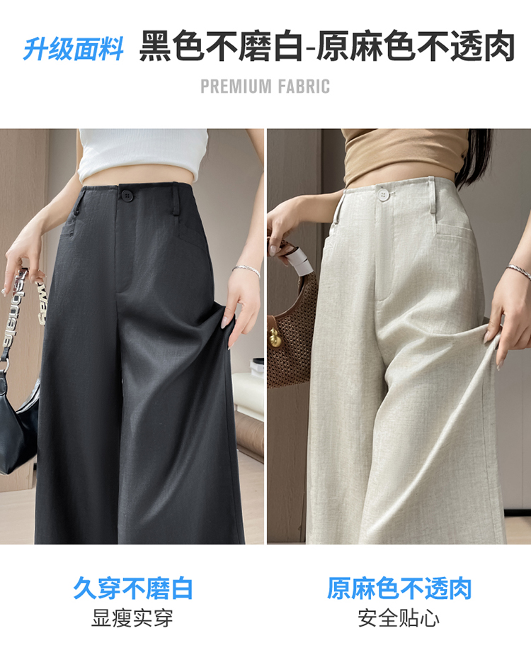 실사 2026 여름 새로운 주간 실크 아마 와이드 레그 팬츠 하이웨이스트 면 린넨 얇은 스타일 자외선 차단 스트레이트 바닥 청소 바지 여성