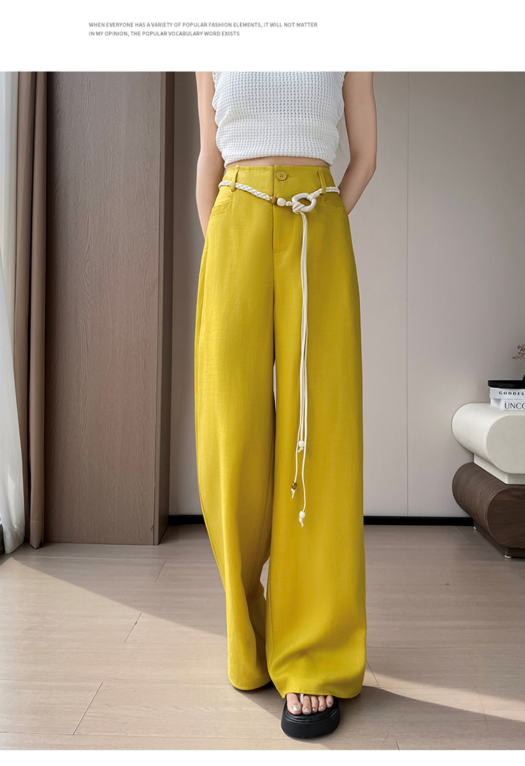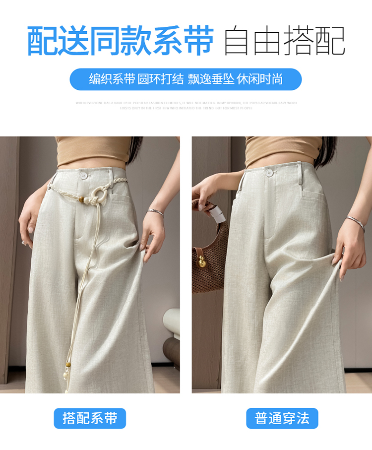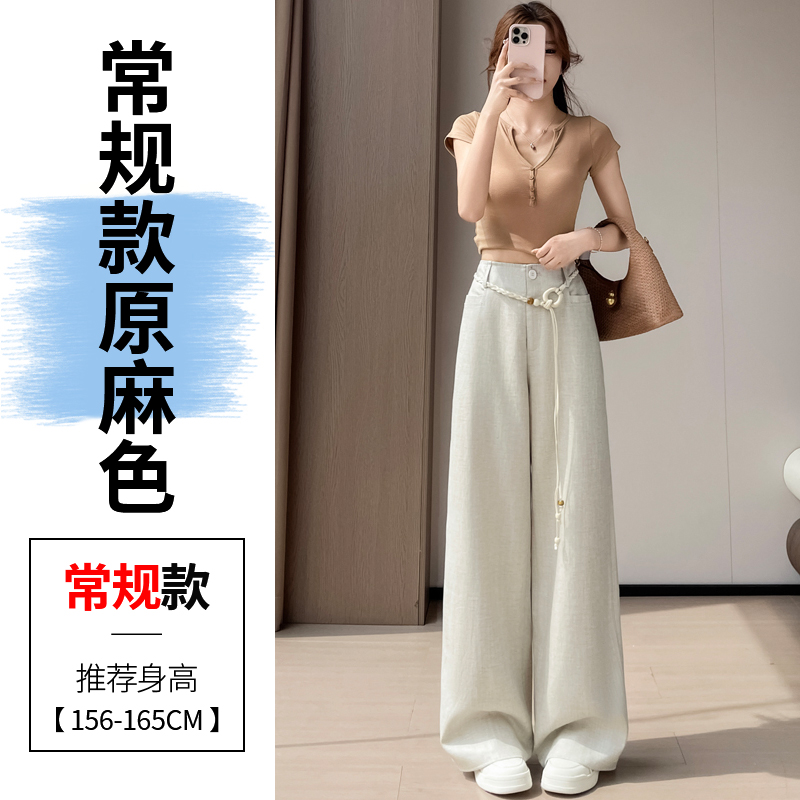 실사 2026 여름 새로운 주간 실크 아마 와이드 레그 팬츠 하이웨이스트 캐주얼 바지 얼음 실크 스트레이트 바닥 청소 바지 여성