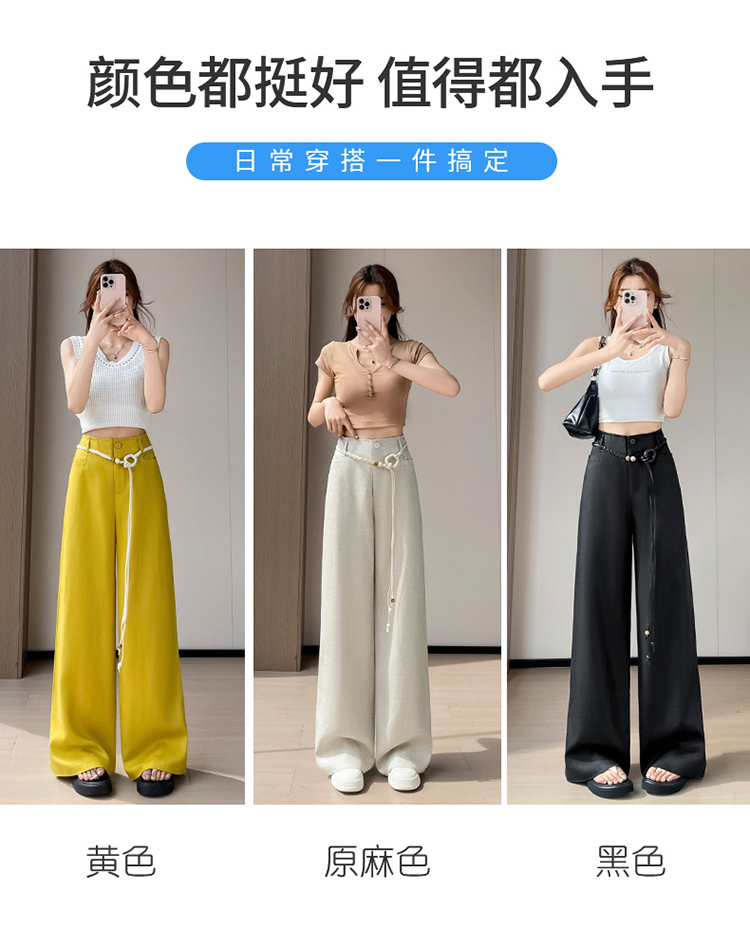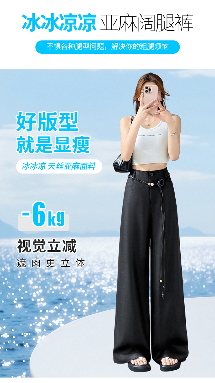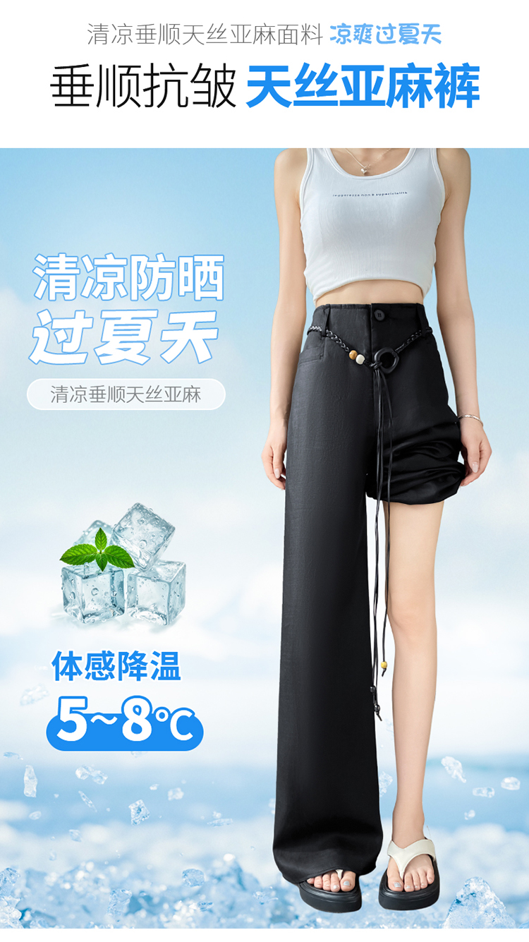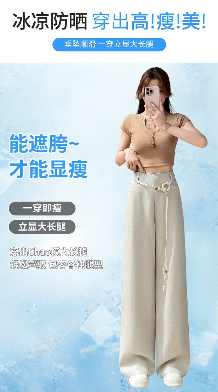 실사 2026 여름 새로운 주간 실크 아마 바지 와이드 레그 팬츠 얇은 스타일 하이웨이스트 얼음 실크 좁은 에디션 바닥 청소 바지 여성