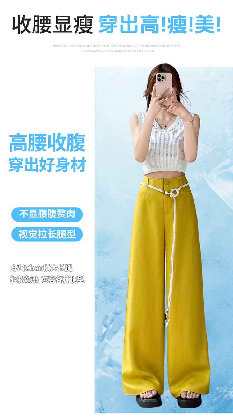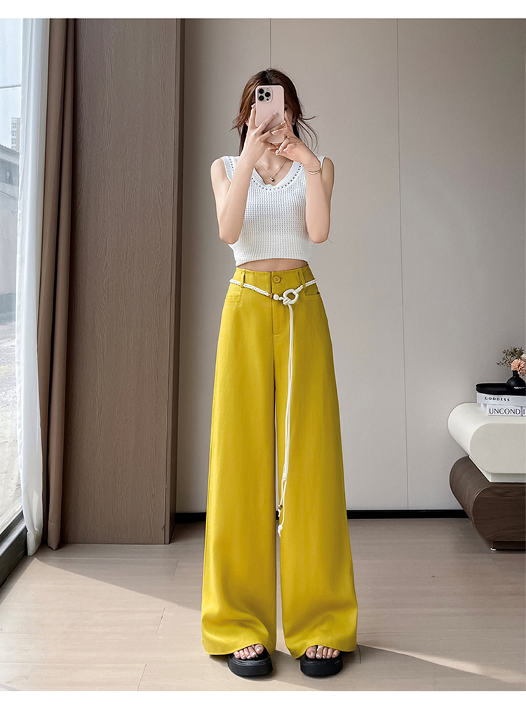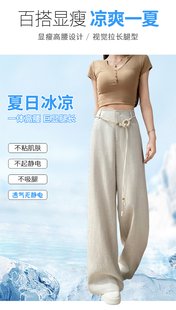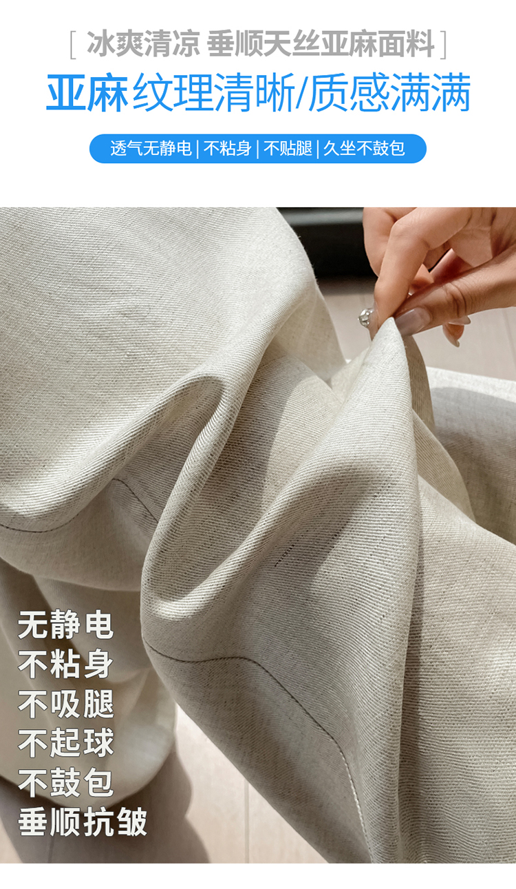 실사 2026 여름 새로운 주간 실크 아마 바지 와이드 레그 팬츠 얇은 스타일 하이웨이스트 얼음 실크 좁은 에디션 바닥 청소 바지 여성