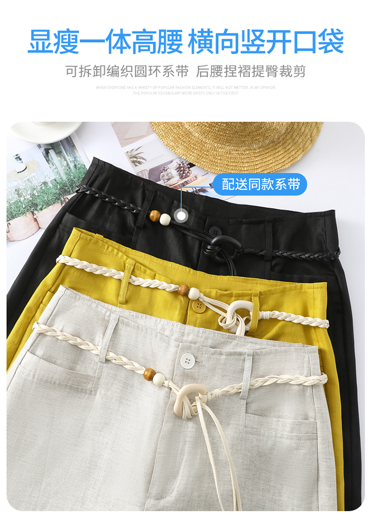 실사 2026 여름 새로운 주간 실크 아마 오부 바지 한 마디 넓은 다리 하이웨이스트 면 린넨 얇은 스타일 반바지 여성