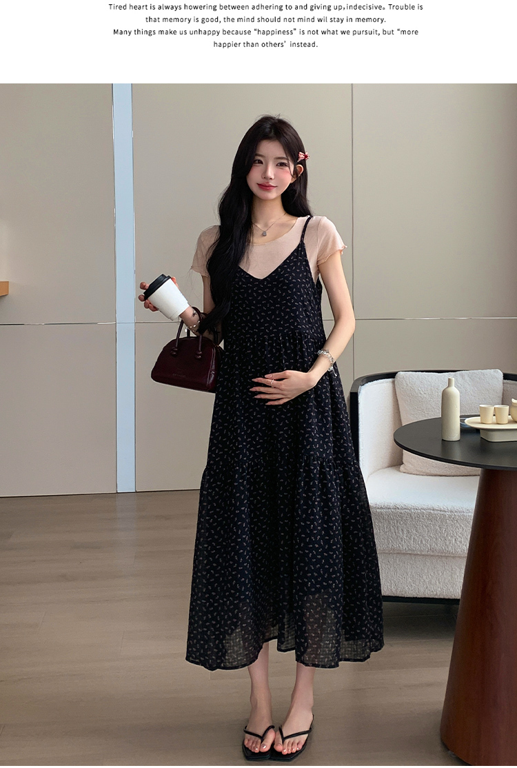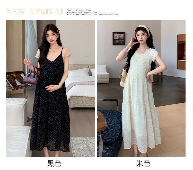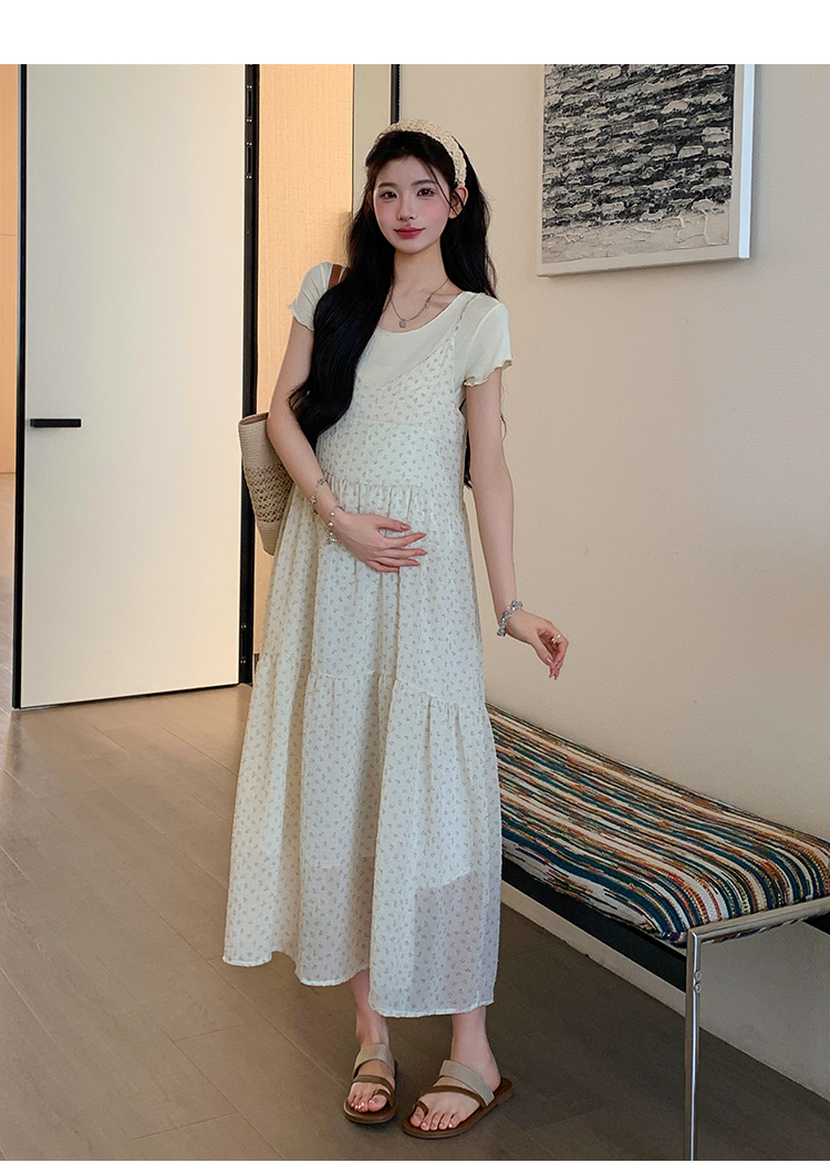 실사 새로운 인터넷 유명인 임산부 여름 드레스 순면 니트 임산부 조끼 스커트 숄 몸매 가꾸기 슬림해 보이는 출산 스커트