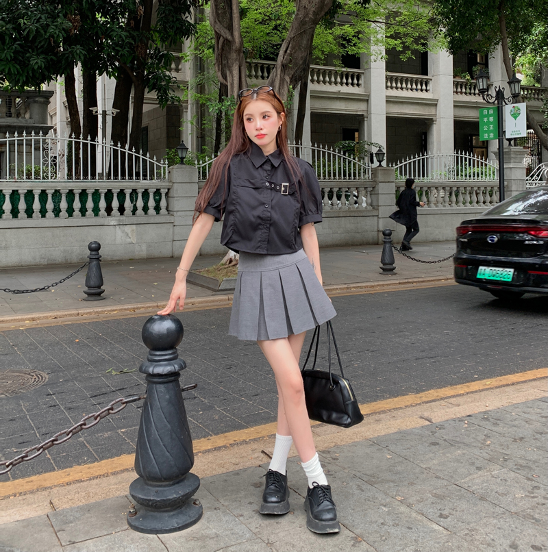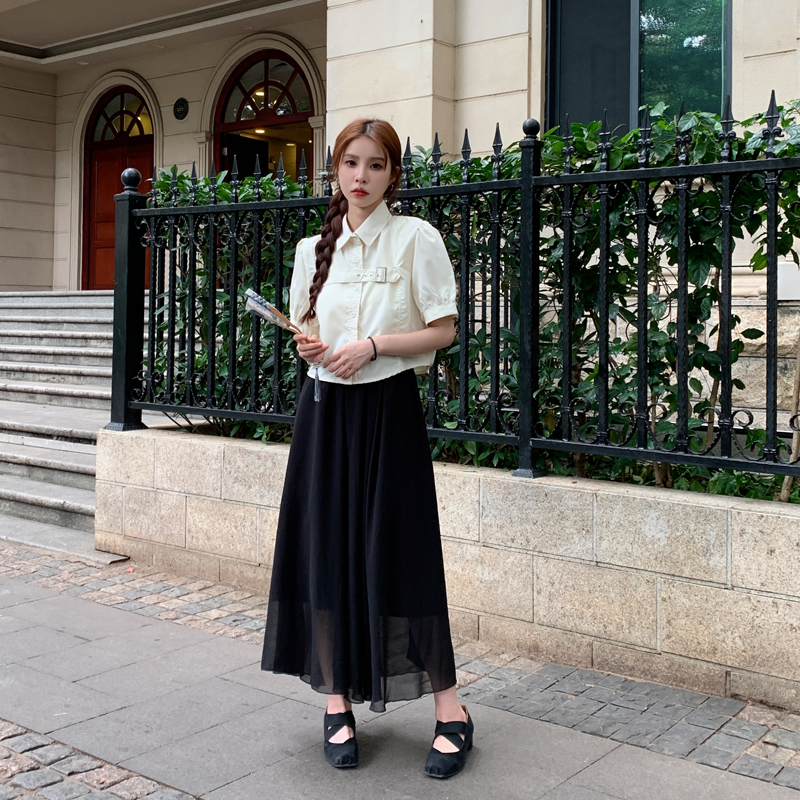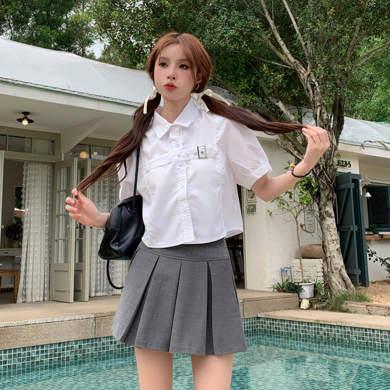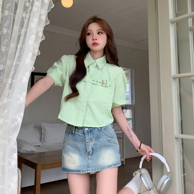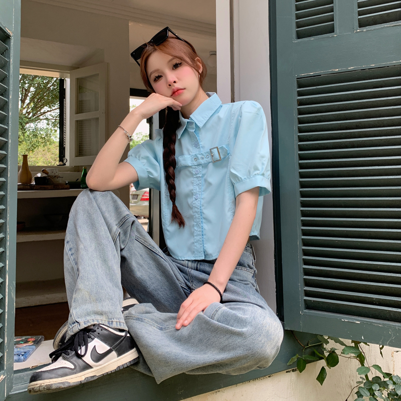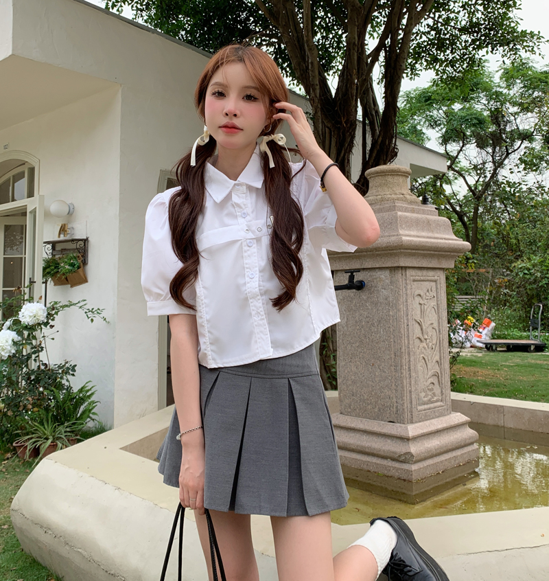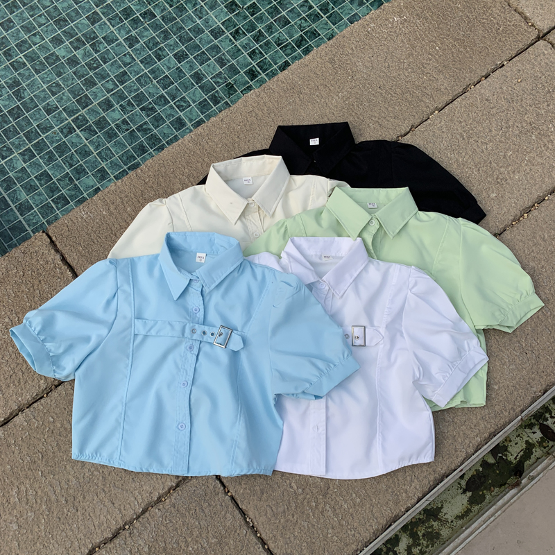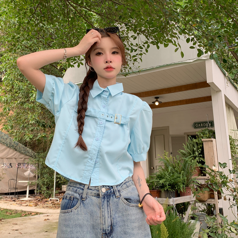 실사 정가 프랑스식 버블 반팔 여성 셔츠 2026 여름 디자인 센스 작은 대중 셔츠 쇼트 스타일