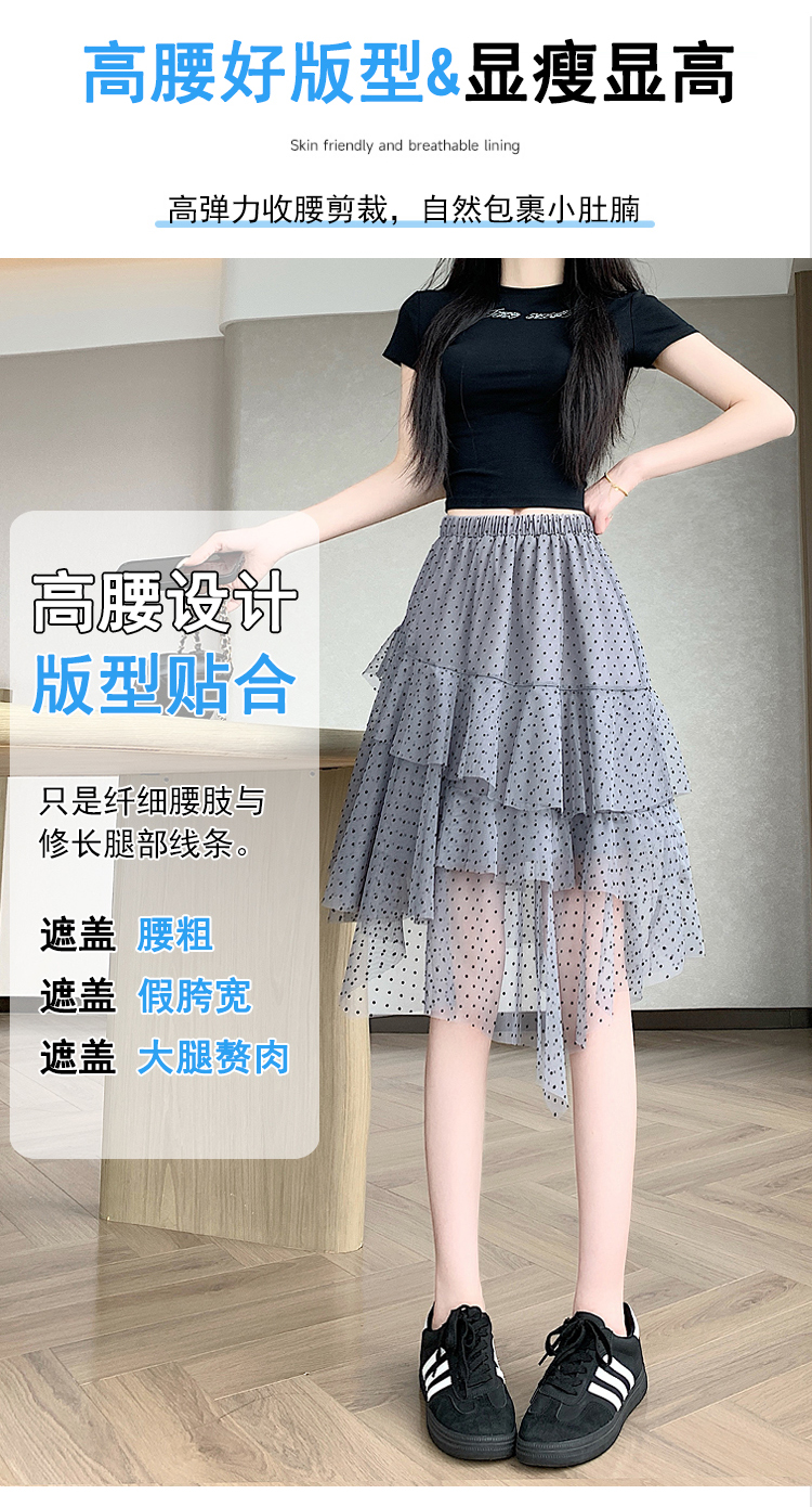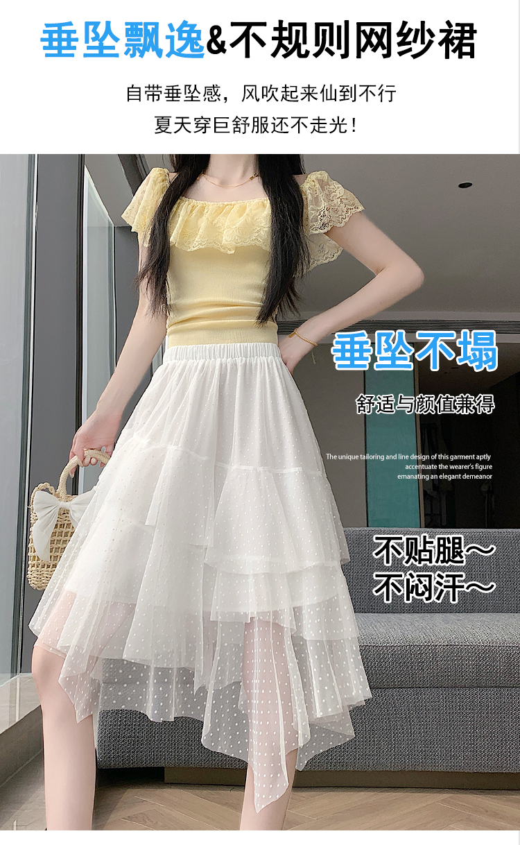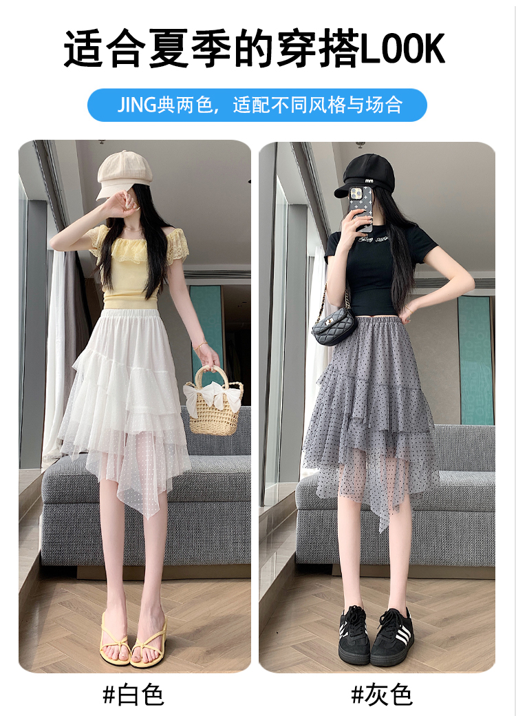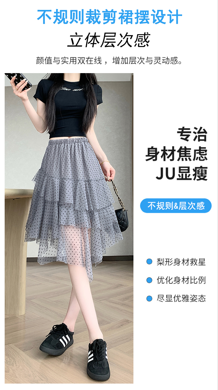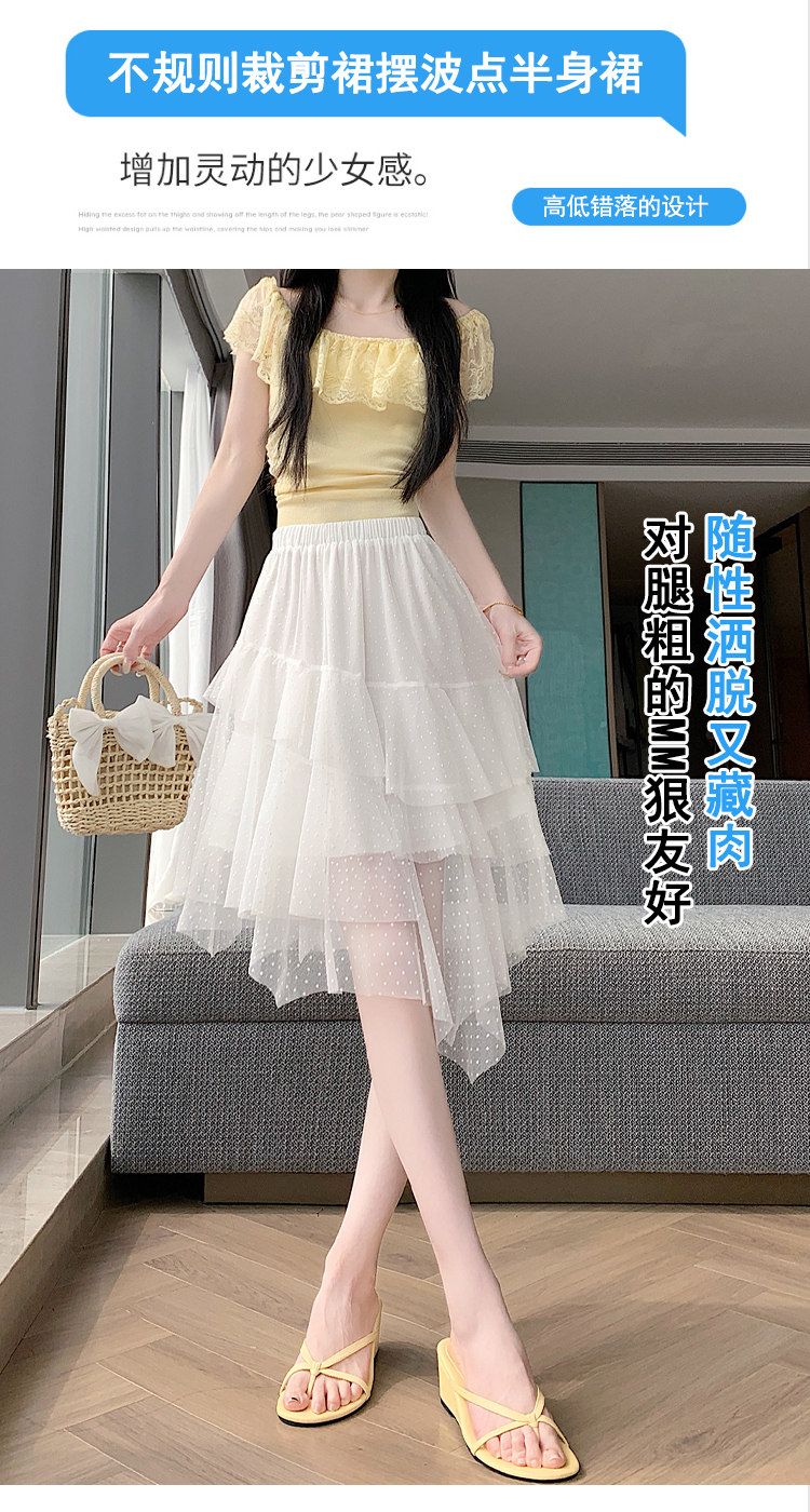 실사 불규칙 디자인 센스 망사 반신 스커트 여름 케이크 드레스 계층의 감각 다용도 한 마디 퍼프 중간 스커트