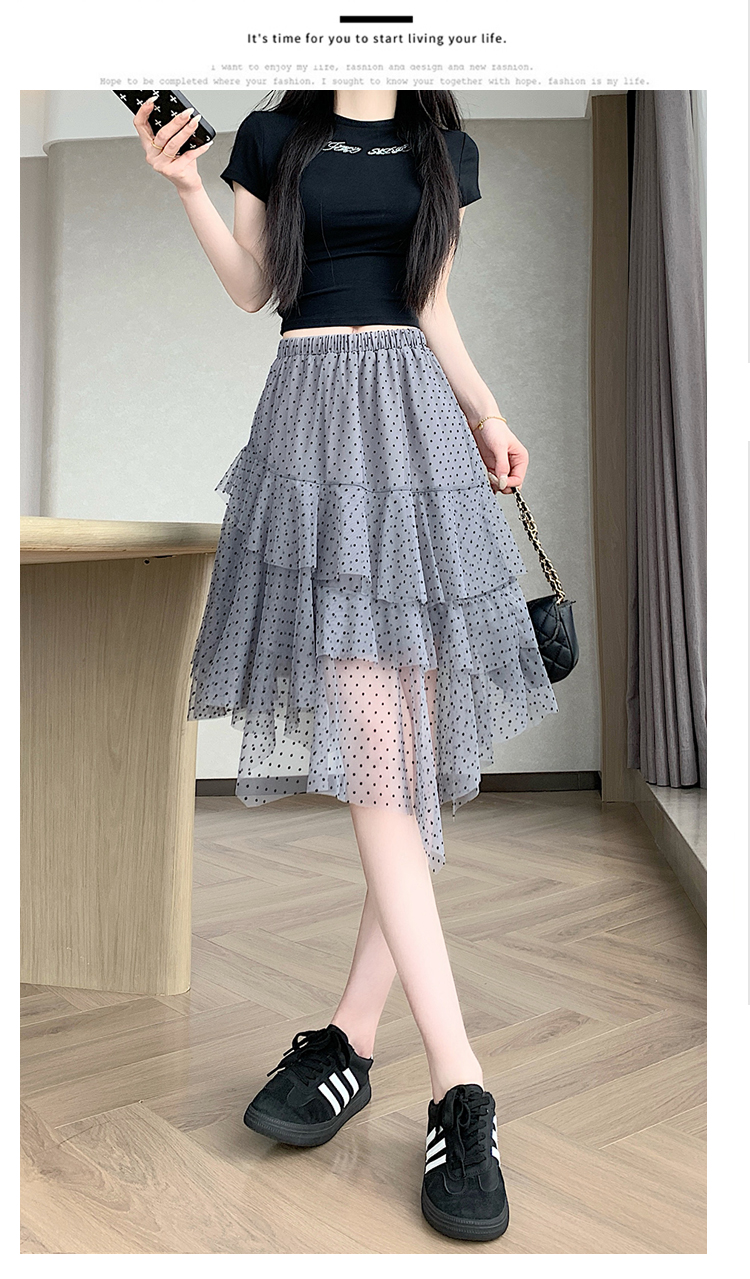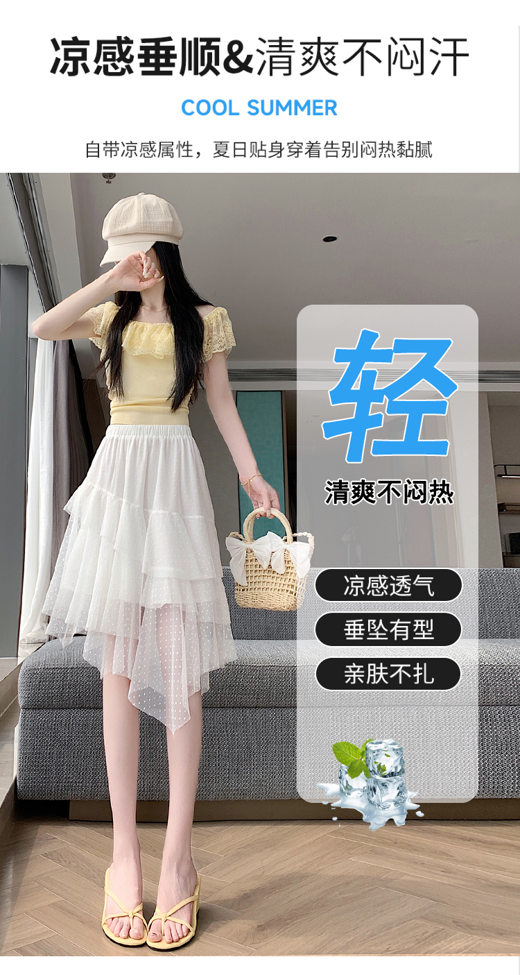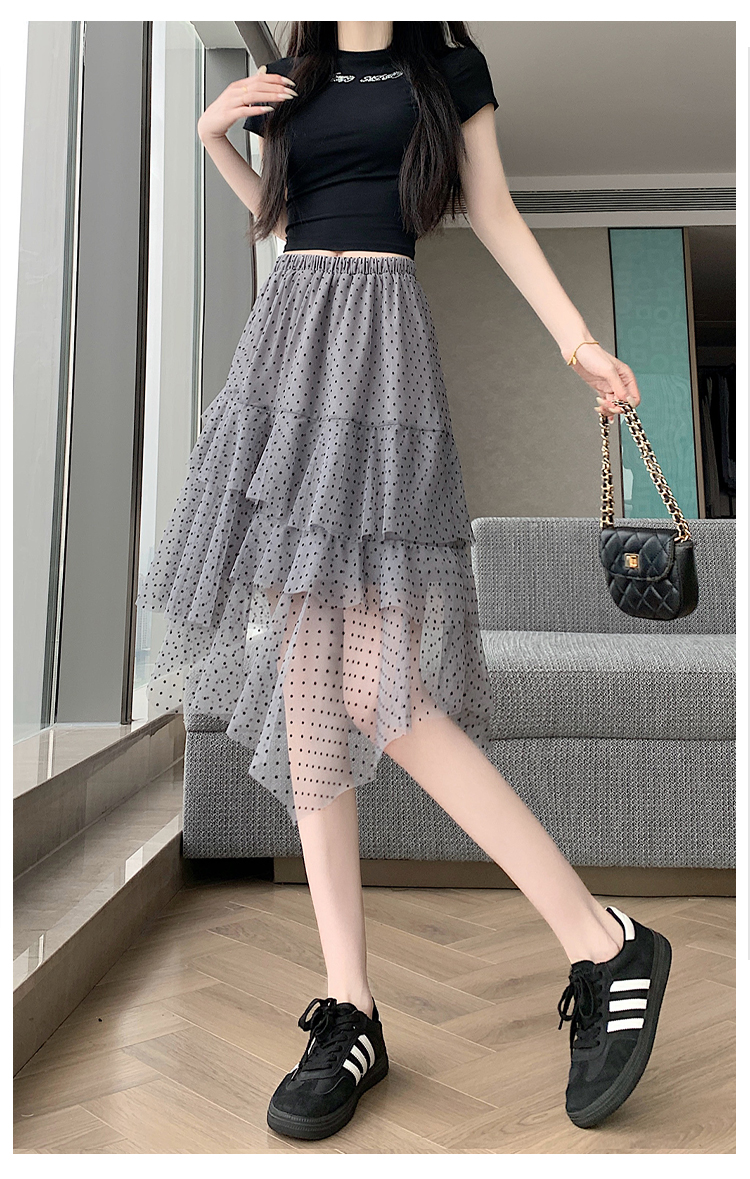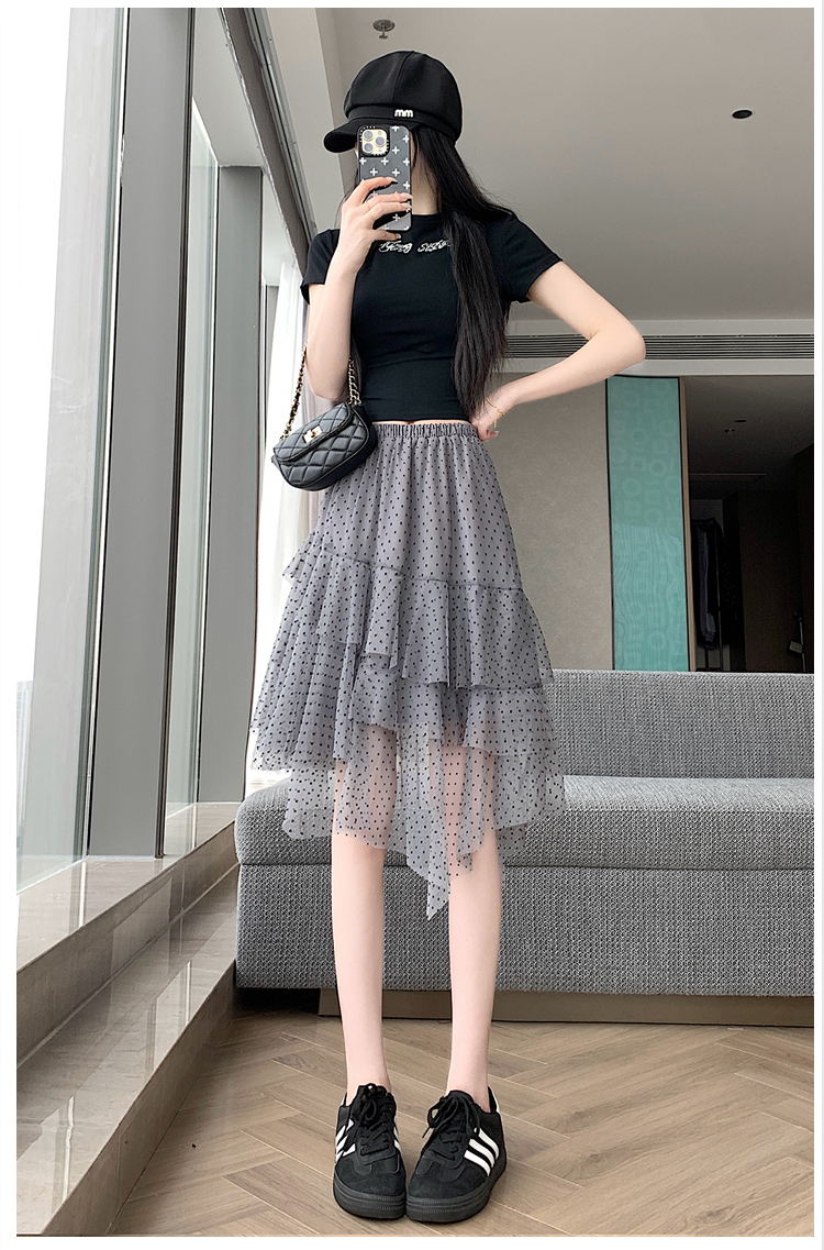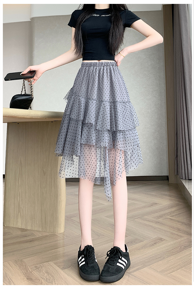 실사 불규칙 디자인 센스 망사 반신 스커트 여름 케이크 드레스 계층의 감각 다용도 한 마디 퍼프 중간 스커트