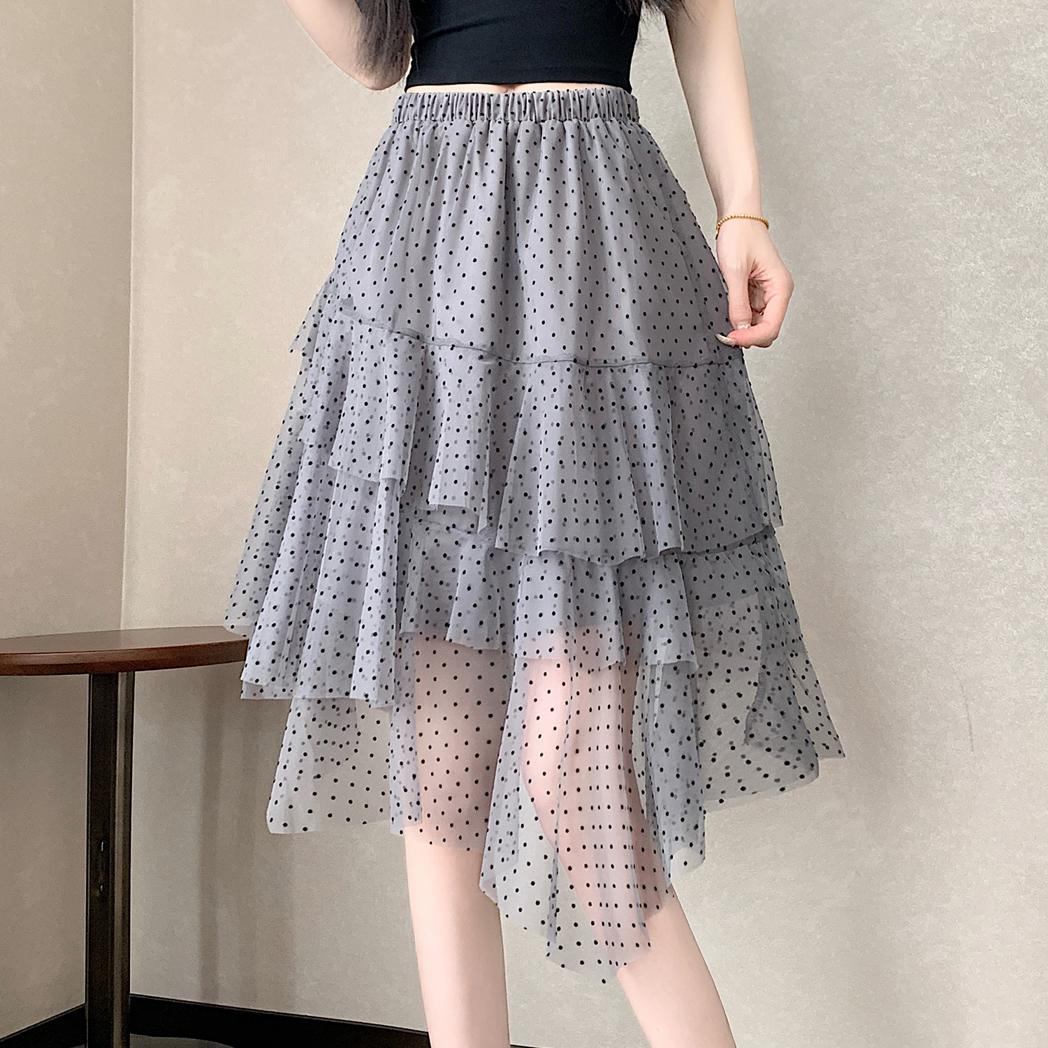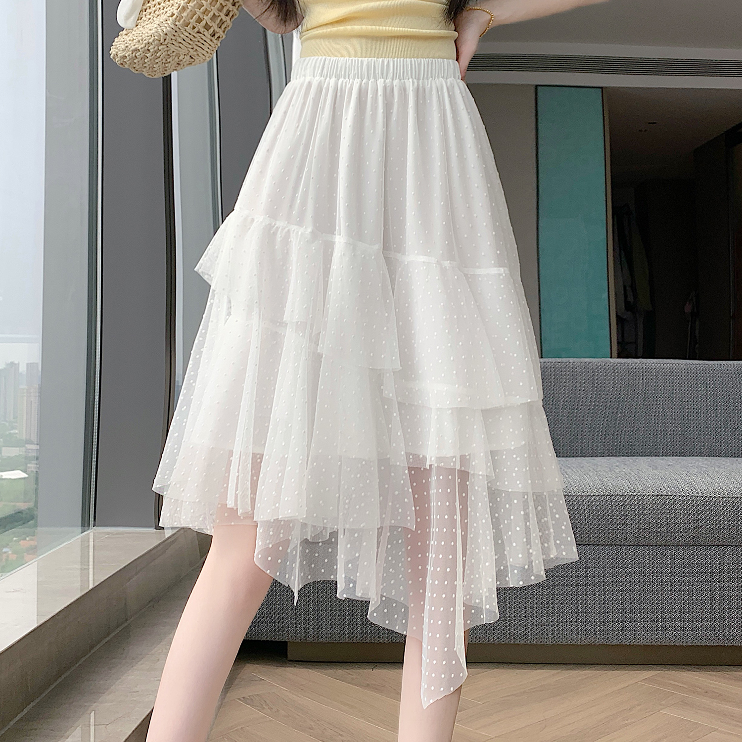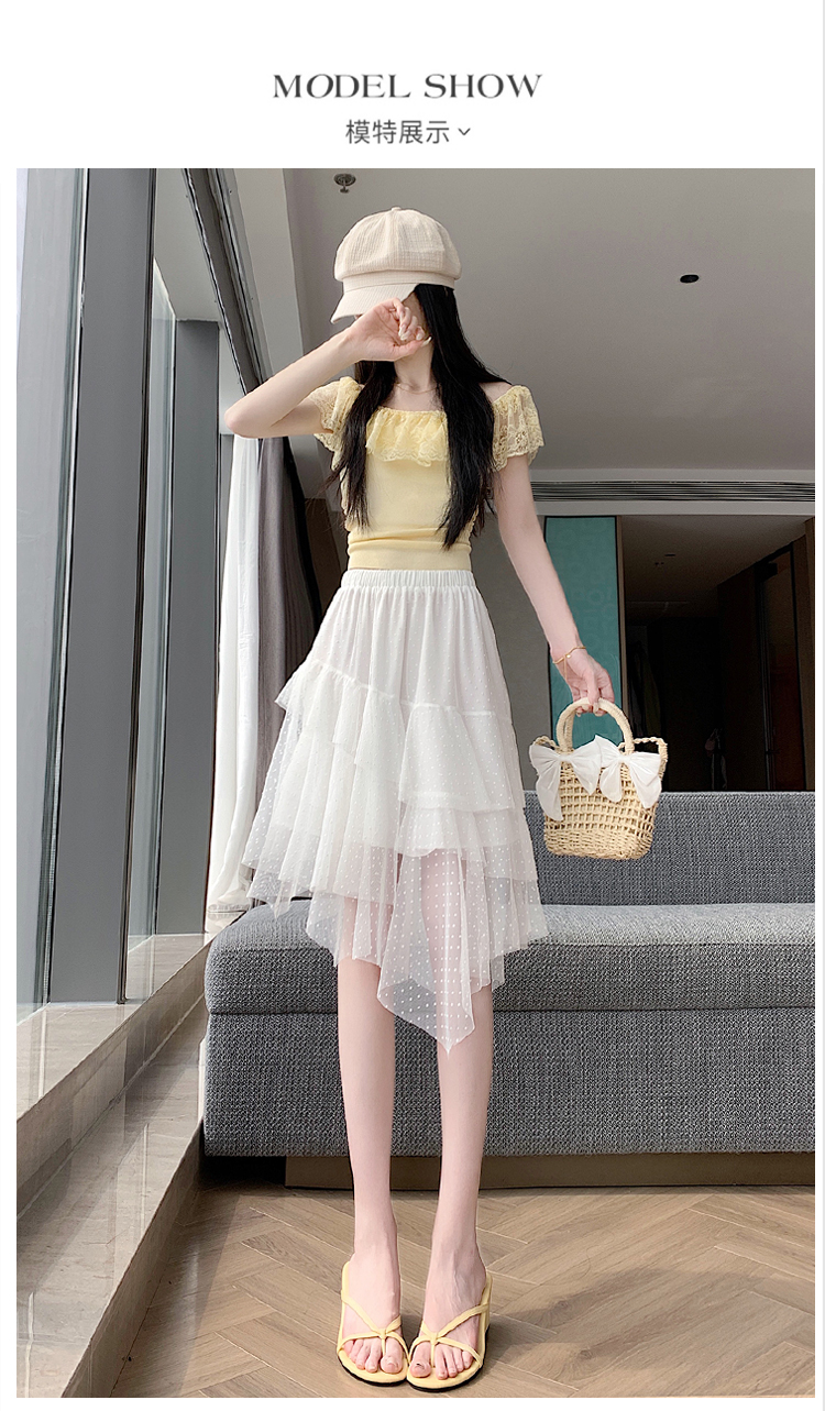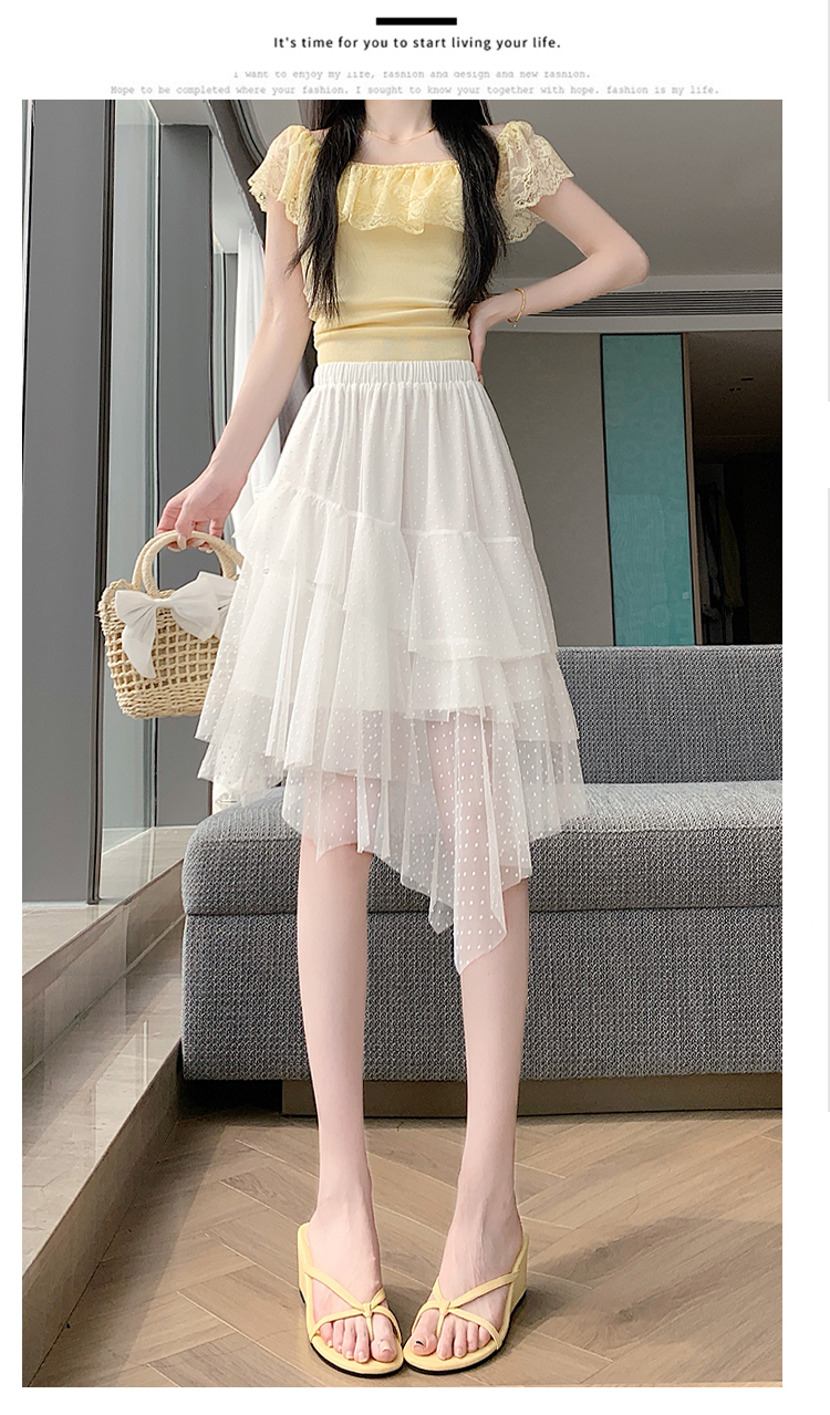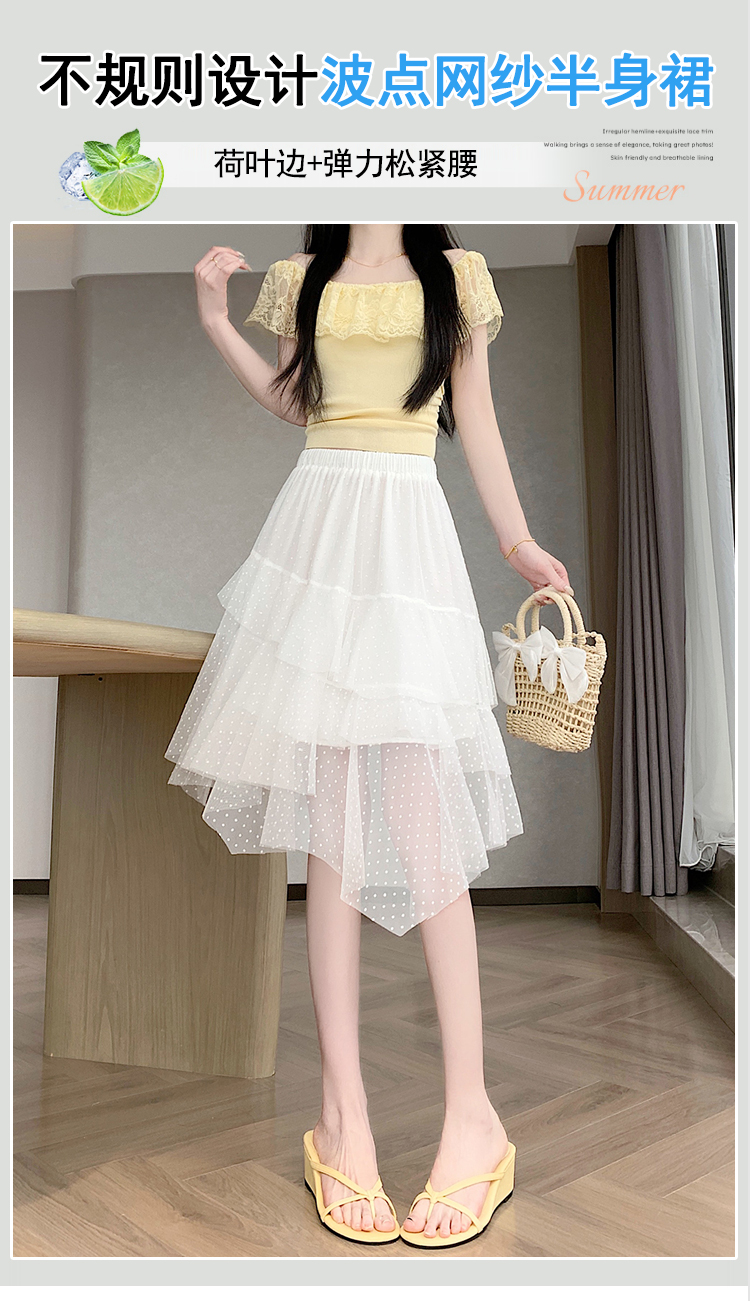 실사 불규칙 디자인 센스 망사 반신 스커트 여름 케이크 드레스 계층의 감각 다용도 한 마디 퍼프 중간 스커트