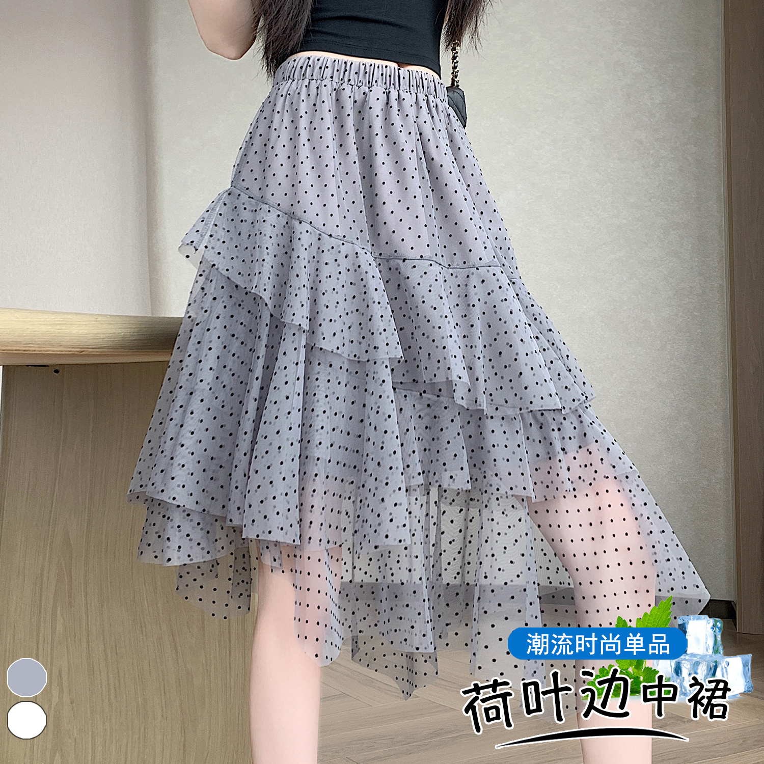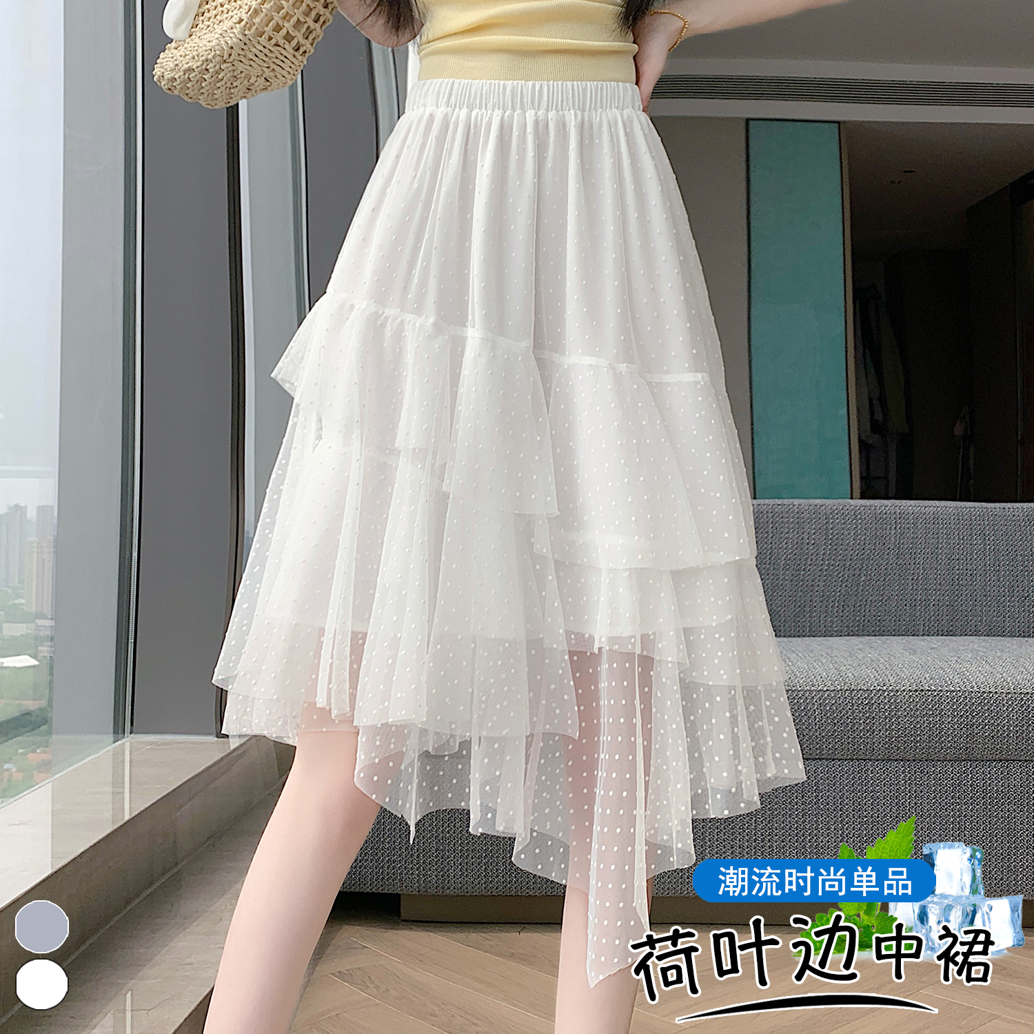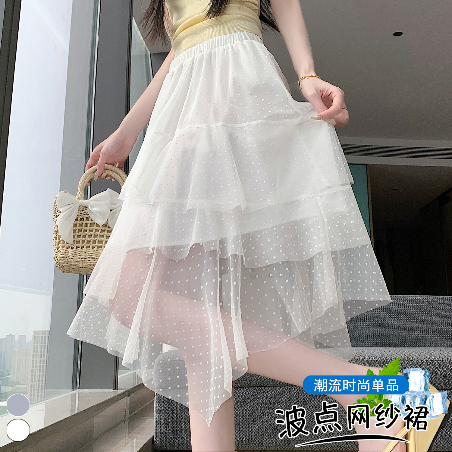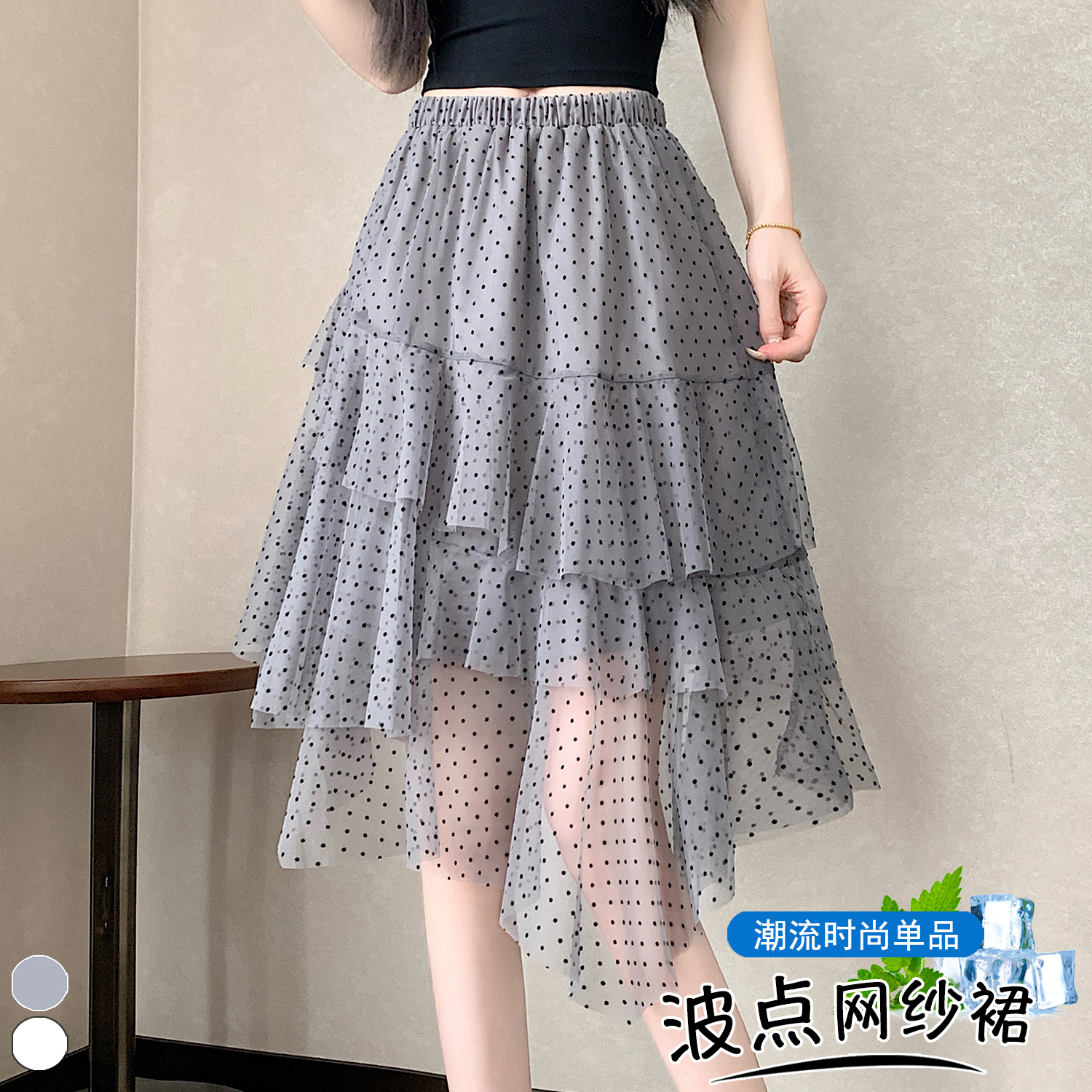 실사 불규칙 디자인 센스 망사 반신 스커트 여름 케이크 드레스 계층의 감각 다용도 한 마디 퍼프 중간 스커트