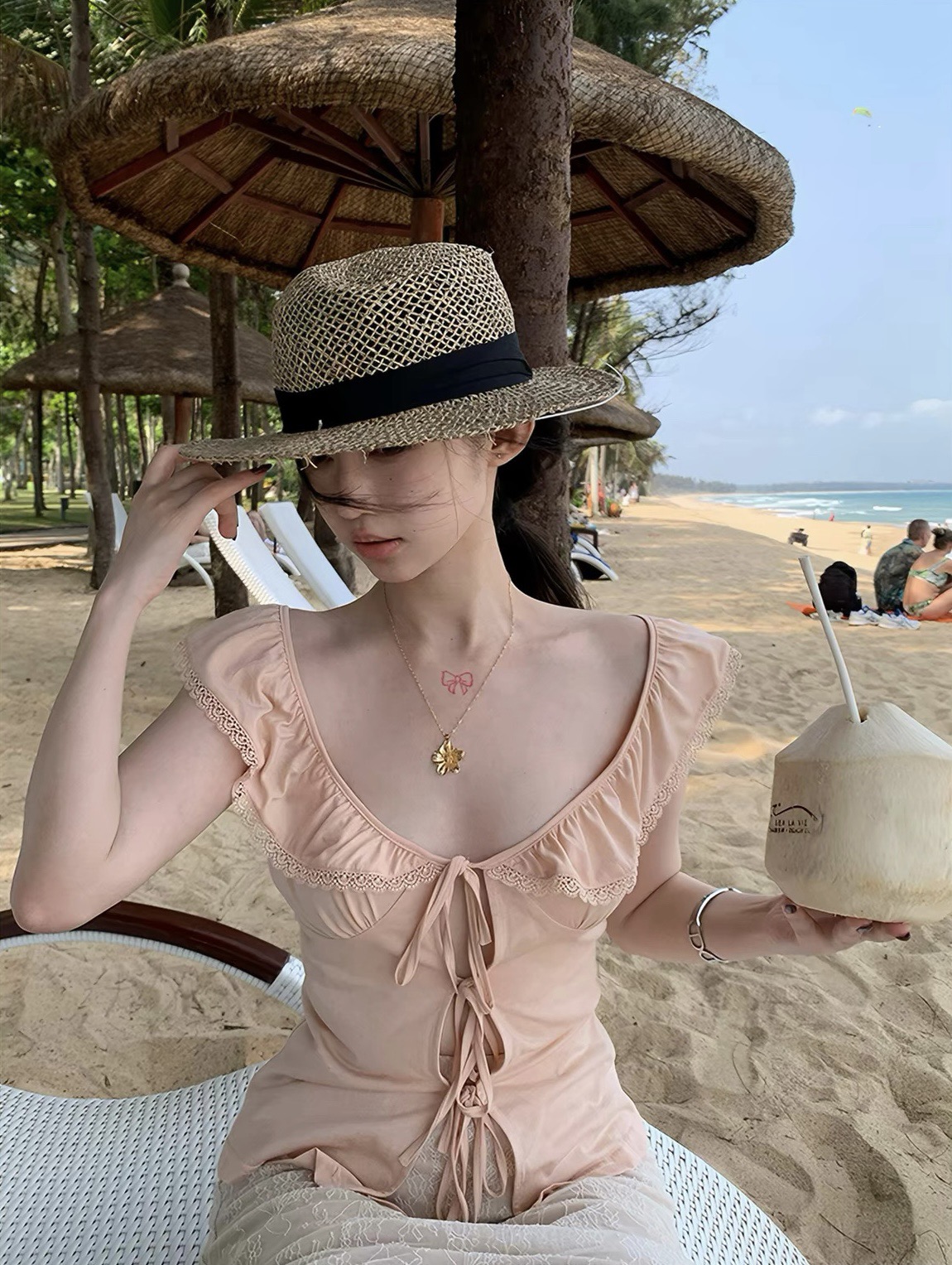 한 좋은 달콤한 warden edge 니트 민소매 캐미솔 여름 핫걸 몸매 가꾸기 아름다움 뒤로 외출용 작은 맨위