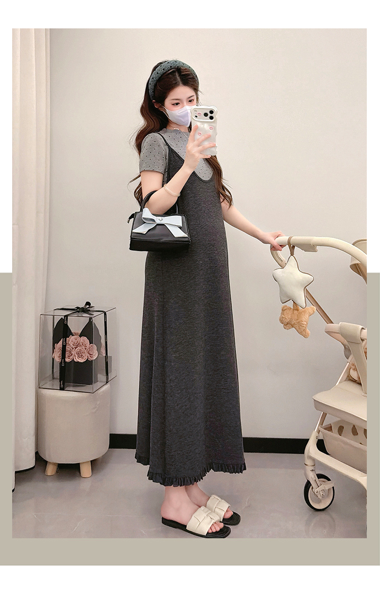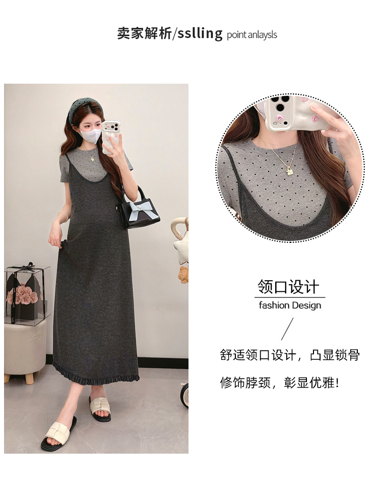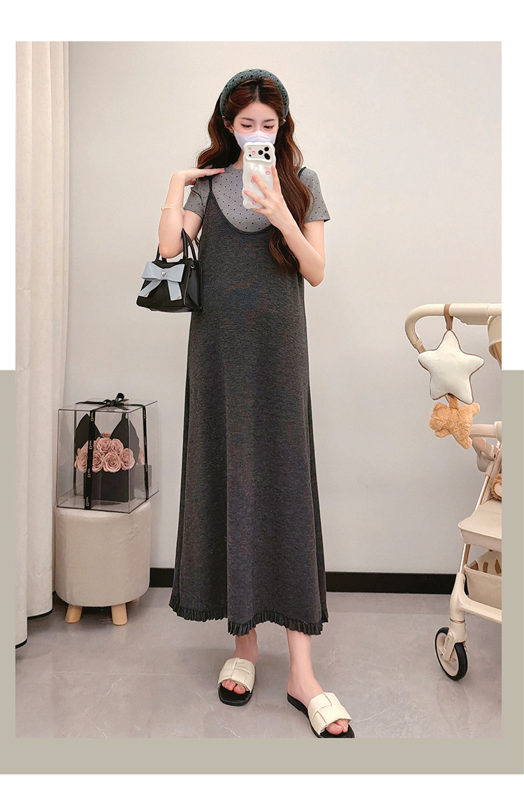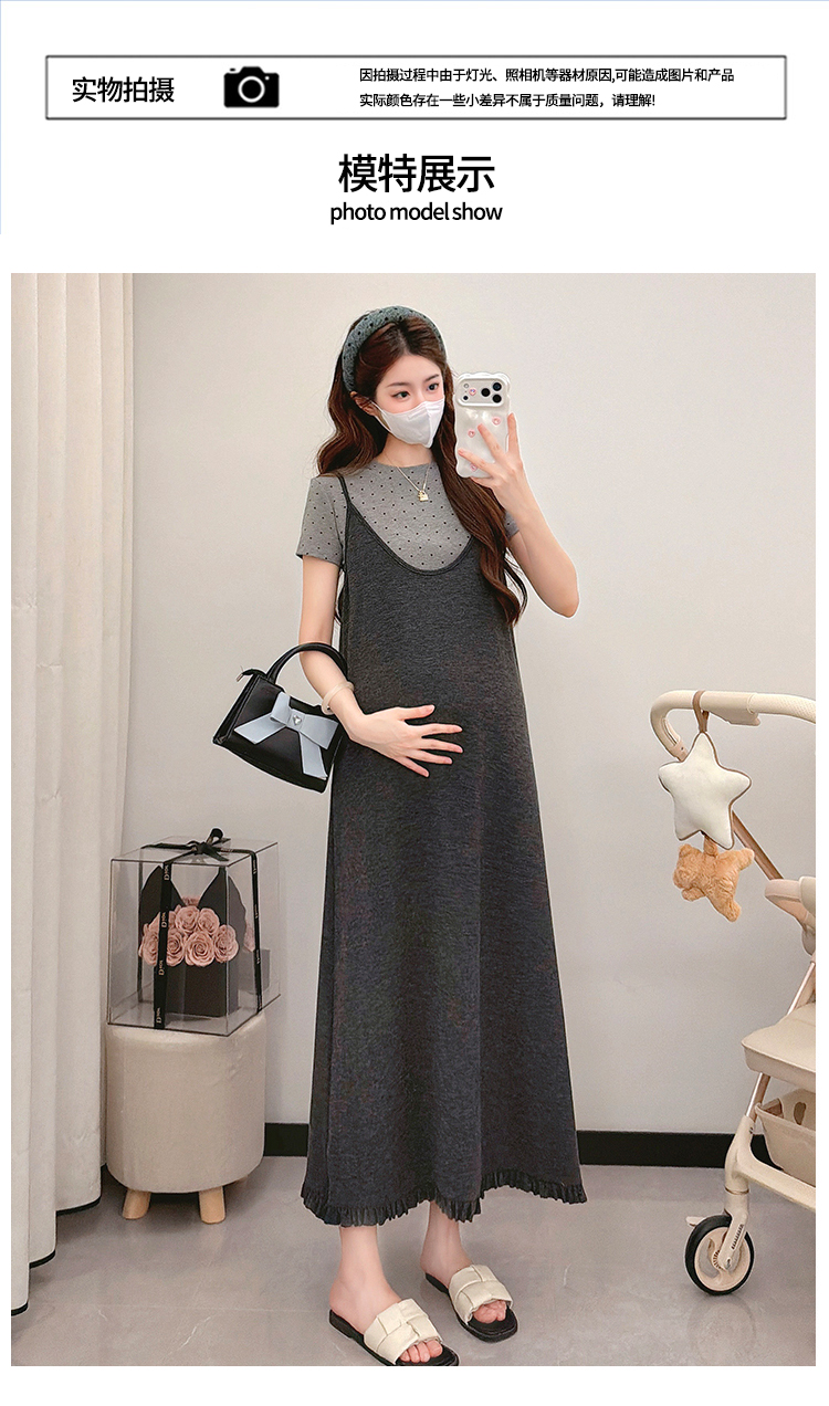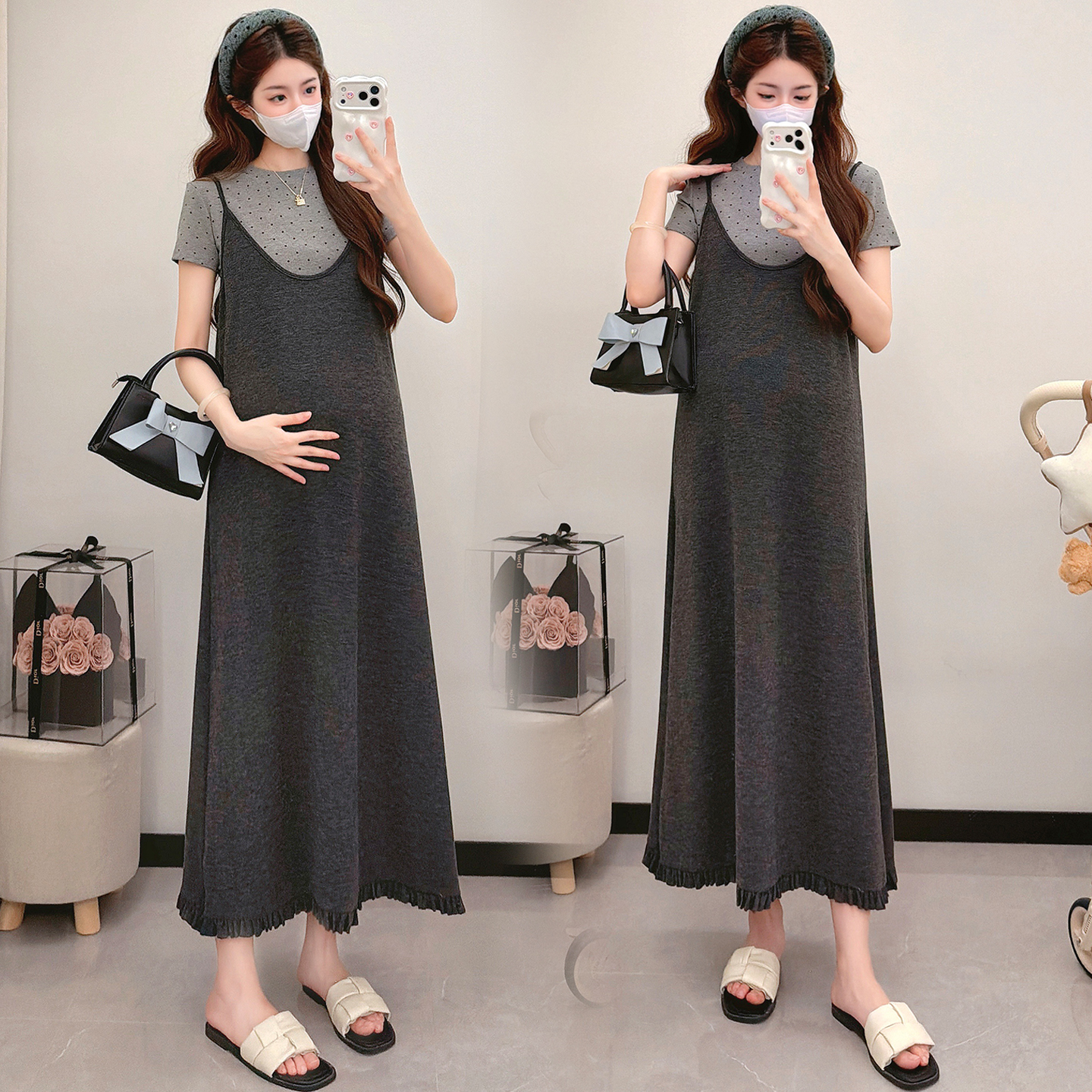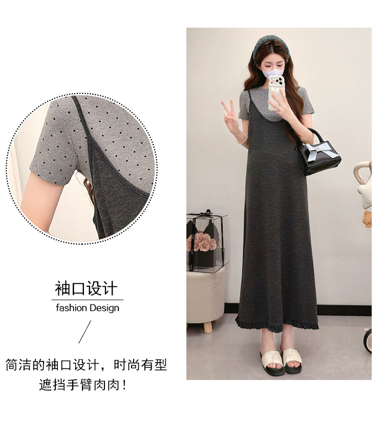 매운맛 엄마 임신 기간 착용 가져 가라. 슬립 드레스 2026 여름 새로운 슬림해 보이는 반팔 맨위 투피스 세트 출산 착용