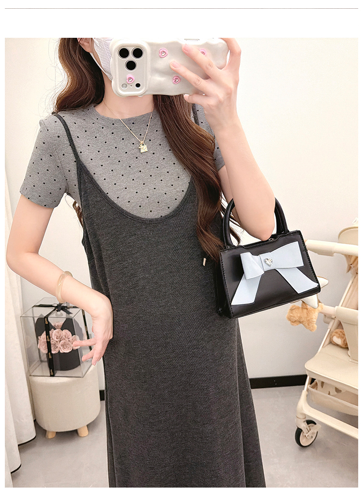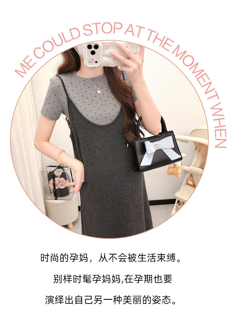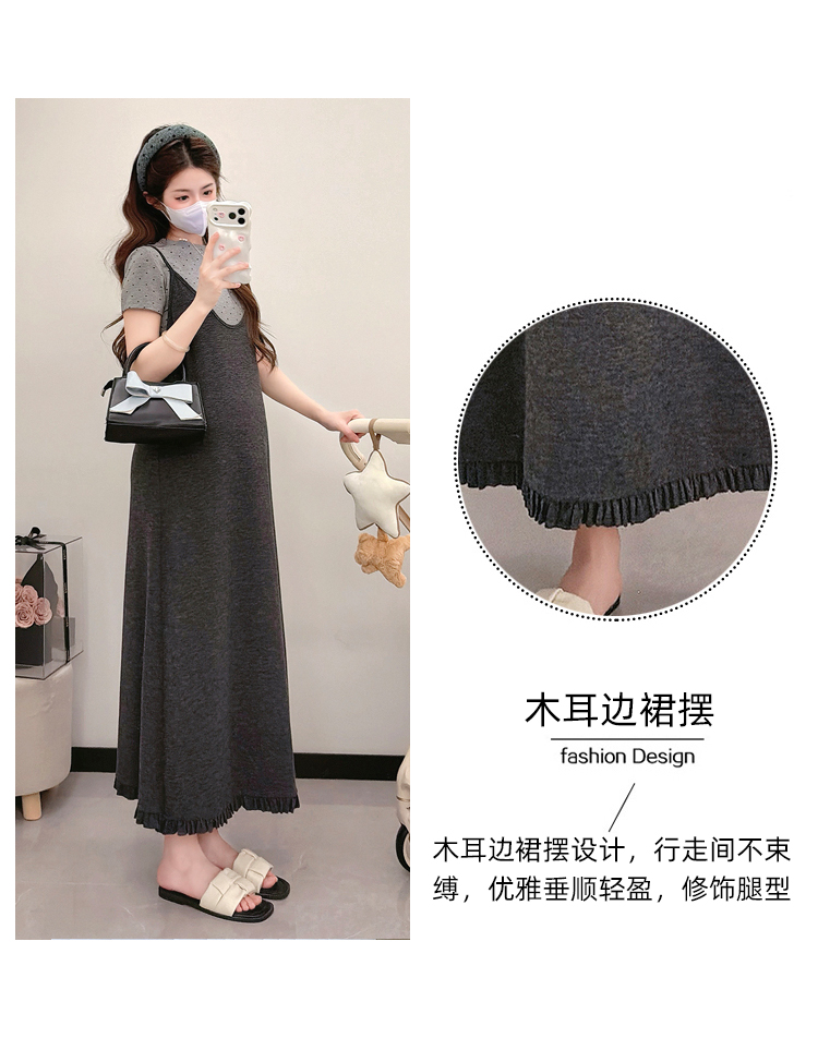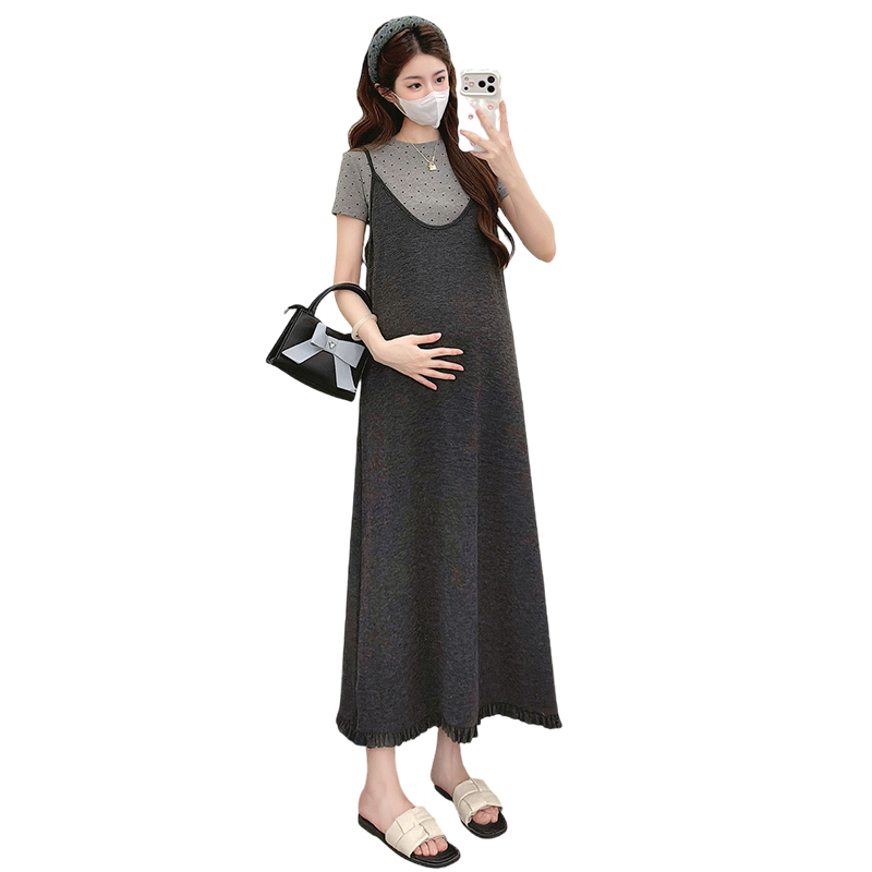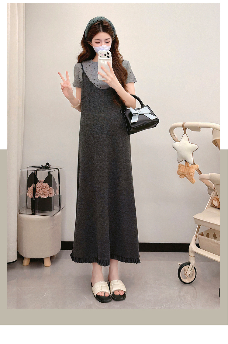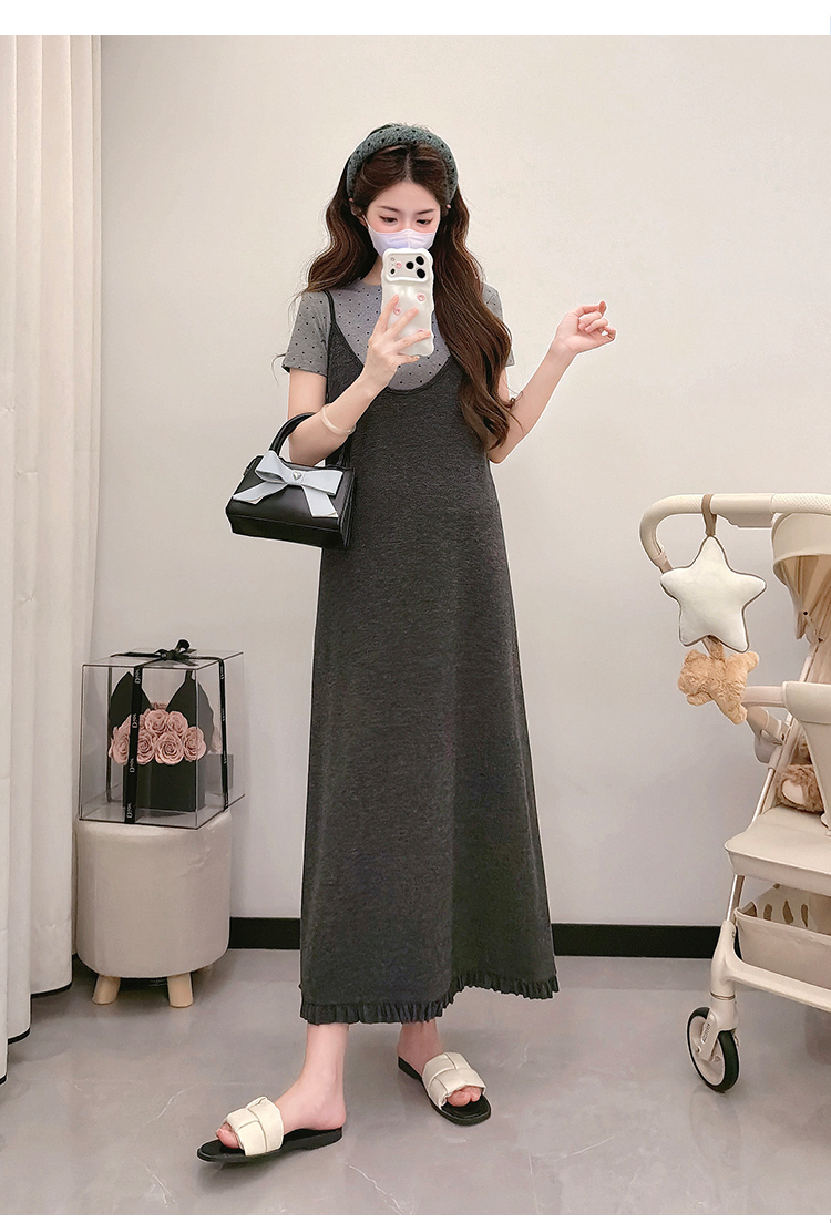 매운맛 엄마 임신 기간 착용 가져 가라. 슬립 드레스 2026 여름 새로운 슬림해 보이는 반팔 맨위 투피스 세트 출산 착용
