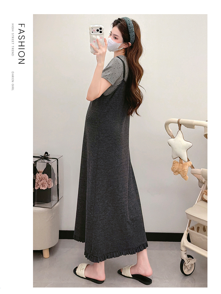 인터넷 유명인 섹션 임신 기간 착용 가져 가라. 중간 길이 치마 2026 여름 새로운 빅 사이즈 루즈핏 슬림해 보이는 출산 착용 드레스