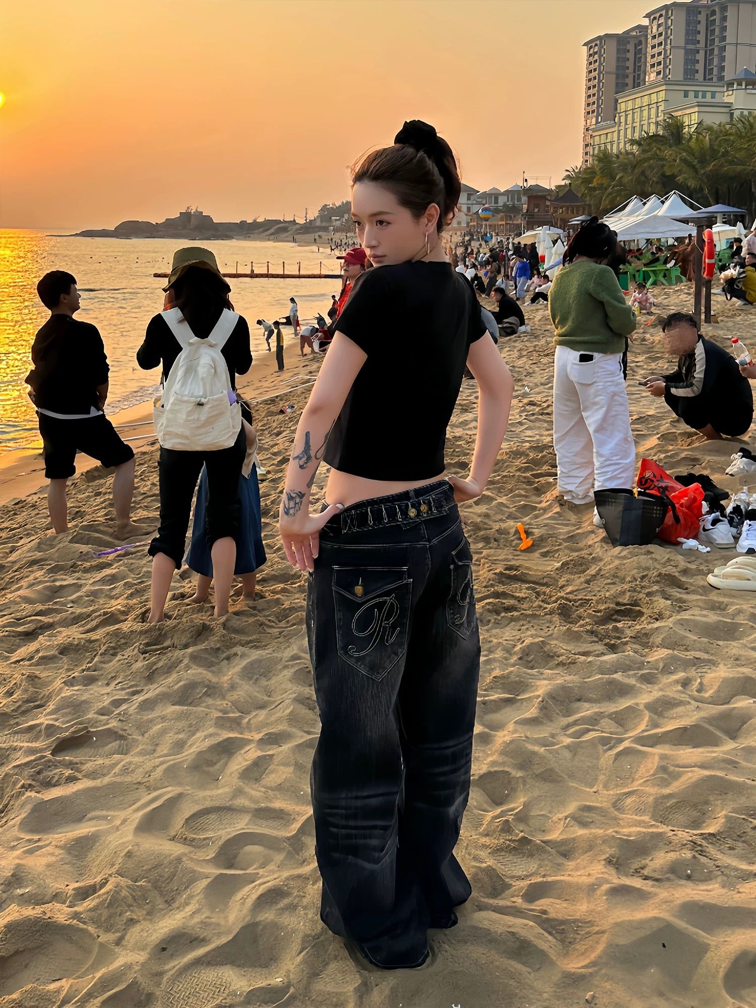 나비 매듭 스트랩 작은 대중 뒤집다 측면 청바지 여성 여름 2026 새로운 디자인 센스 루즈핏 스트레이트 와이드 레그 팬츠 어린이