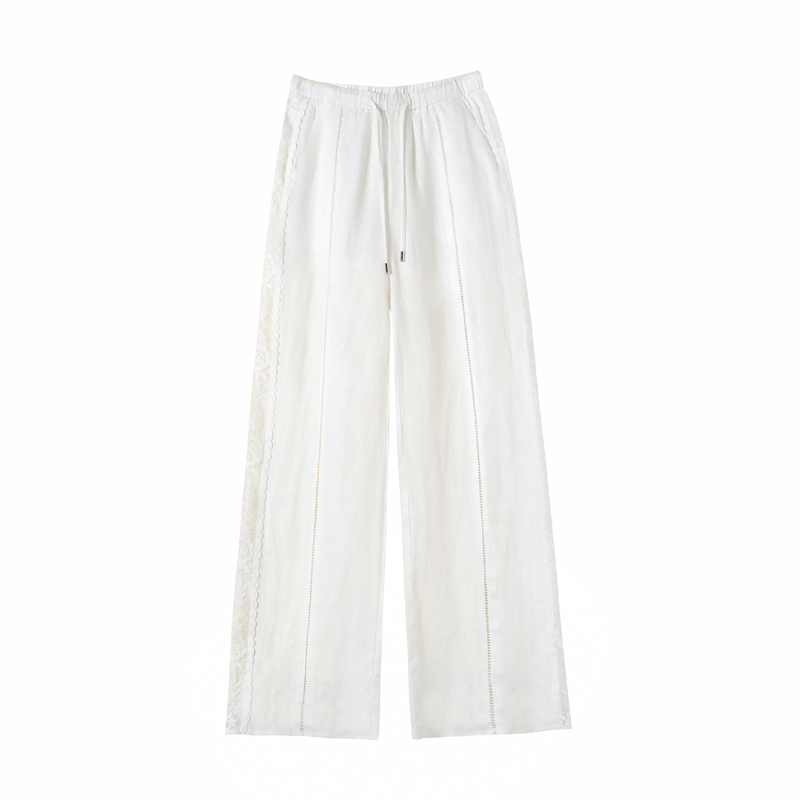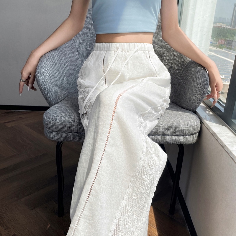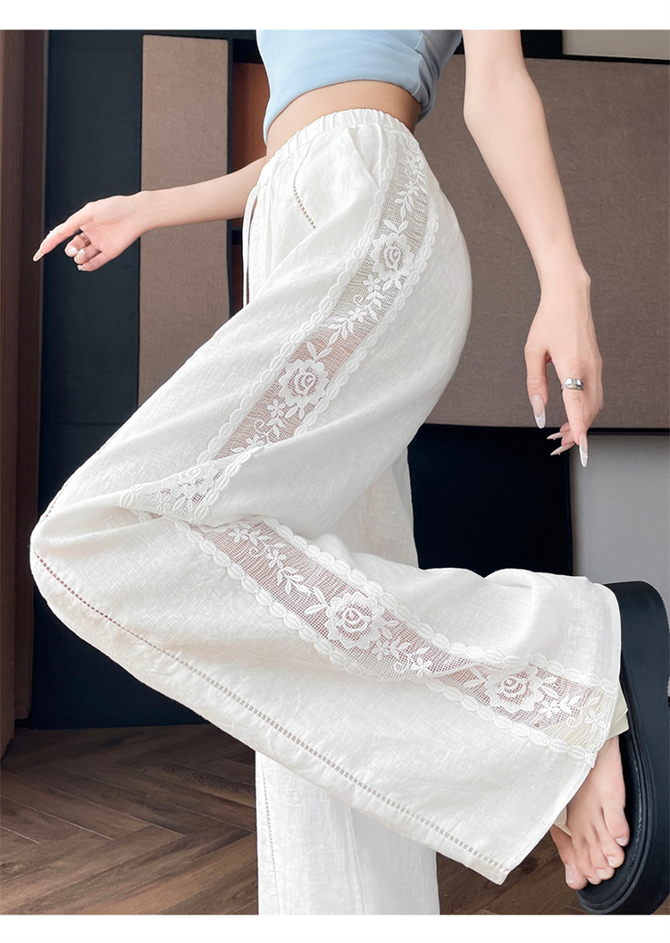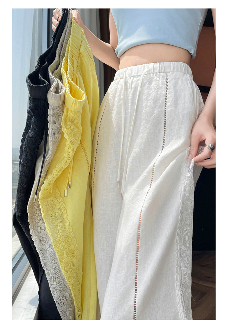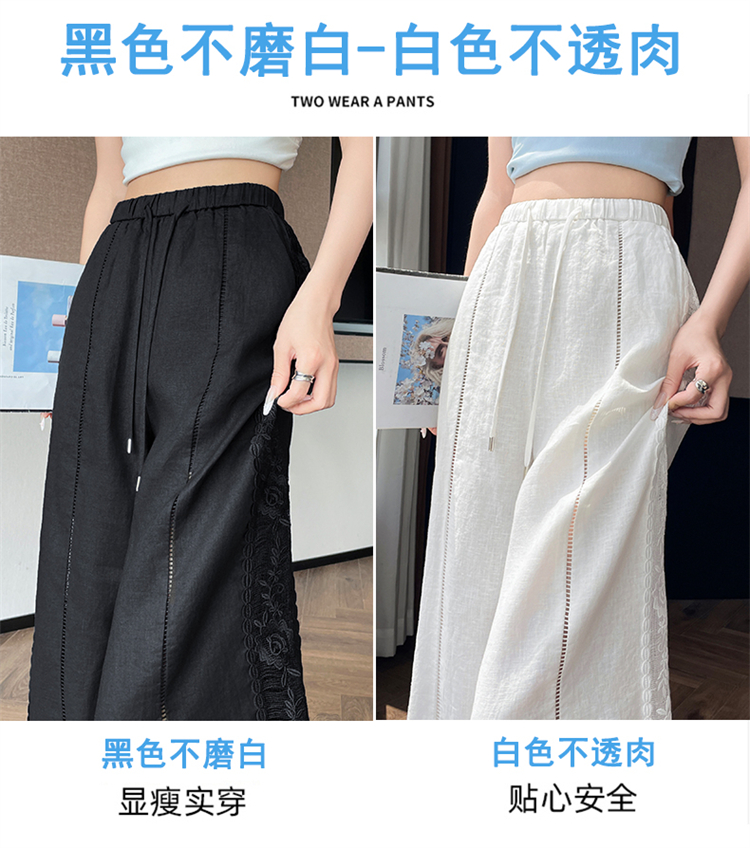 실사 2026 여름 새로운 면 린넨 와이드 레그 팬츠 얼음 실크 하이웨이스트 얇은 스타일 레이스 야마모토 바지 여성
