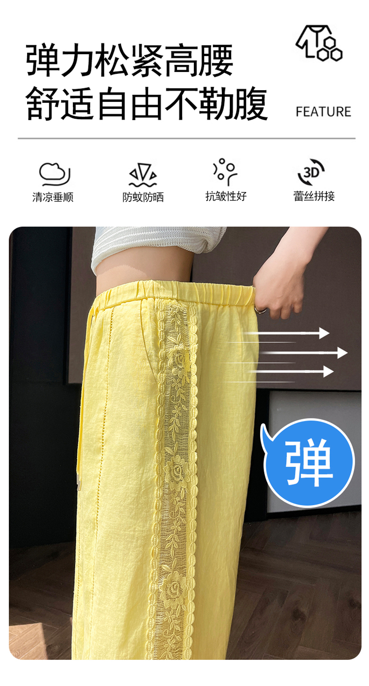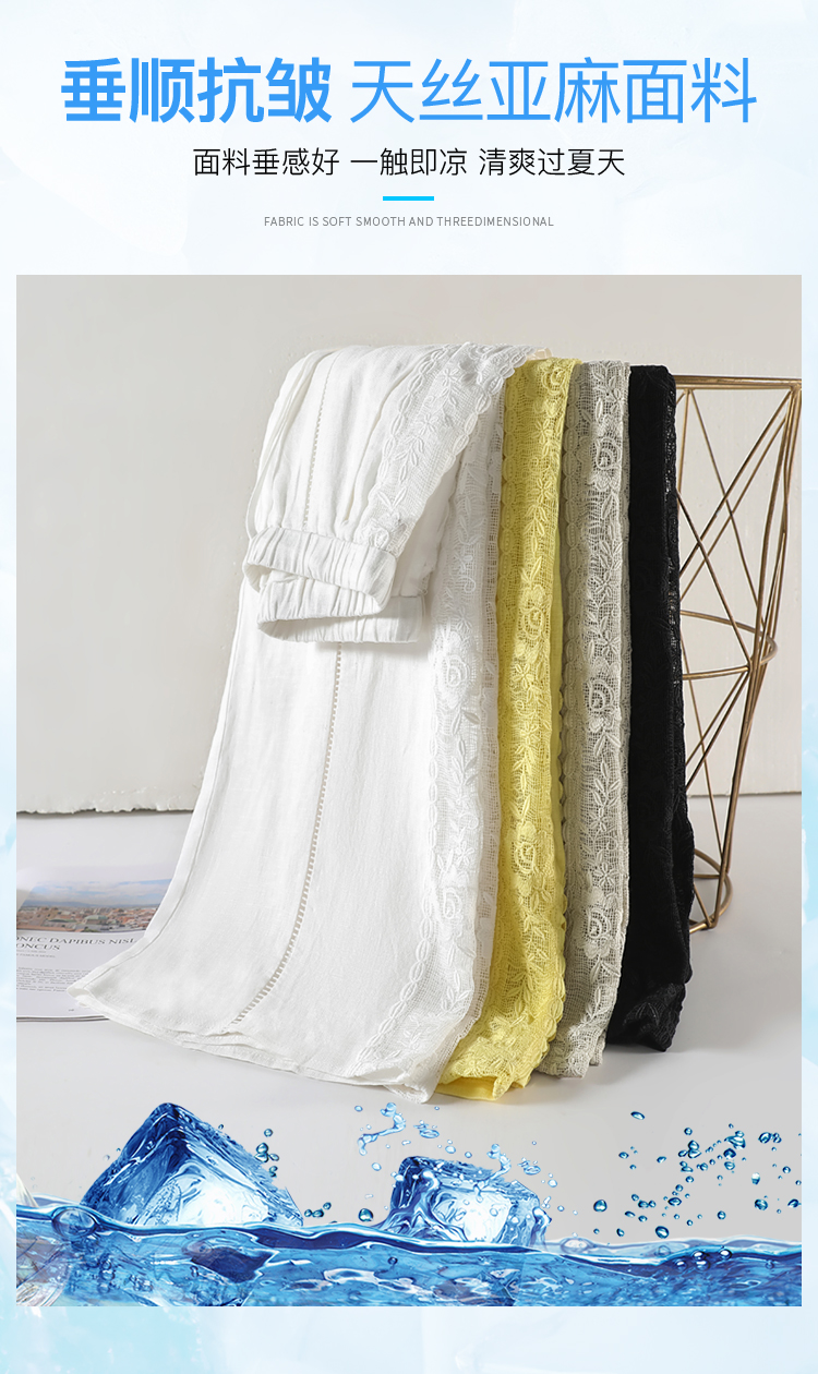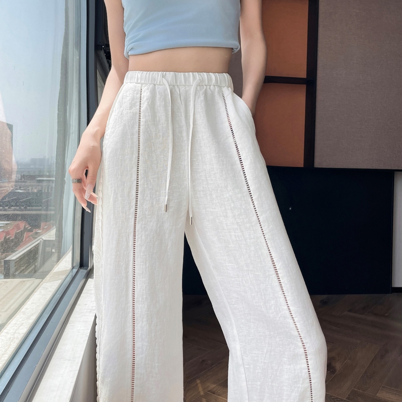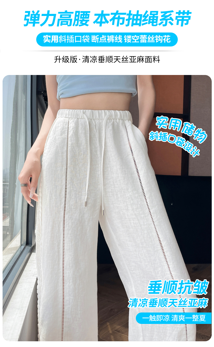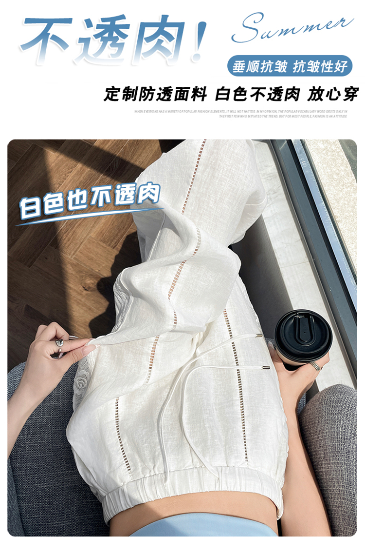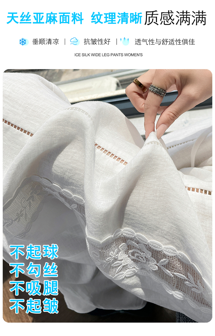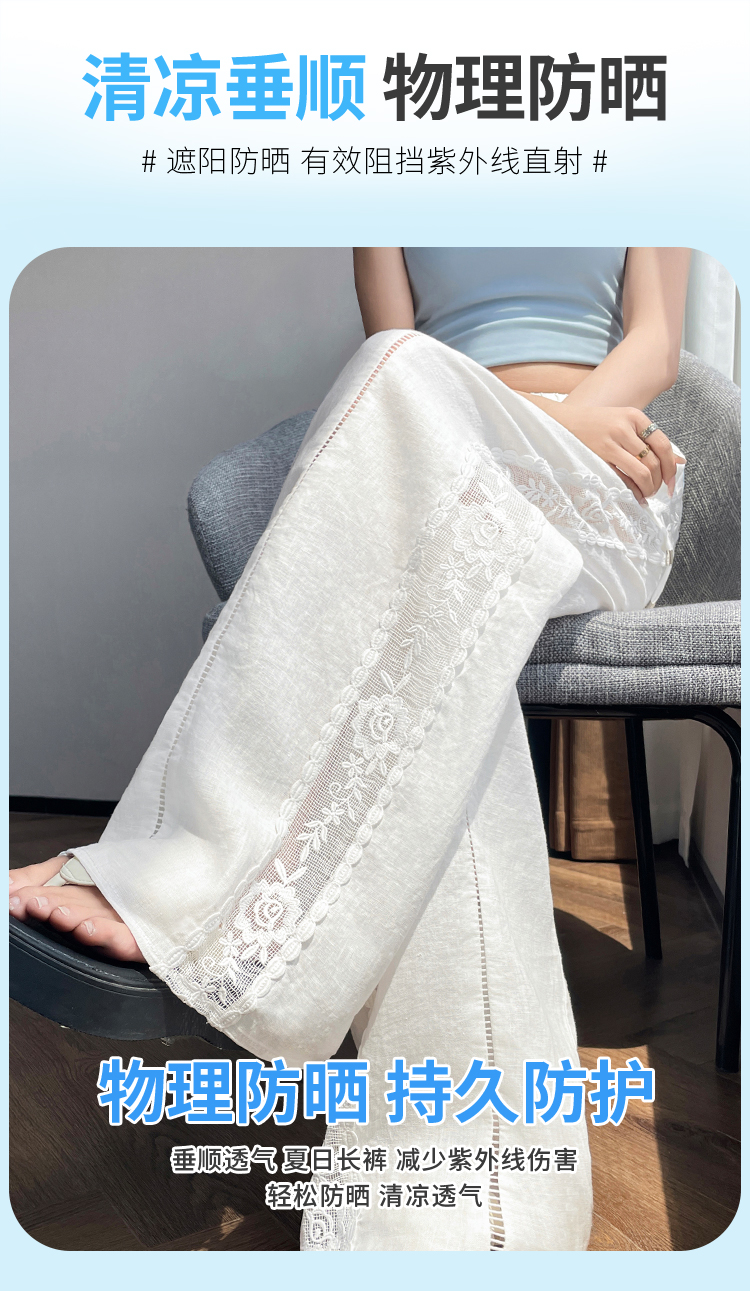 실사 2026 여름 새로운 주간 실크 아마 와이드 레그 팬츠 레이스 자외선 차단 캐주얼 얇은 스타일 바닥 청소 바지 여성