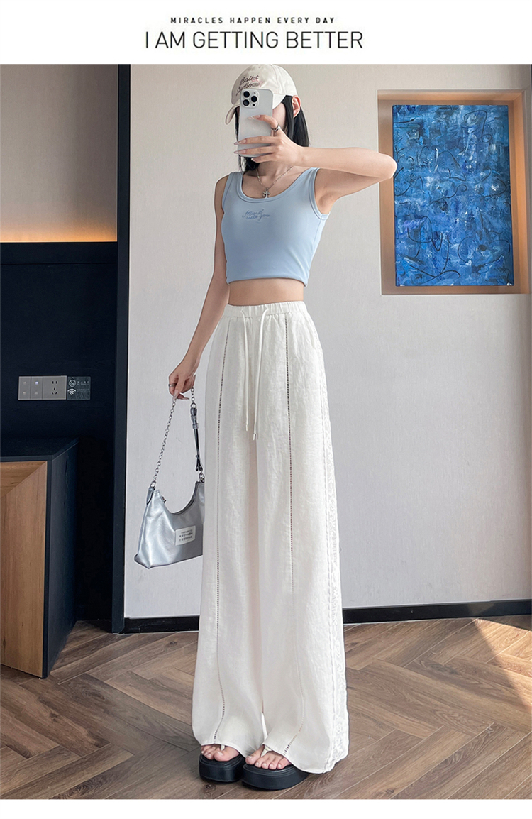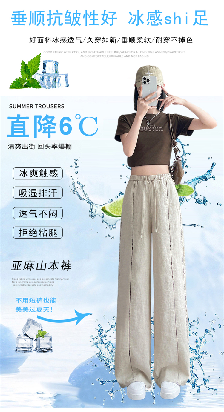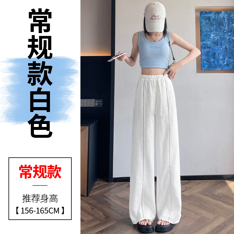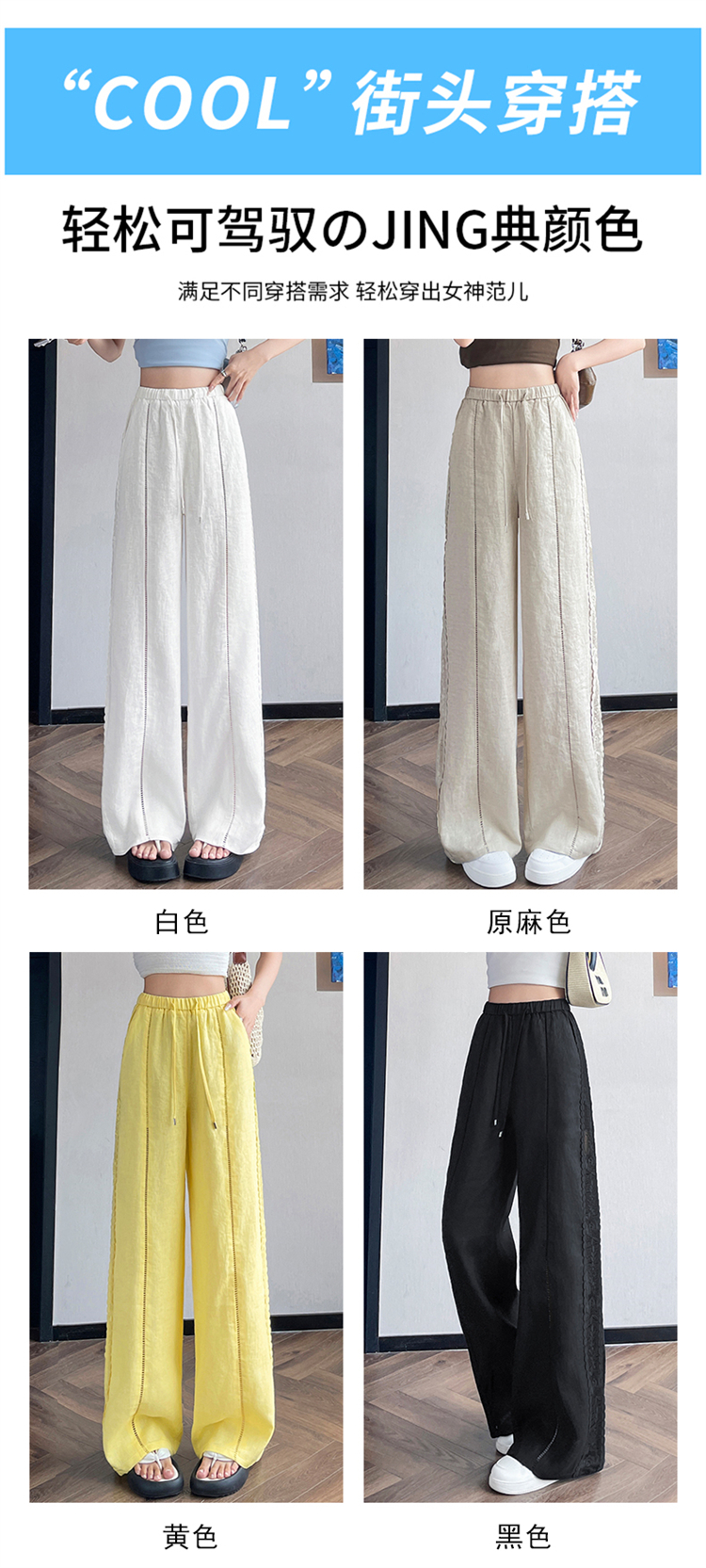 실사 2026 여름 새로운 주간 실크 아마 바지 와이드 레그 팬츠 얇은 스타일 하이웨이스트 얼음 실크 좁은 에디션 바닥 청소 바지 여성