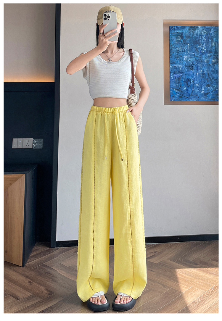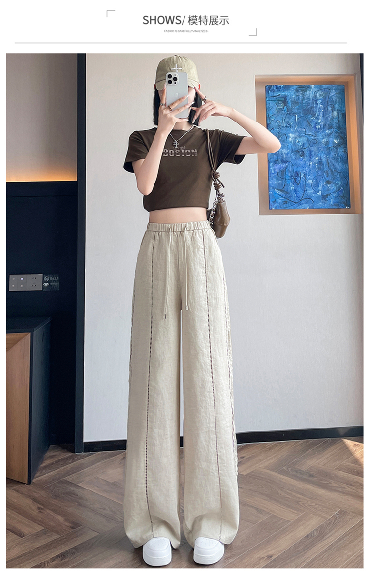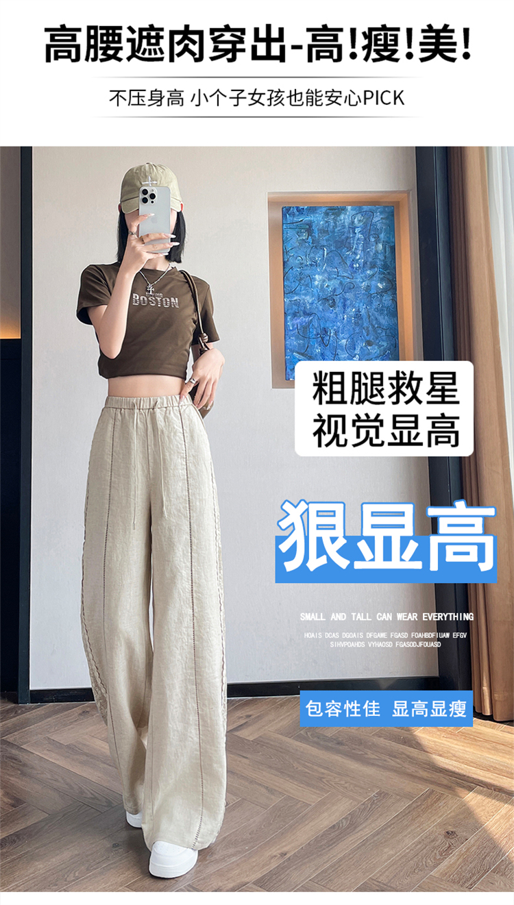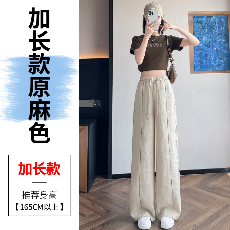 실사 2026 여름 새로운 주간 실크 아마 와이드 레그 팬츠 하이웨이스트 면 린넨 얇은 스타일 자외선 차단 스트레이트 바닥 청소 바지 여성