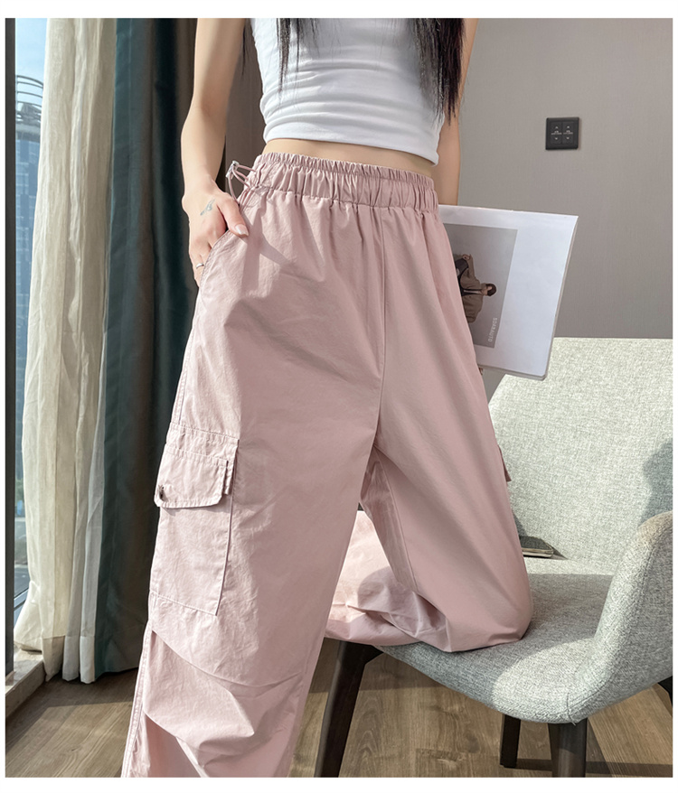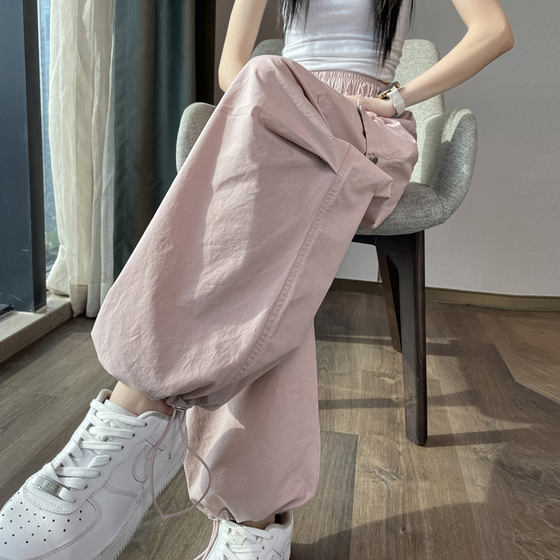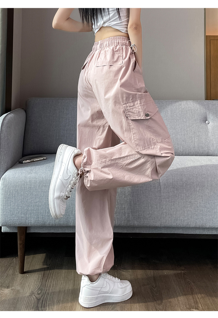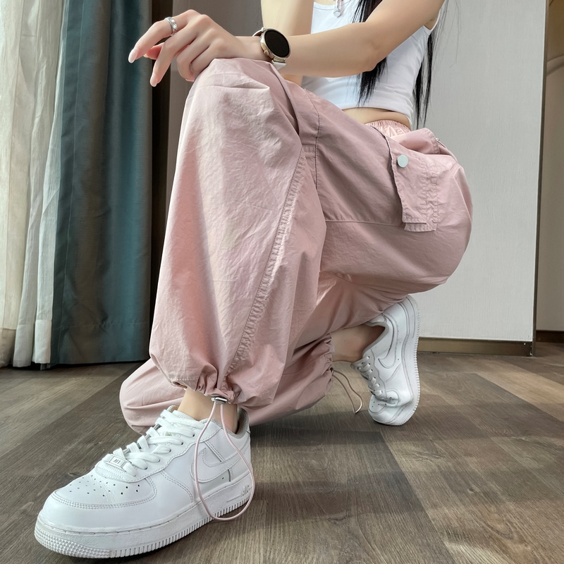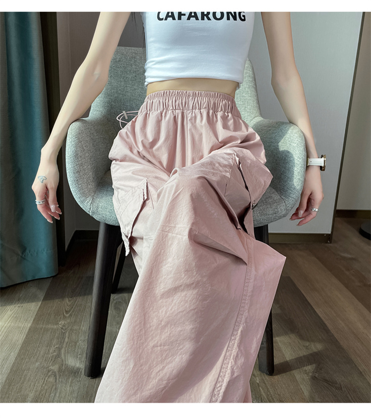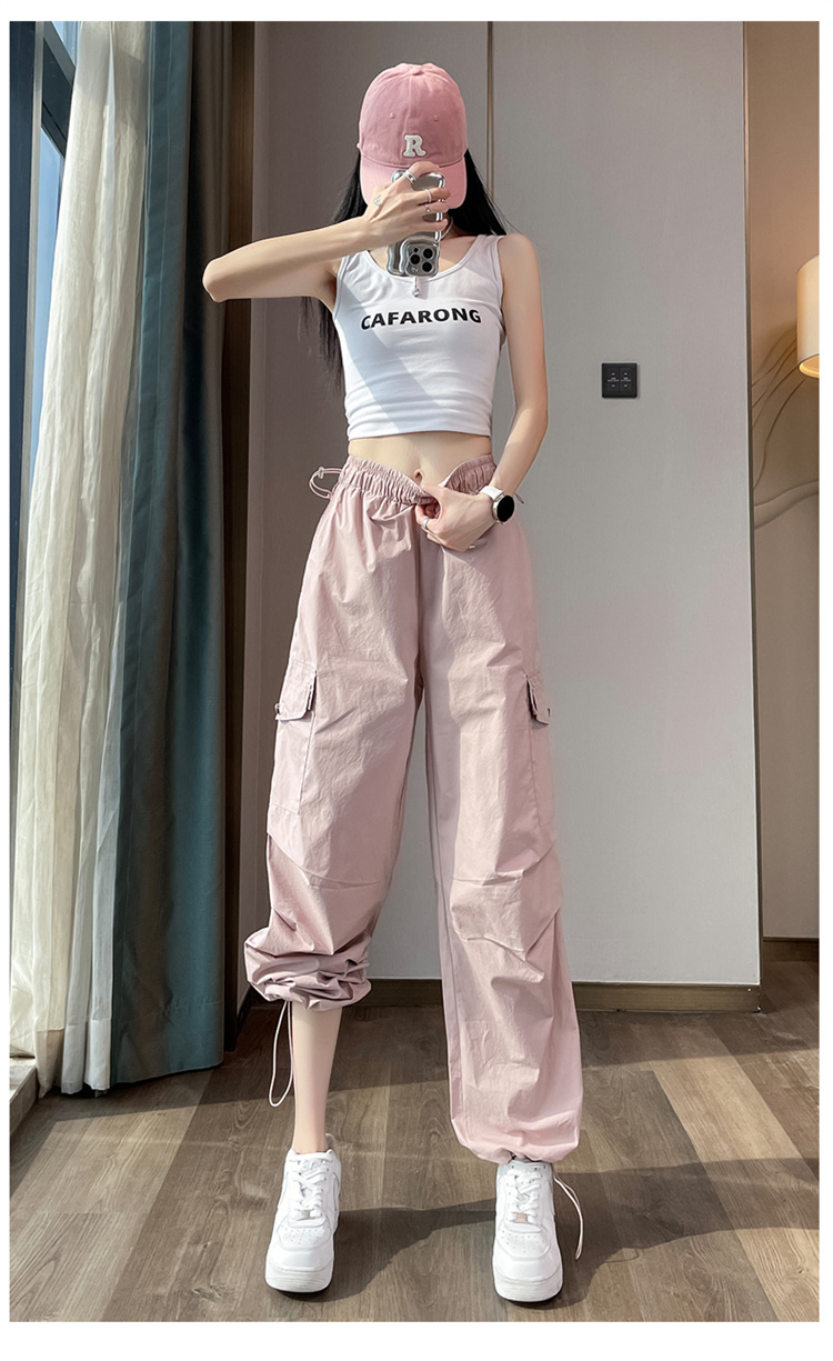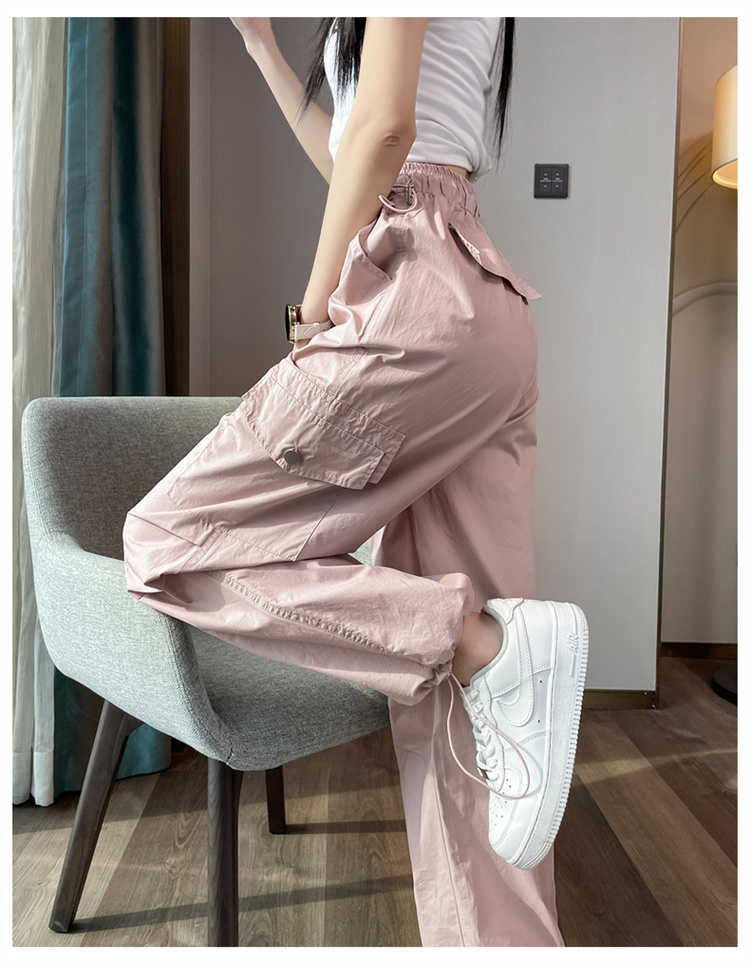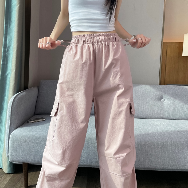 실사 2026 여름 새로운 속도 건조한 바지 워크웨어 팬츠 여성 얇은 스타일 하이웨이스트 조거 넓은 다리 둘 착용 할란 운동 바지