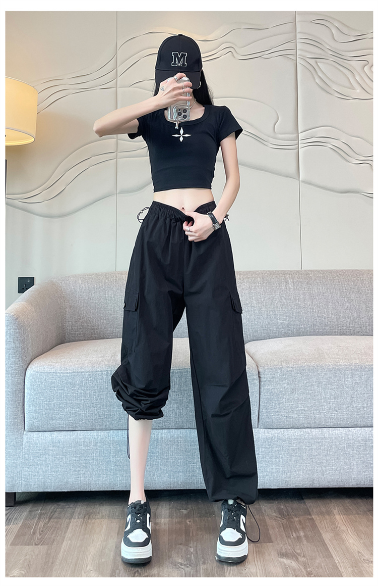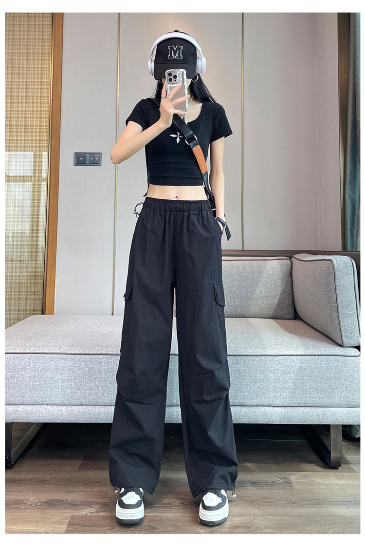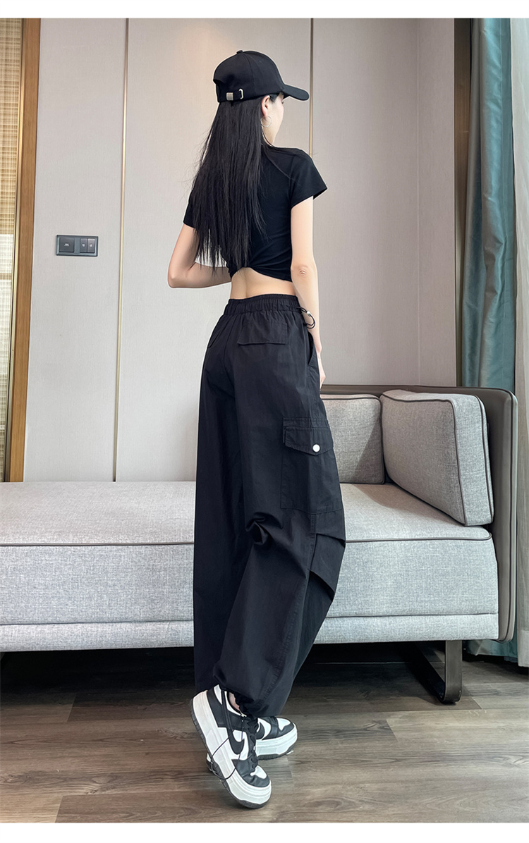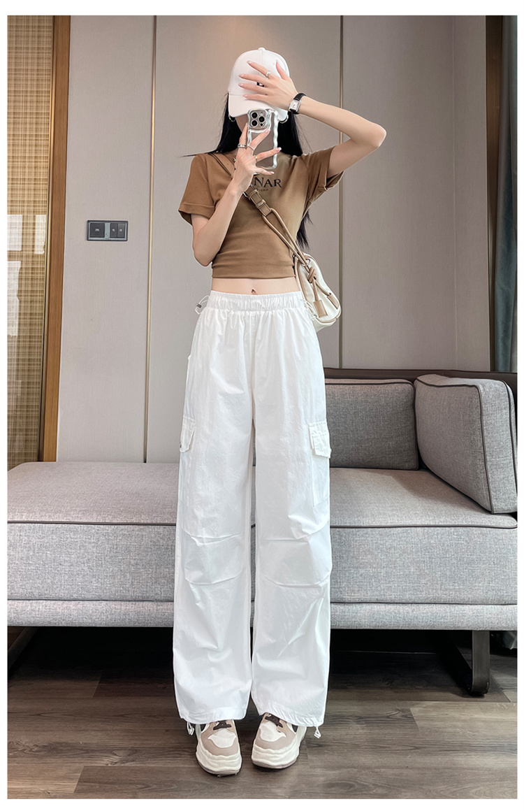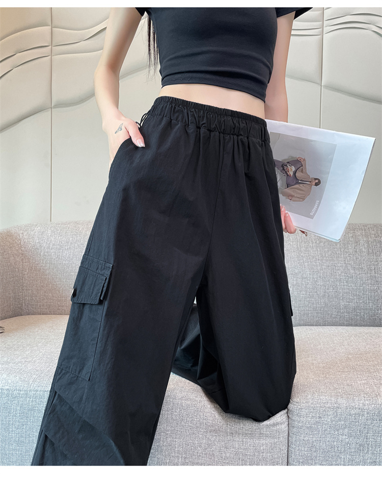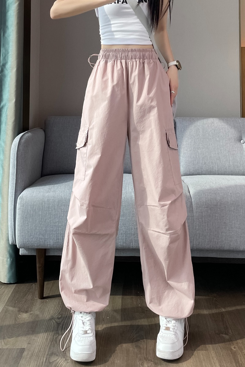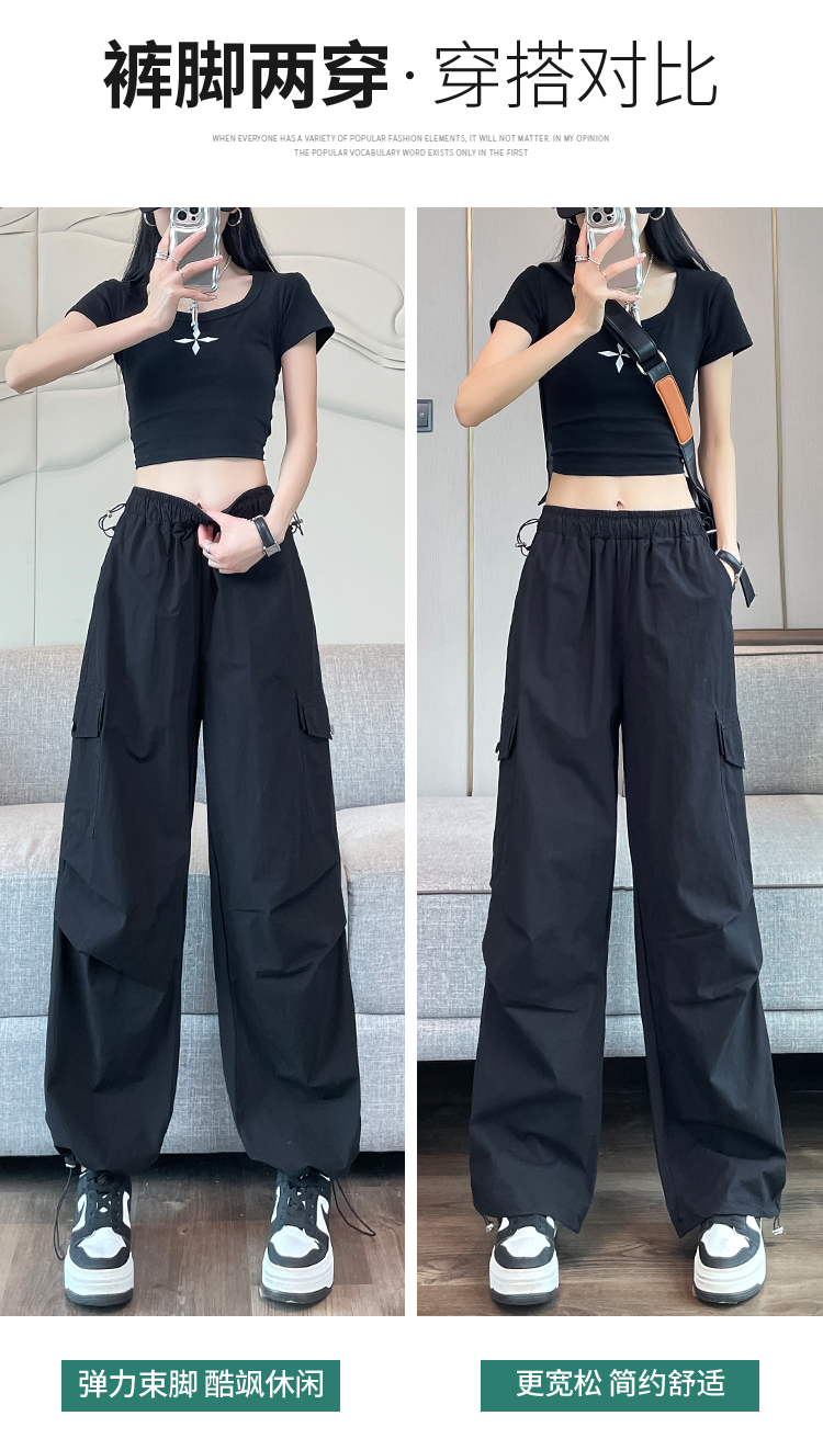 실사 2026 여름 새로운 속도 건조한 바지 워크웨어 팬츠 여성 얇은 스타일 하이웨이스트 조거 넓은 다리 둘 착용 할란 운동 바지