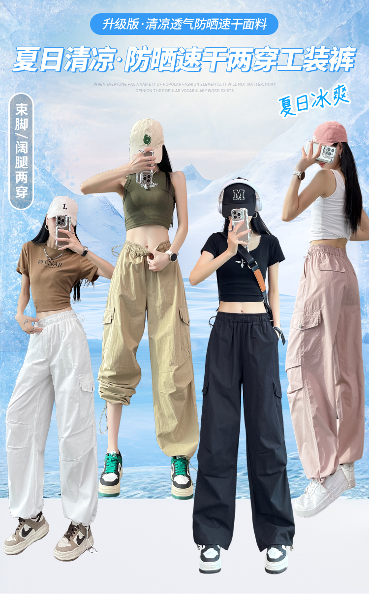 실사 2026 여름 새로운 얇은 스타일 속도 건조한 둘 착용 워크웨어 팬츠 하이웨이스트 자외선 차단 얼음 실크 캐주얼 바지 운동 바지 여성