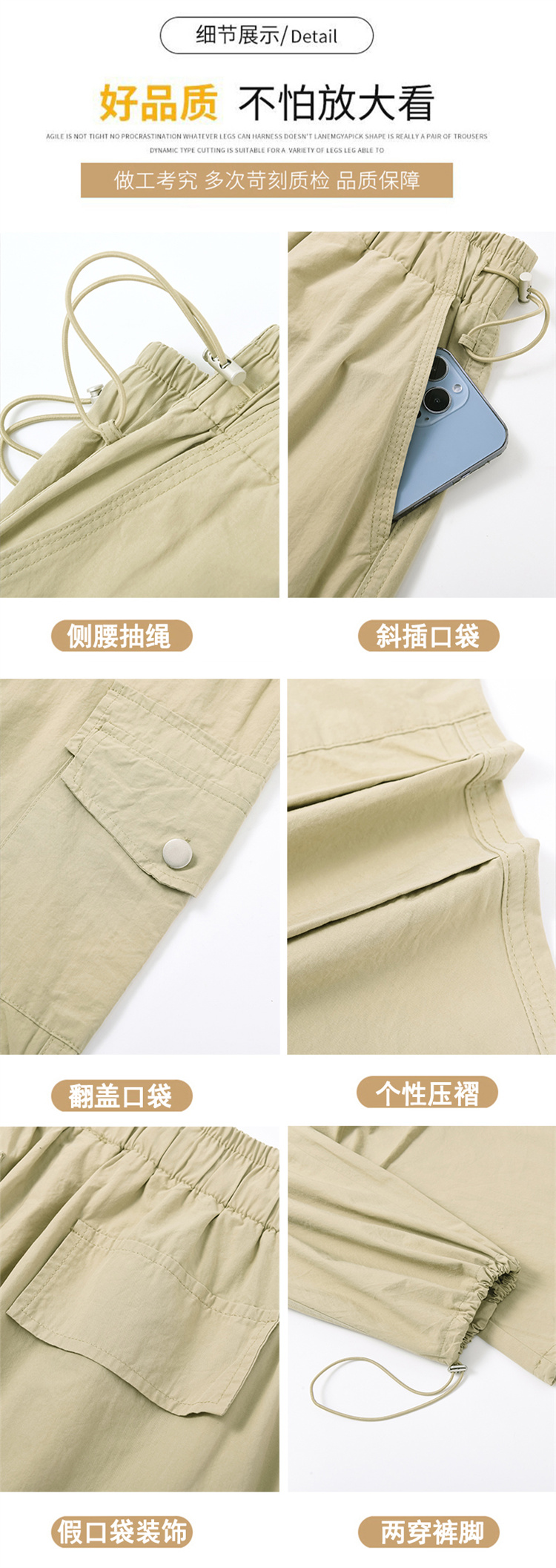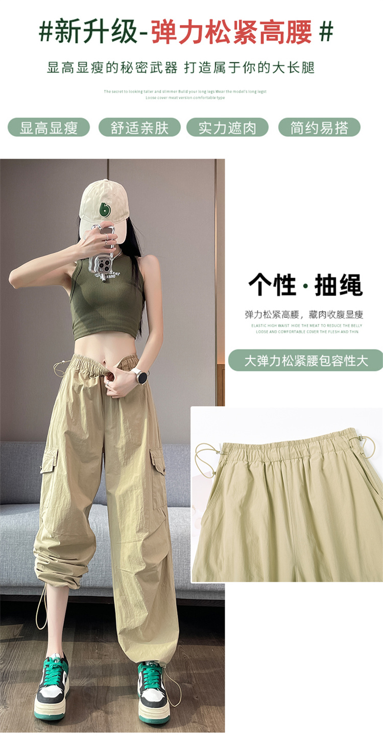 실사 2026 여름 새로운 얇은 스타일 속도 건조한 둘 착용 워크웨어 팬츠 하이웨이스트 자외선 차단 캐주얼 모통이 칼 바지 운동 바지 여성