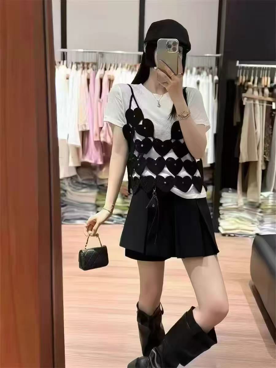2026 봄 여름 새로운 레트로 품격 고급 센스 홀로우 아웃 자수 쇼트 스타일 민소매 니트 조끼