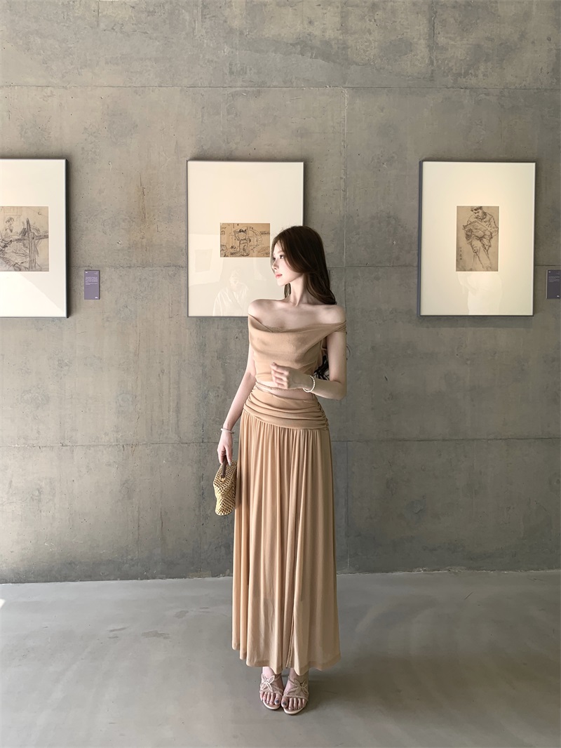 실사 정가 춘 사쿠라 시간 점프 슈트 롱 스커트 여성 여름 슬림해 보이는 흔들다 칼라 우아함 품격