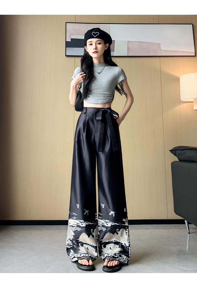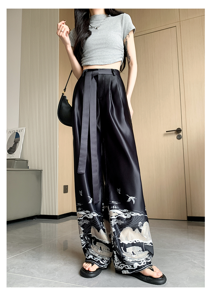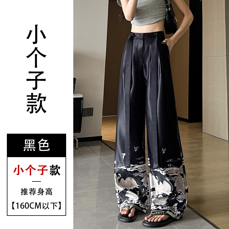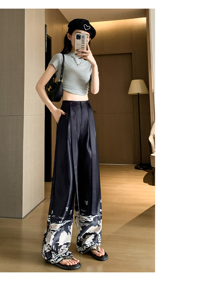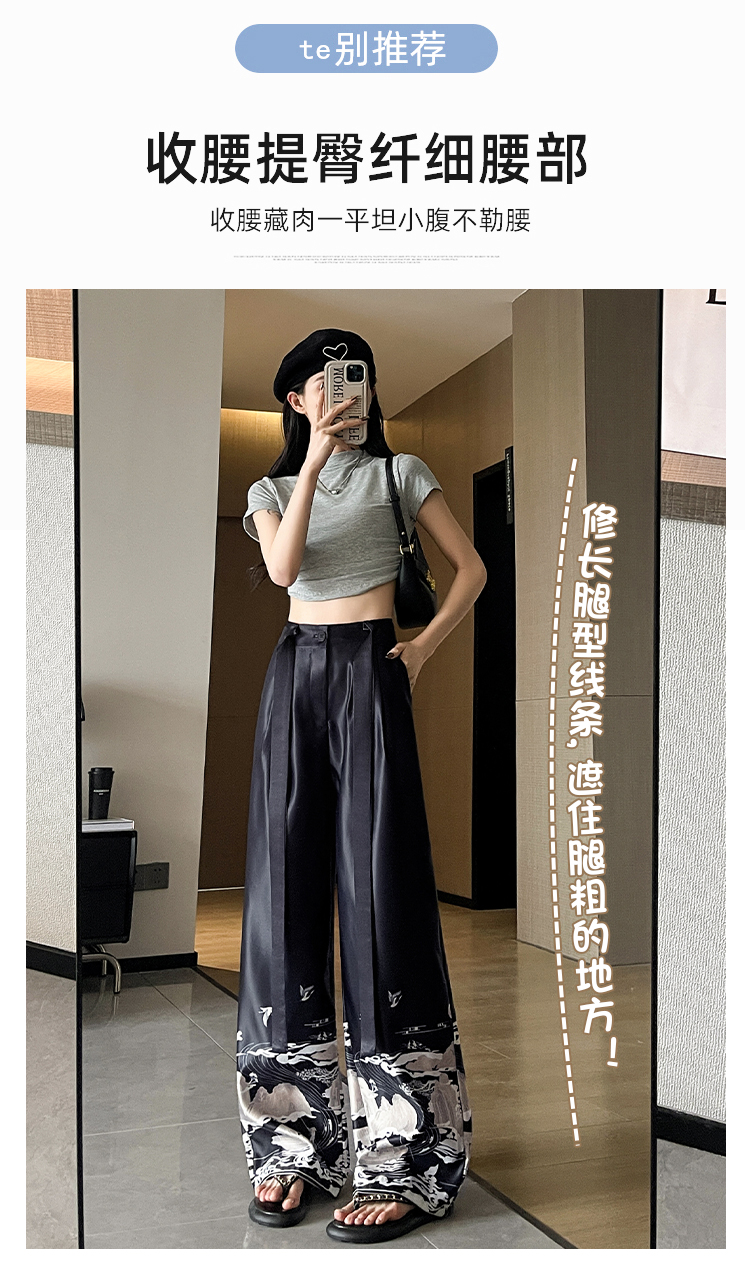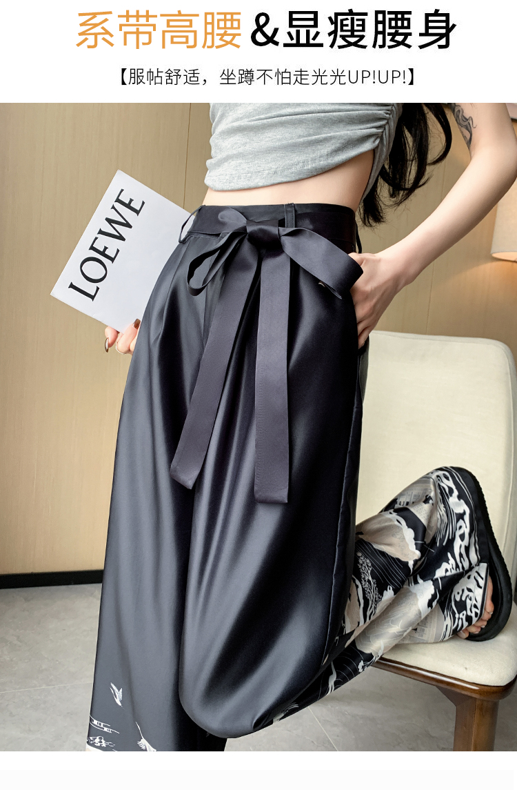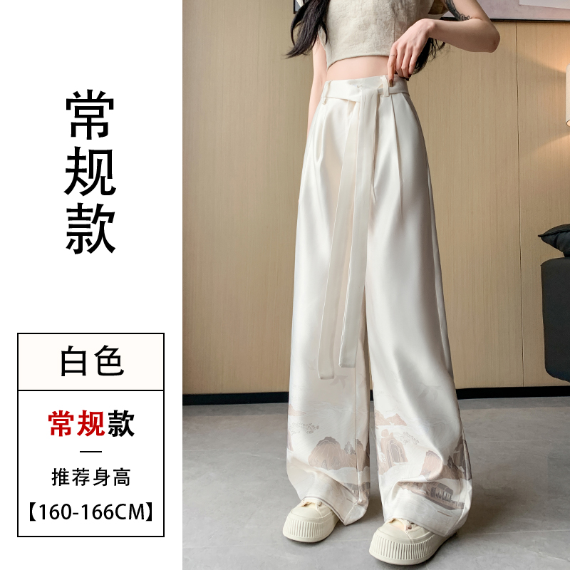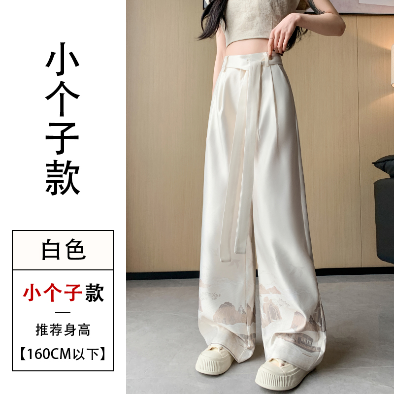실사 2026 여름 새로운 아세트산 얼음 실크 프린트 와이드 레그 팬츠 새틴 스트레이트 새로운 중식 캐주얼 바지 아이들