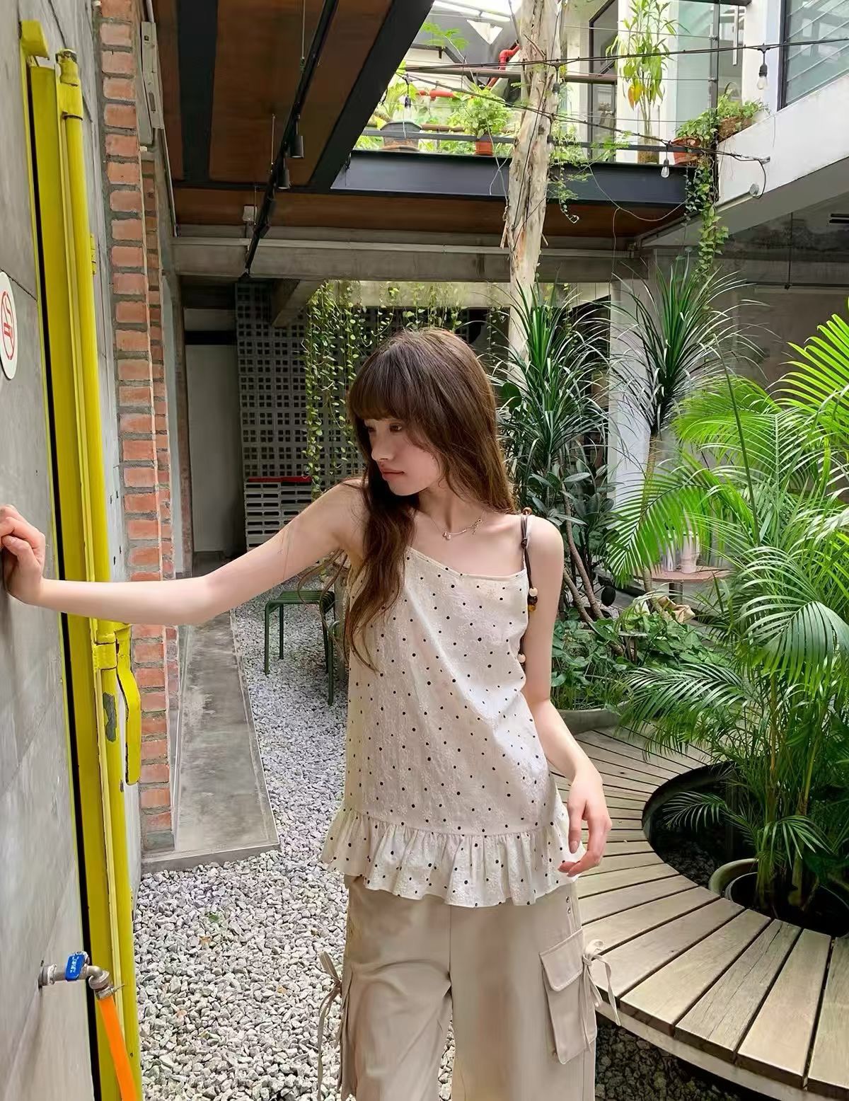안녕하세요. 대포 사실 두 조각 스택 착용 작은 슬링 체크무늬 셔츠 세트 여성 여름 도파민 투피스 세트 맨위