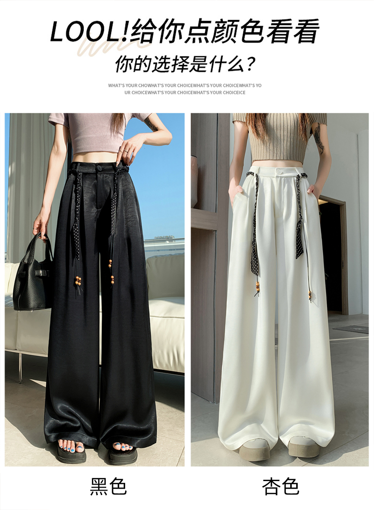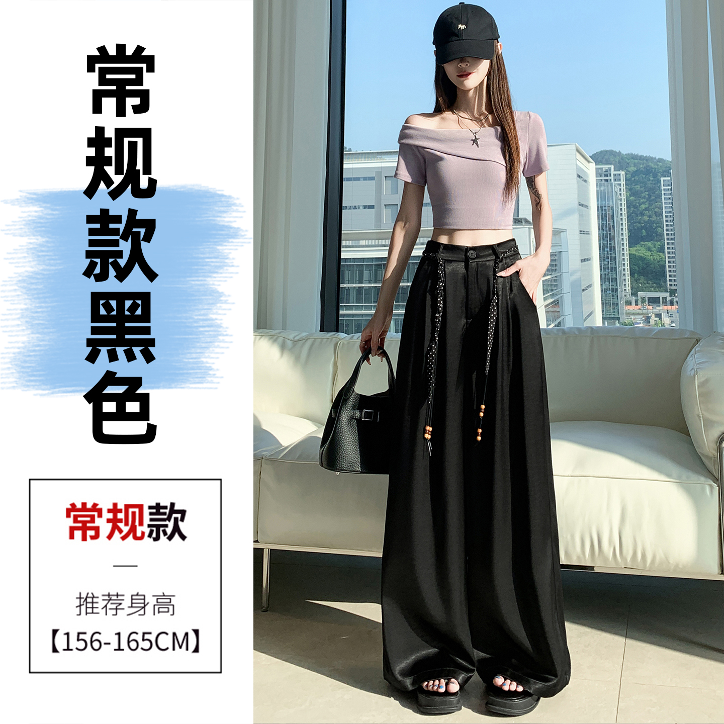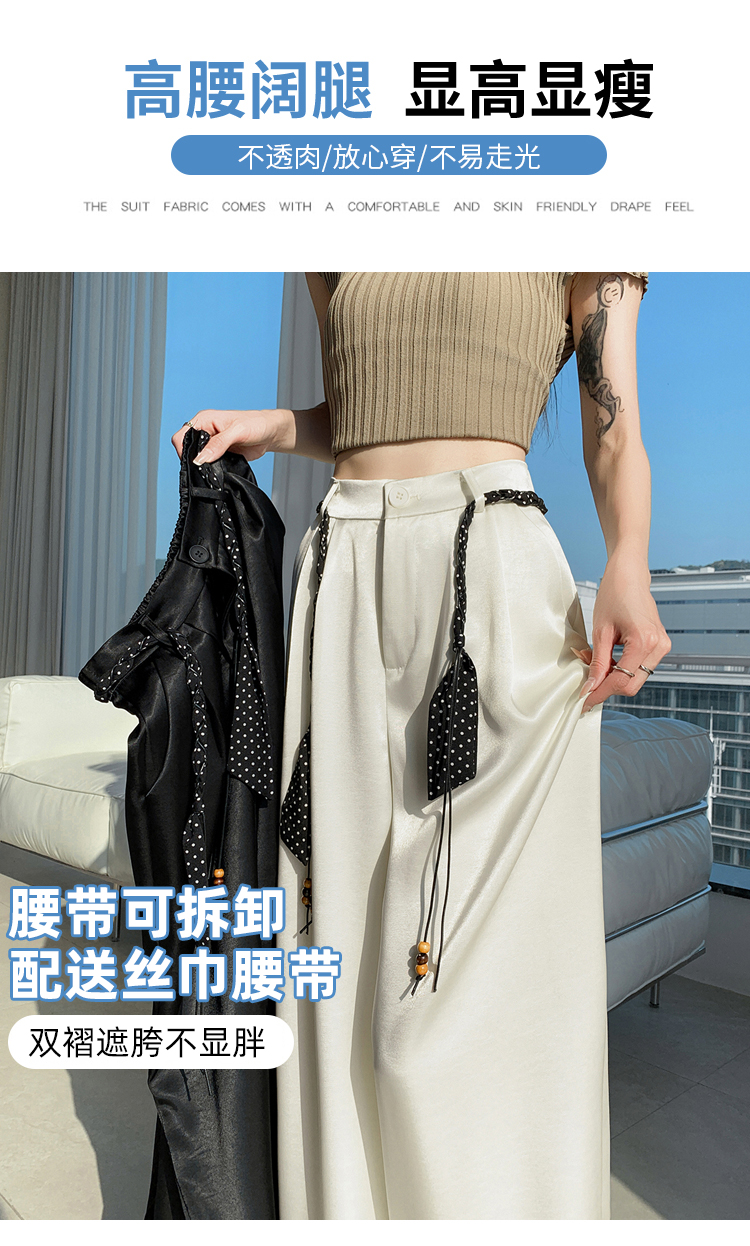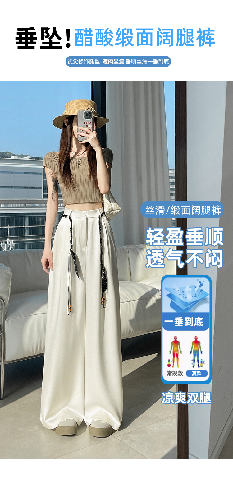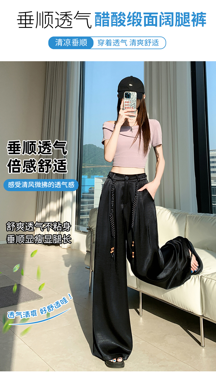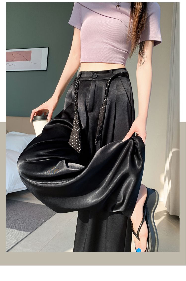 실사 아세트산 새틴 얼음 실크 정장 와이드 레깅스 바지 여름 하이웨이스트 루즈핏 도루 센스 캐주얼 스트레이트 바닥 청소 바지