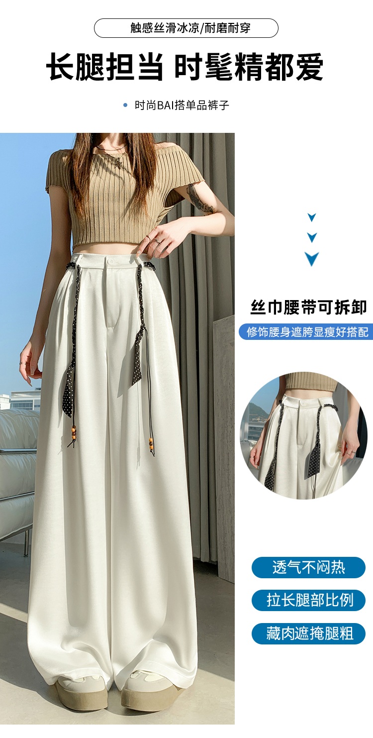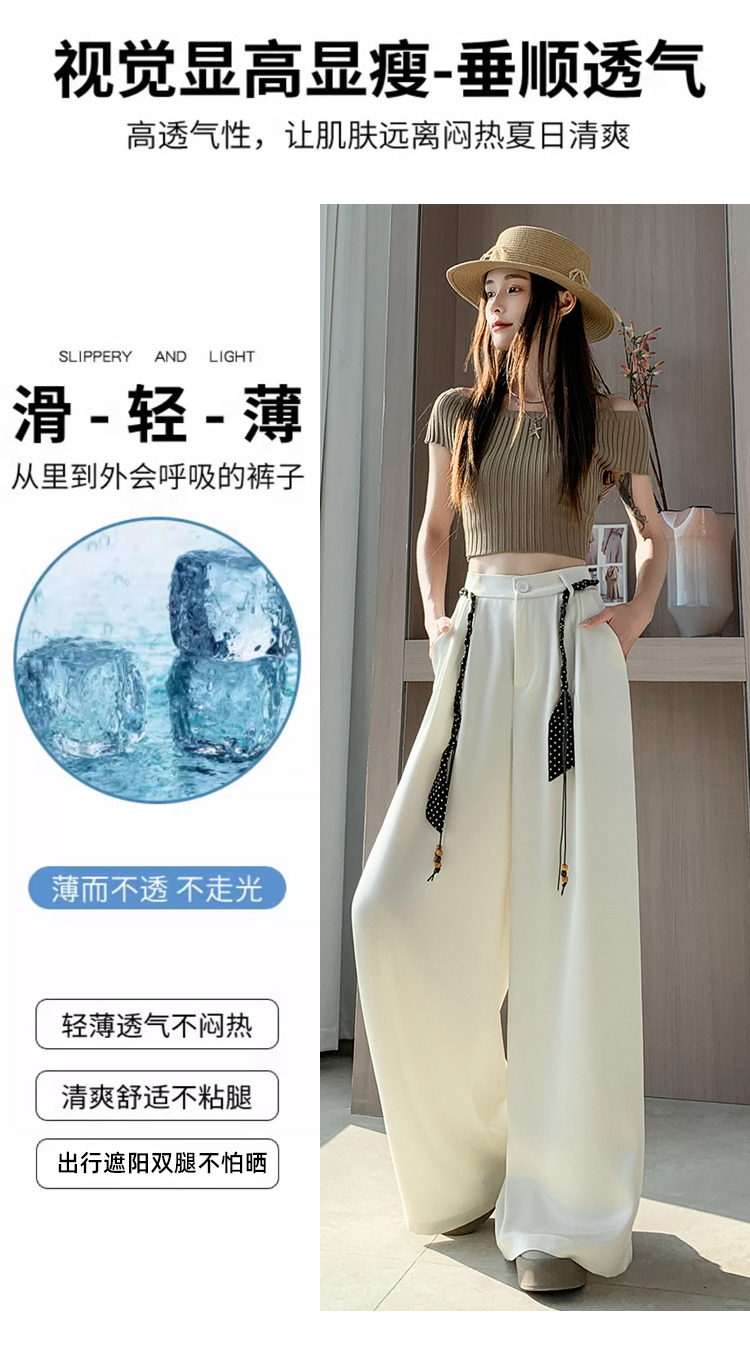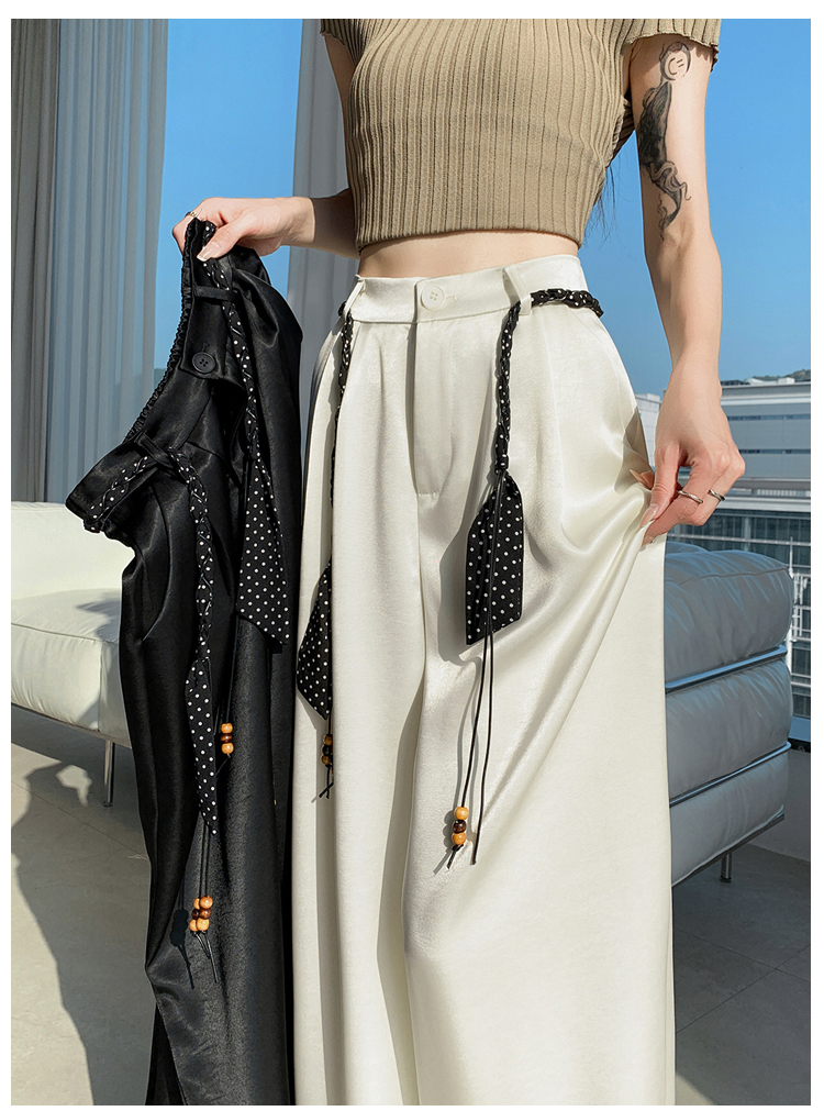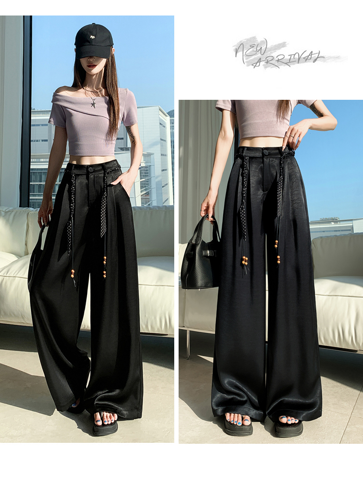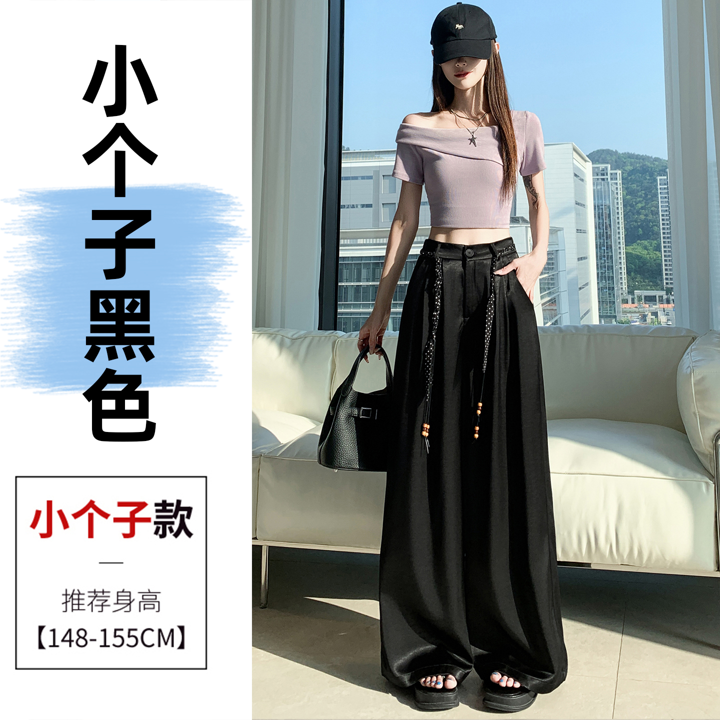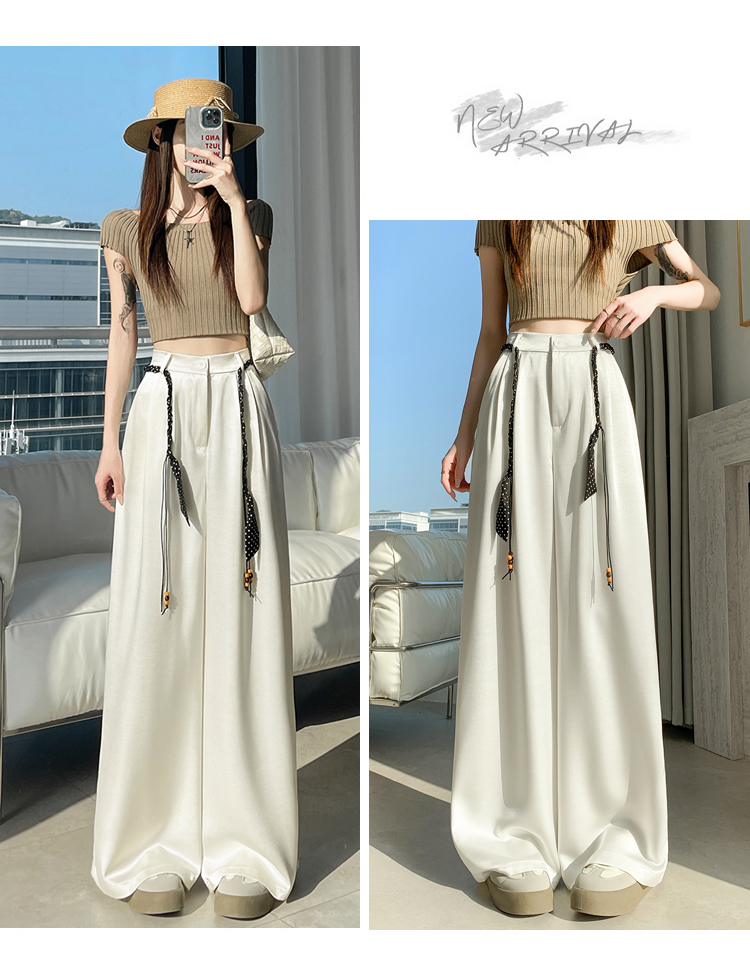 실사 아세트산 새틴 얼음 실크 정장 와이드 레깅스 바지 여름 하이웨이스트 루즈핏 도루 센스 캐주얼 스트레이트 바닥 청소 바지
