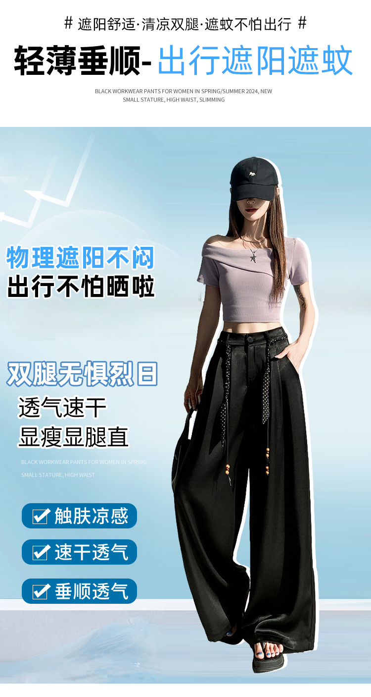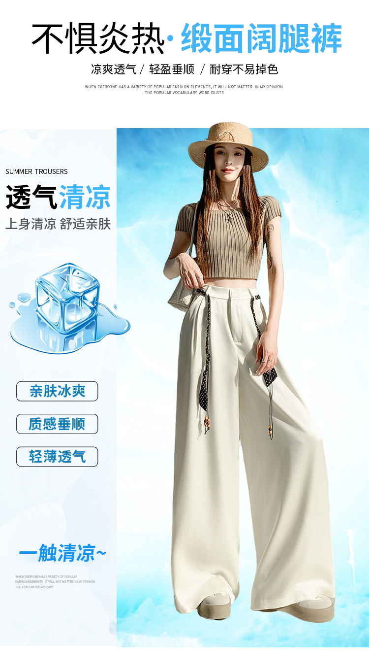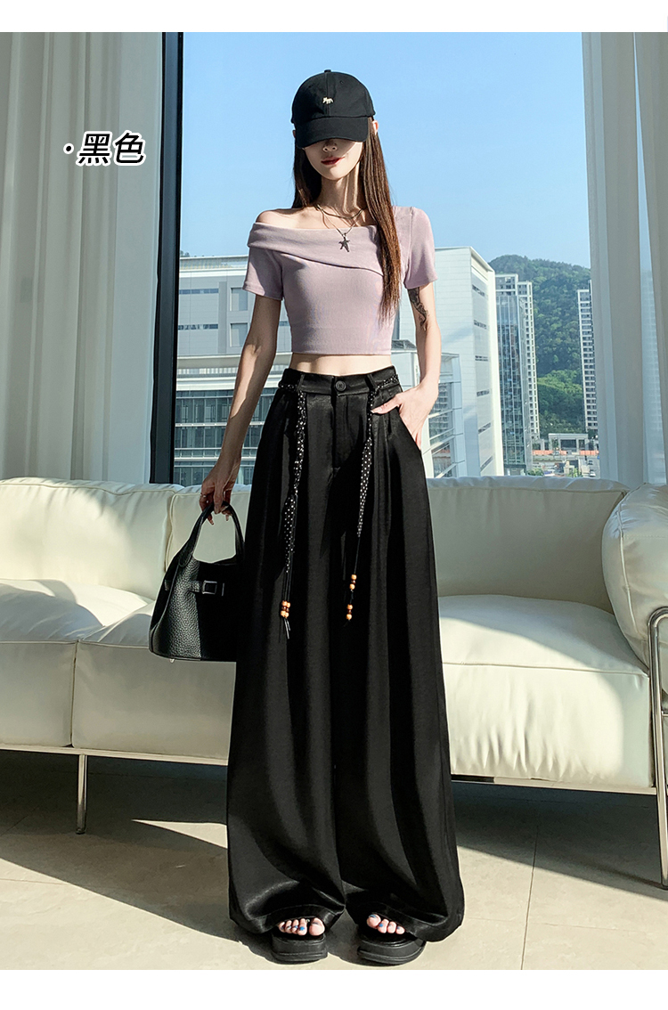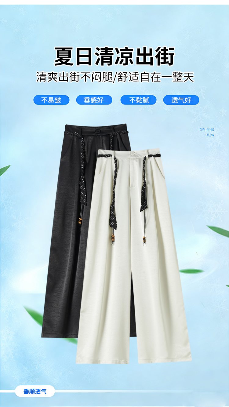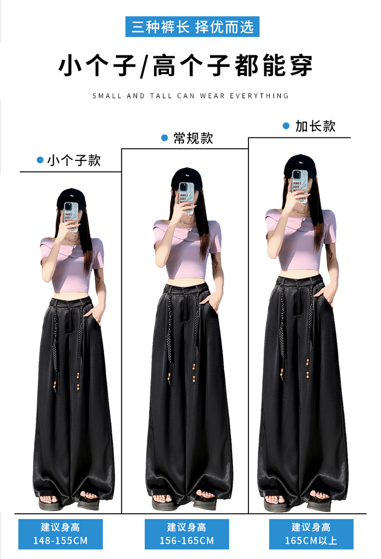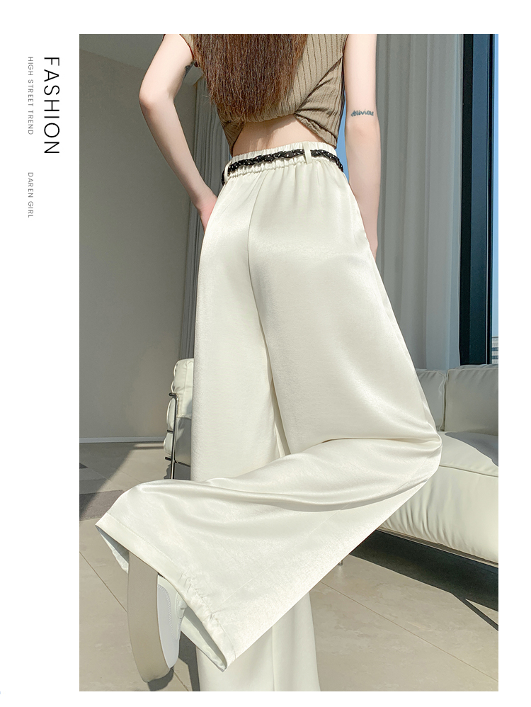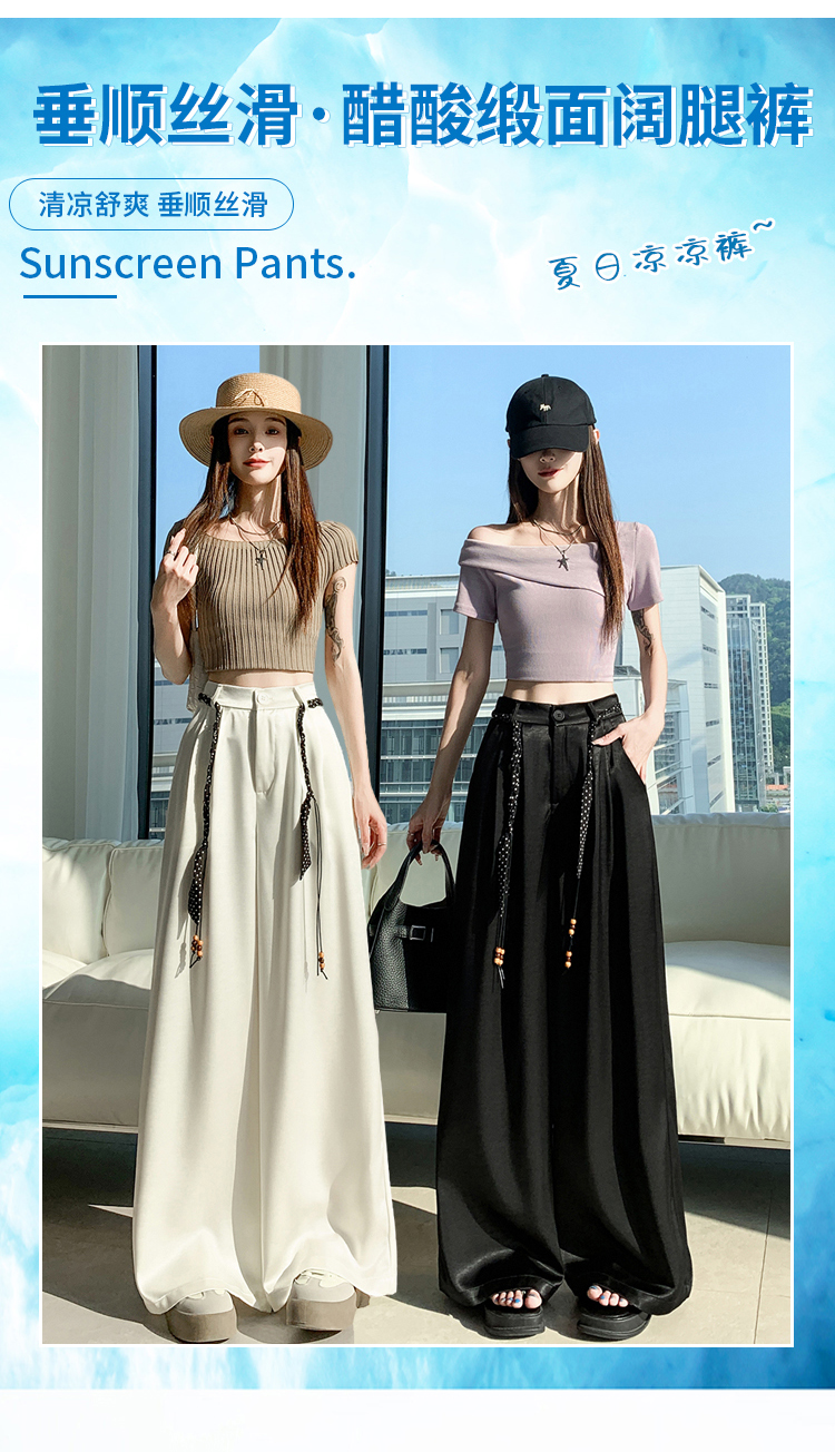 실사 아세트산 새틴 얼음 실크 정장 와이드 레깅스 바지 여름 하이웨이스트 루즈핏 도루 센스 캐주얼 스트레이트 바닥 청소 바지