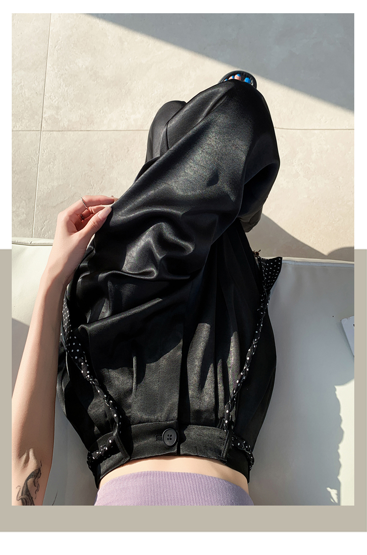 실사 2809# 마이크로 지방 mm 새틴 광택 비싼 가스 V넥 프릴 반팔 셔츠 Feifei 소매 슬림해 보이는 맨위